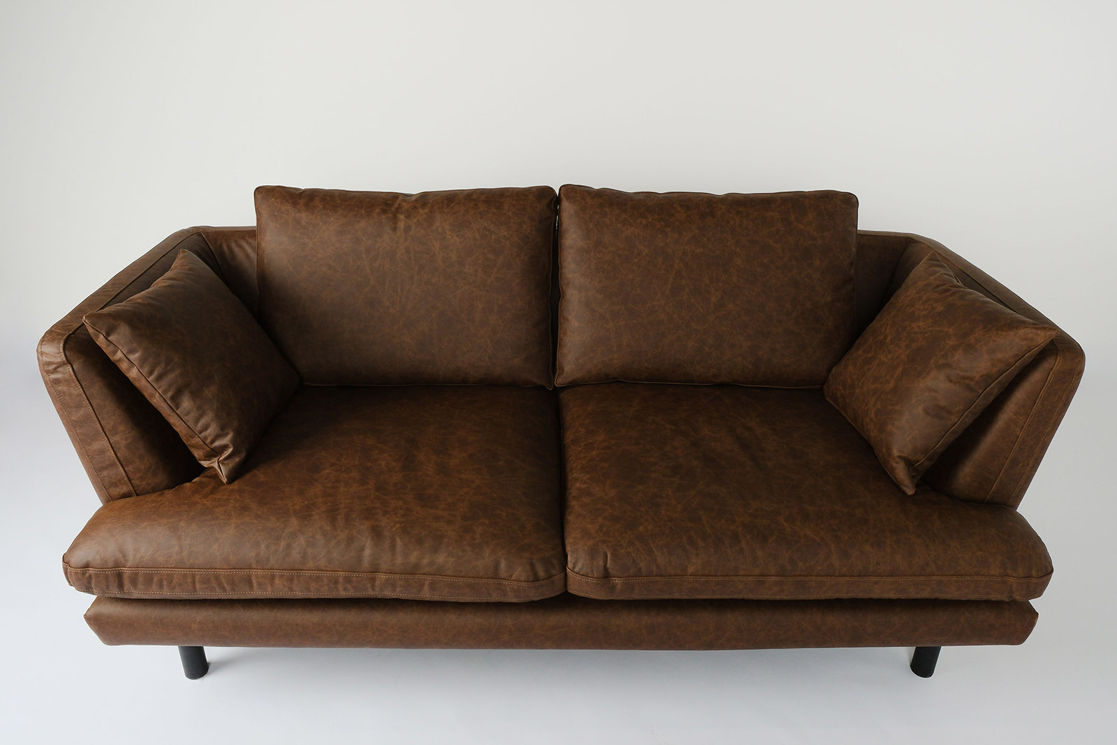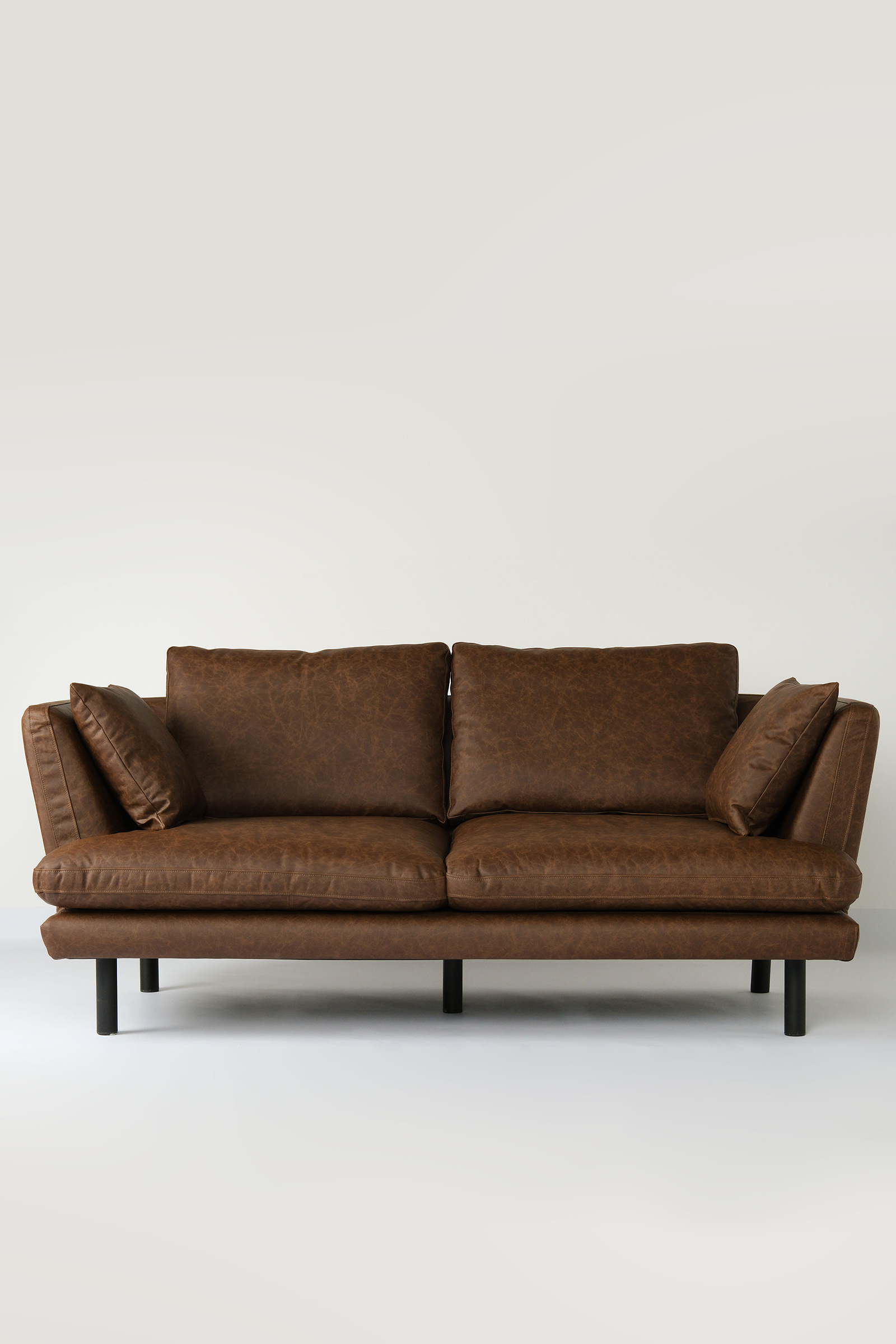 Спинка плавно перетекает в подлокотники, создавая цельный силуэт, где крупные и мелкие подушки гармонично сосуществуют. Такое сочетание придаёт дивану визуальную лёгкость и ощущение защищённого комфорта. Великолепная посадка в паре с гибкой конструкцией позволяет найти идеальную позу — будь то чтение, вечер с книгой или уютный разговор за чашкой чая.