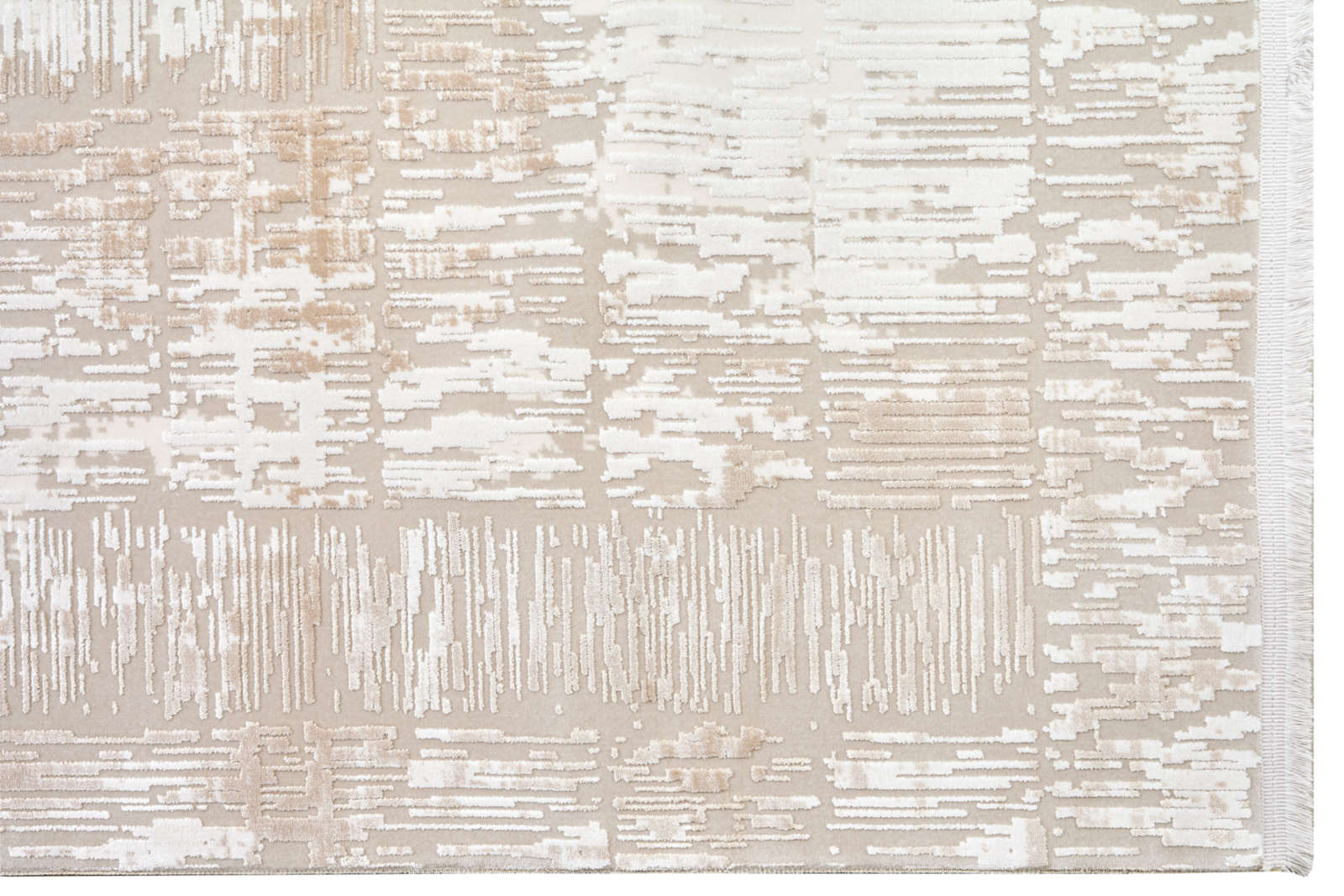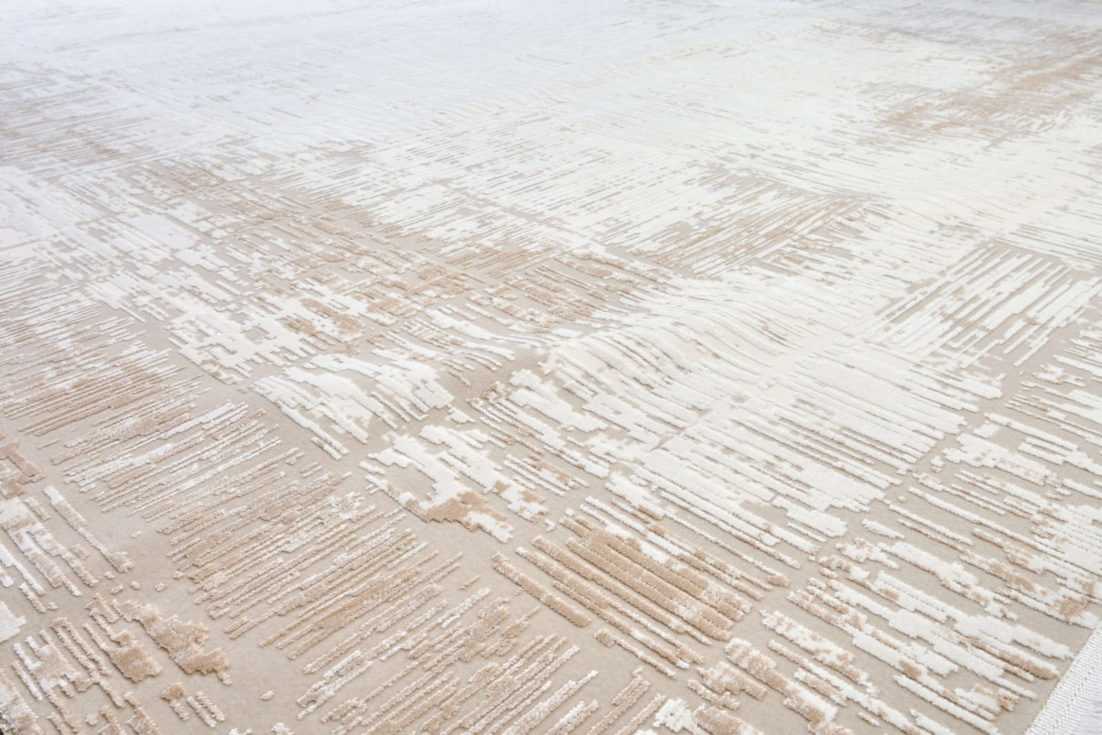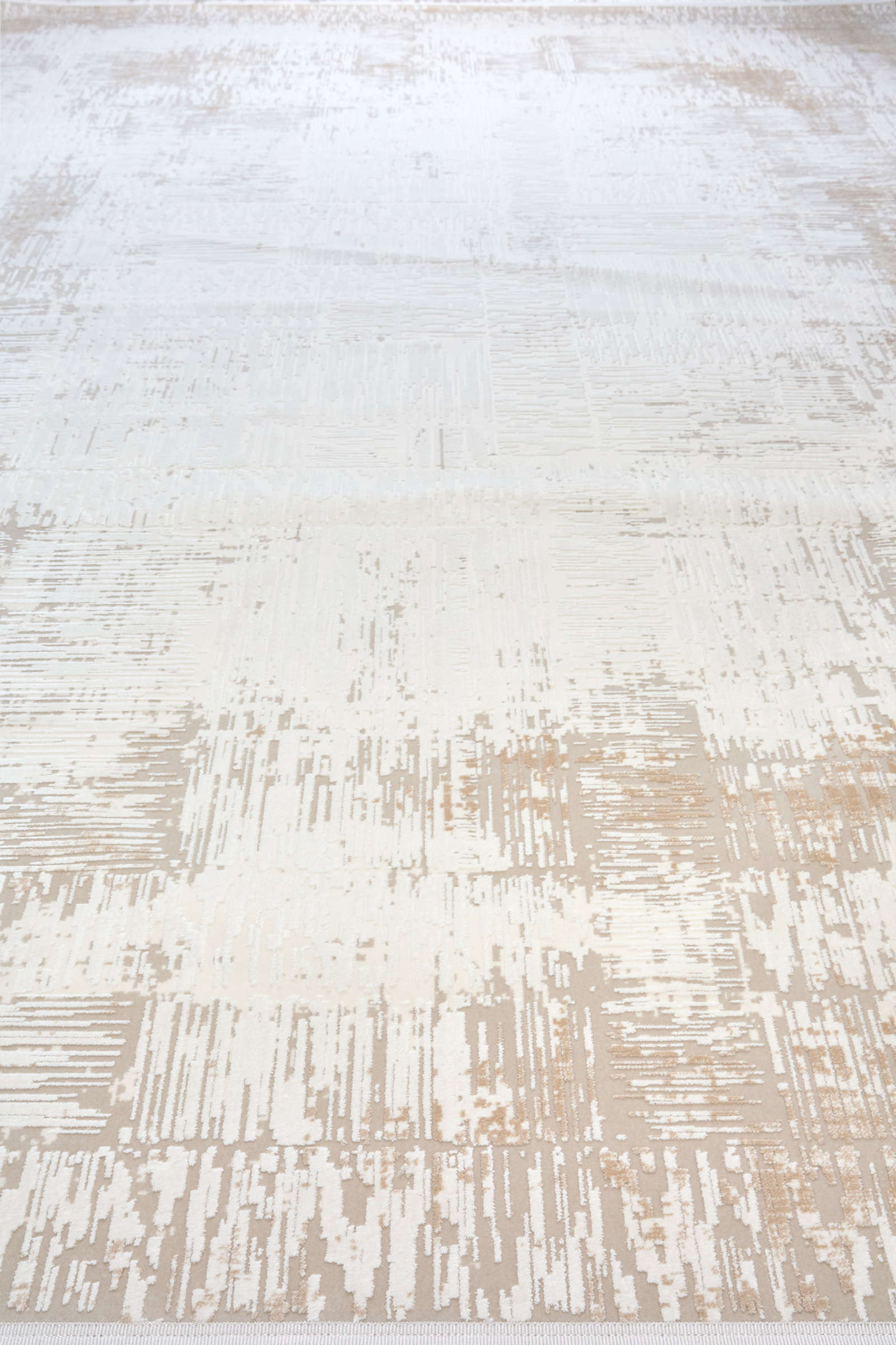Этот турецкий ковёр выполнен в сдержанной абстрактной эстетике. Светлая центральная часть плавно переходит к более текстурному, слегка затемнённому краю, создавая эффект мягкой рамки. Такой приём визуально структурирует пространство и помогает собрать мебельную группу.