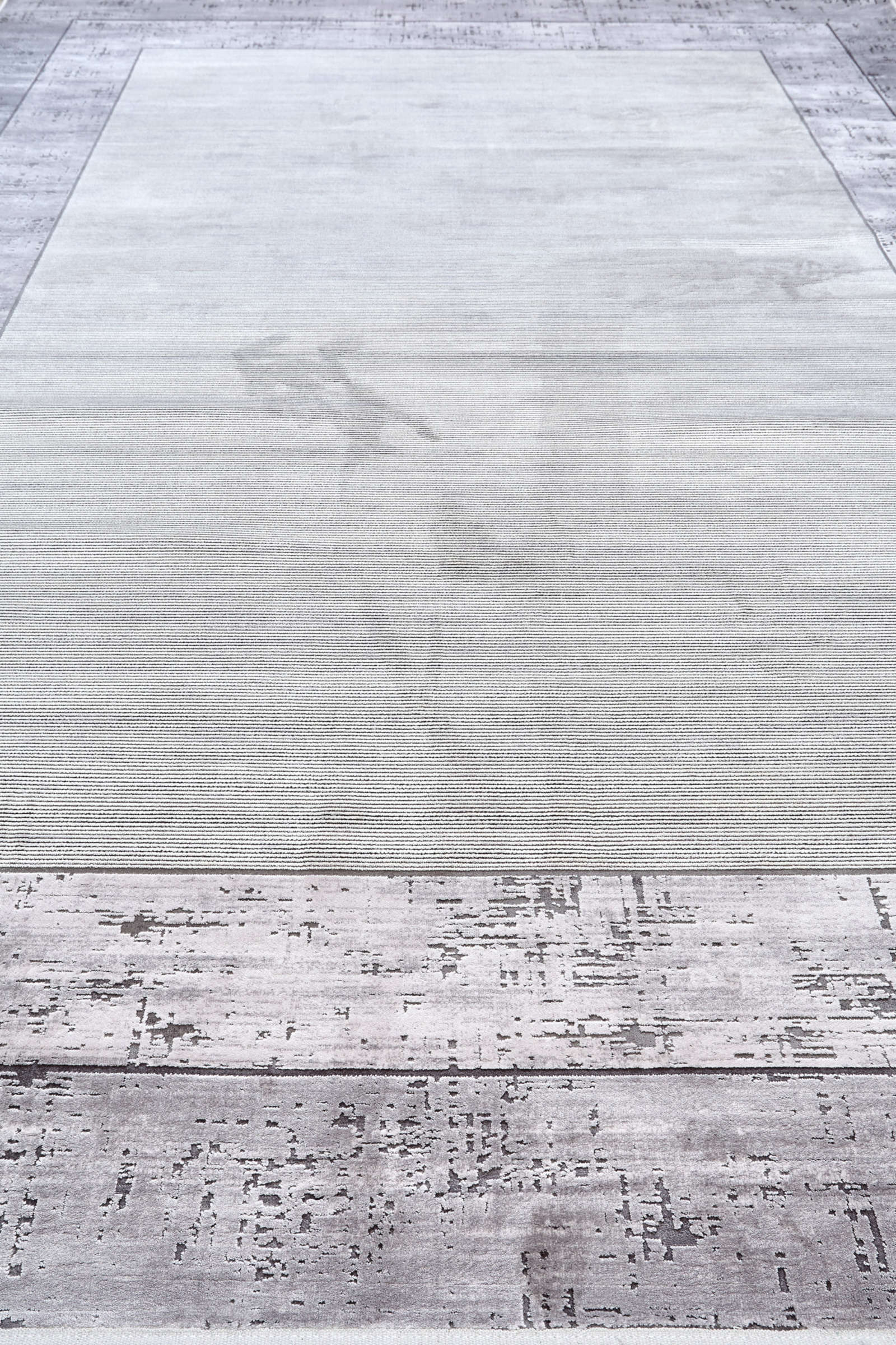 Этот ковёр построен на тонком диалоге фактур и оттенков. Светлый центр работает как спокойный фон для лёгкого воздушного интерьера. Многослойная рамка с эффектом деликатной патины обрамляет композицию, добавляя глубину и ощущение выверенной структуры. Такой приём делает ковёр не акцентом, а устойчивой основой пространства. Он органично вписывается в современные, неоклассические и минималистичные интерьеры, помогает собрать мебельную группу и создать ощущение порядка, такта и тихой элегантности.