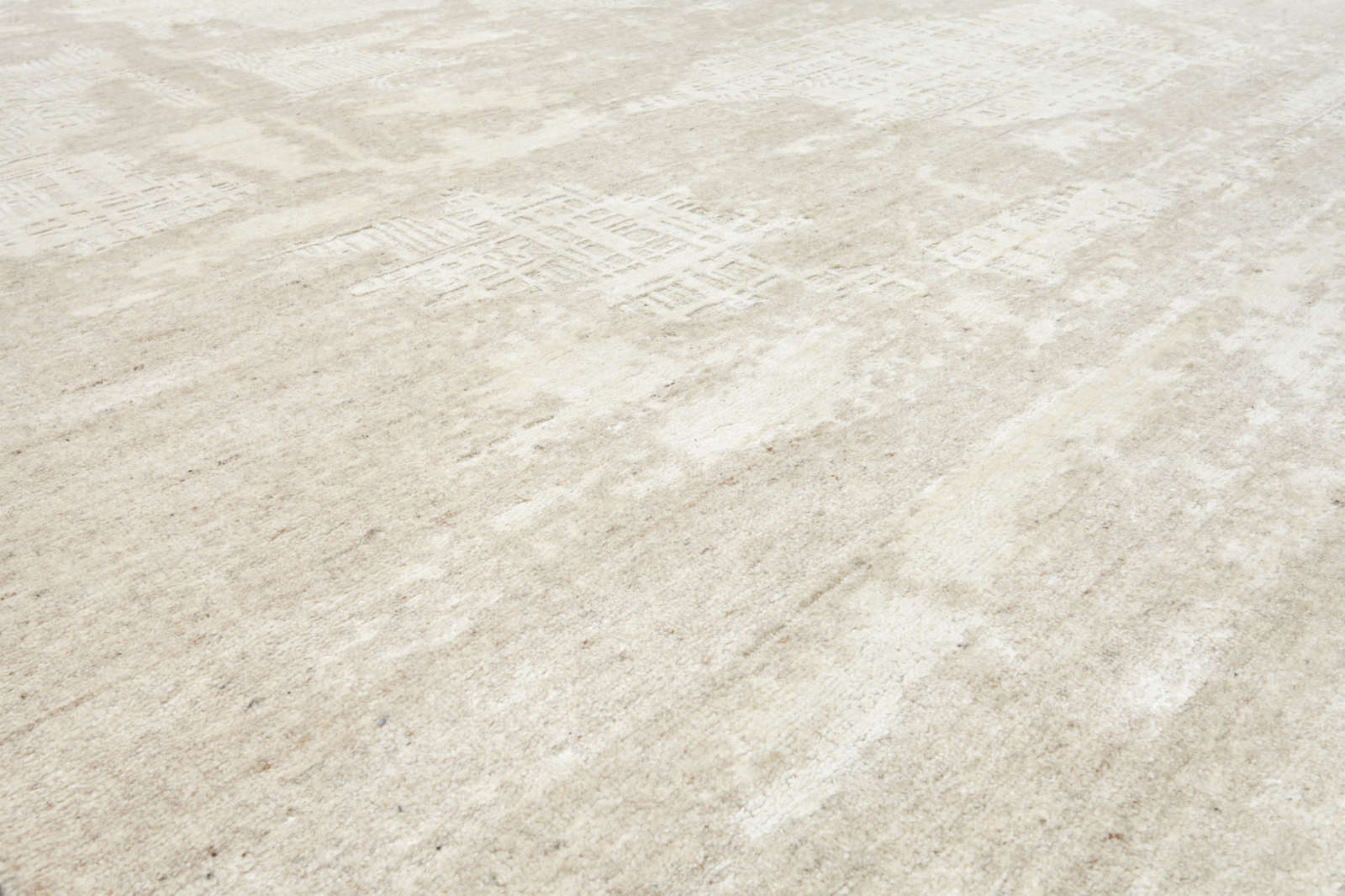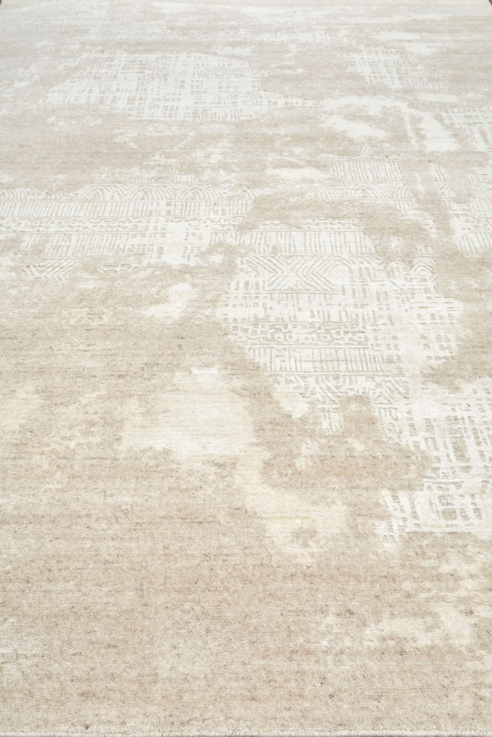 Индийский ковёр ручной работы, выполненный из шерсти и артшёлка. Сложная текстура и мягкий бежево-песочный оттенок создают эффект глубины и лёгкого винтажного рисунка. Спокойная палитра и деликатный блеск делают модель универсальной для современных и классических интерьеров.