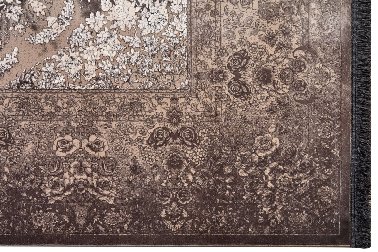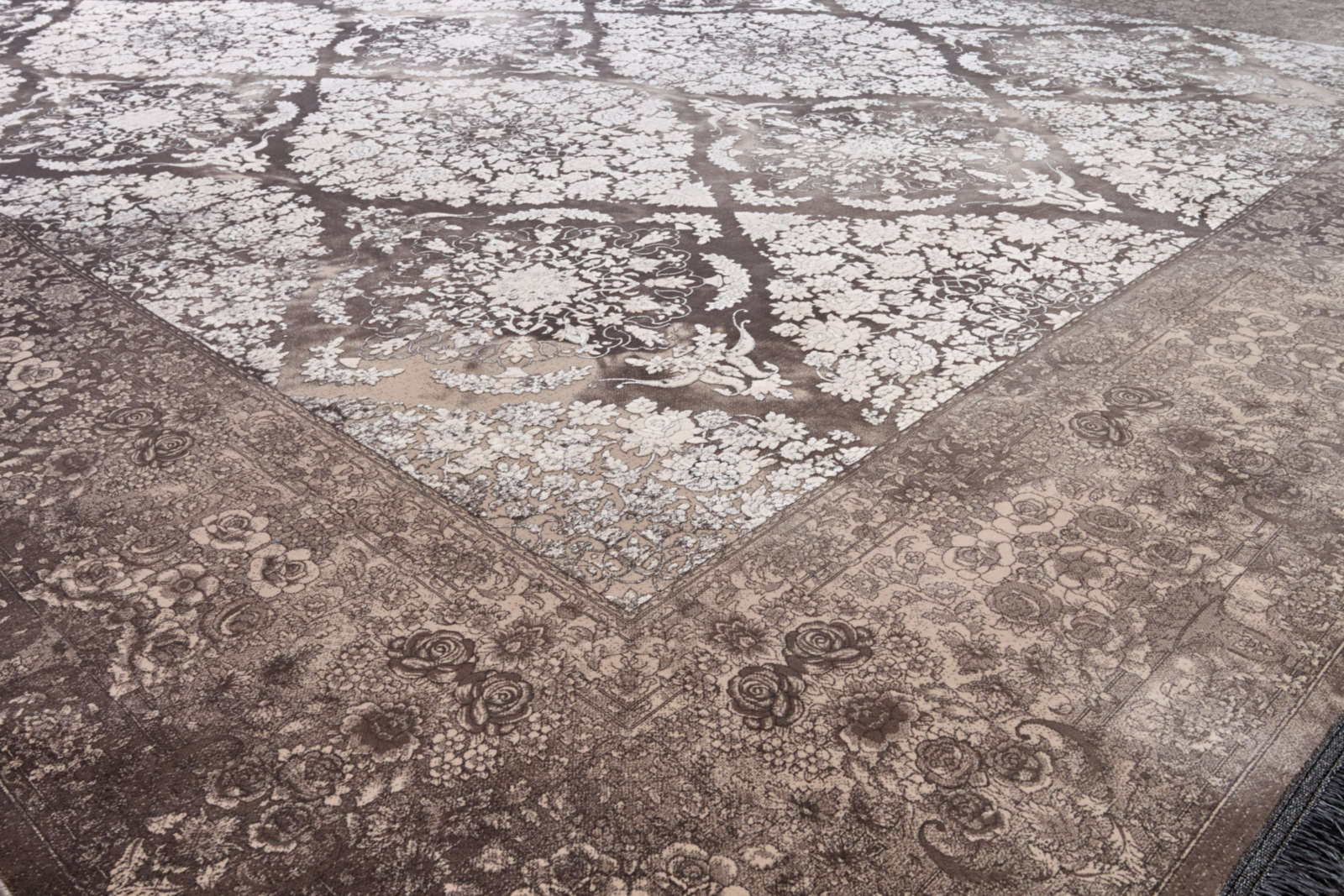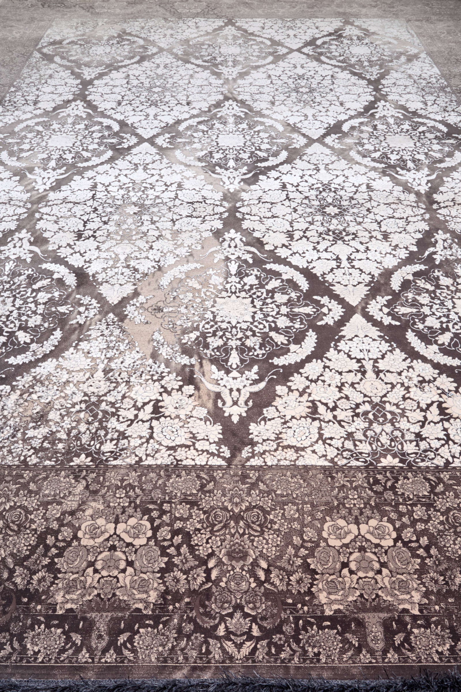 Этот ковёр будто хранит эхо восточных дворцов. Его узор состоит из переплетений цветов и тонких линий, которые образуют строгую геометрию. Палитра в серо-белых тонах создаёт ощущение сдержанной роскоши, словно узор сошёл с древней фрески, потускневшей от времени. Такой ковёр подойдёт для интерьеров, где ценят гармонию и утончённость: он прекрасно подчеркнёт светлую гостиную, добавит торжественности в кабинет или мягкости в спальню. В его рисунке чувствуется глубина и постоянство, словно он несёт в себе историю поколений. Это ковёр, который не кричит, а тихо и уверенно создаёт атмосферу уюта и достоинства.