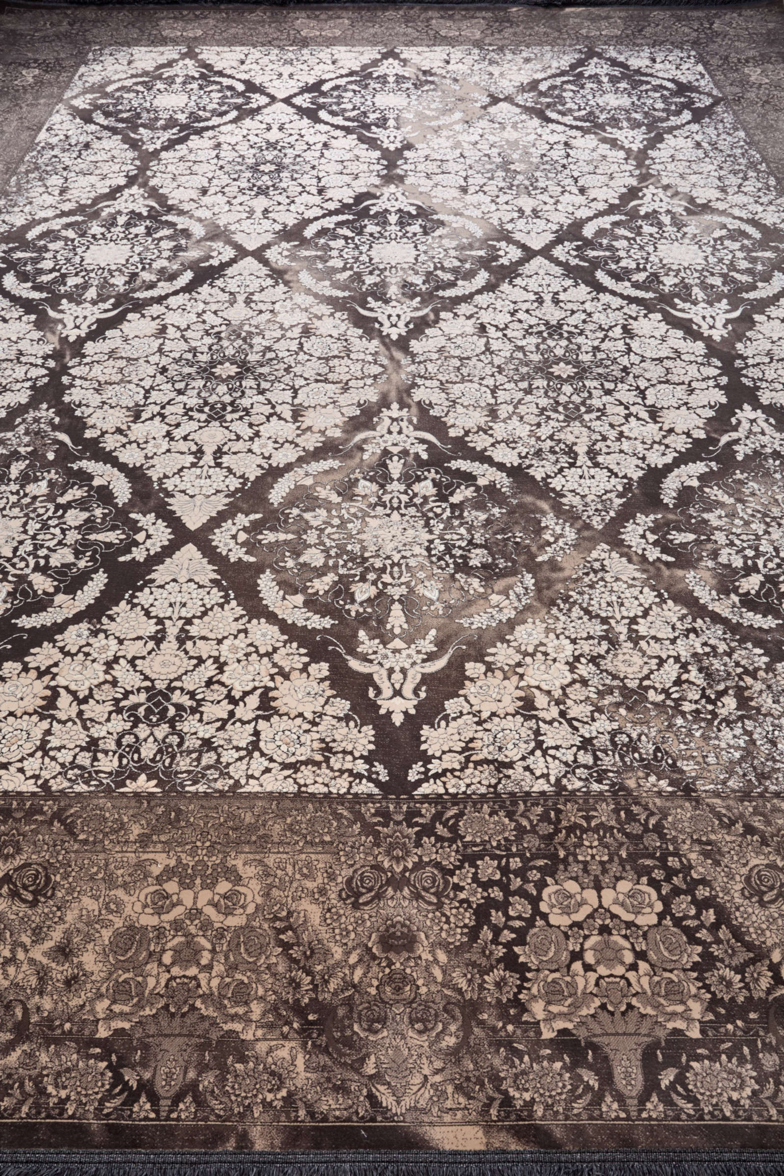 Классический ковёр с чёткой геометрией и сложным цветочным узором. Серо-белая палитра создаёт эффект старинного орнамента, словно слегка выцветшего временем. Он наполнит пространство благородством и спокойствием.