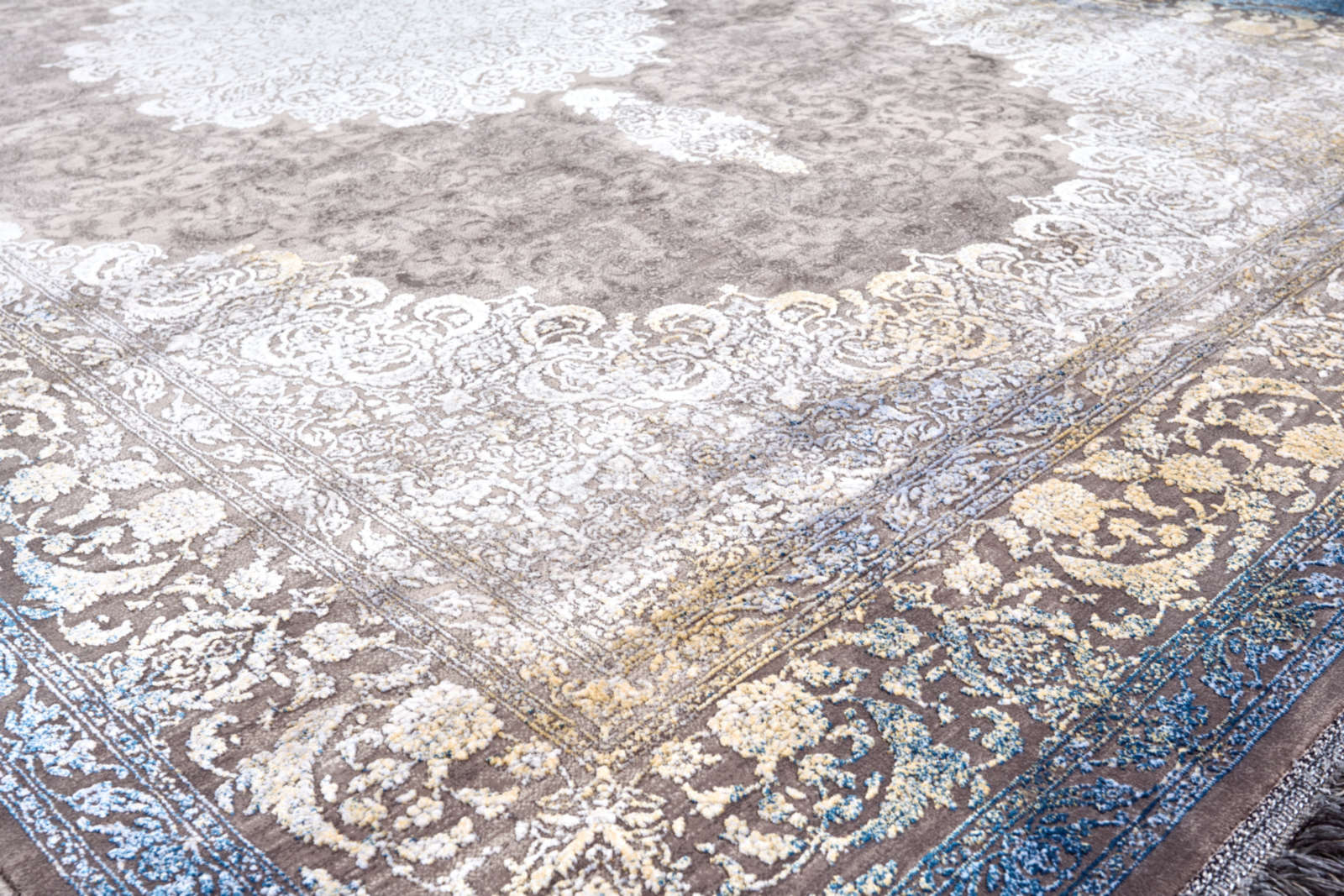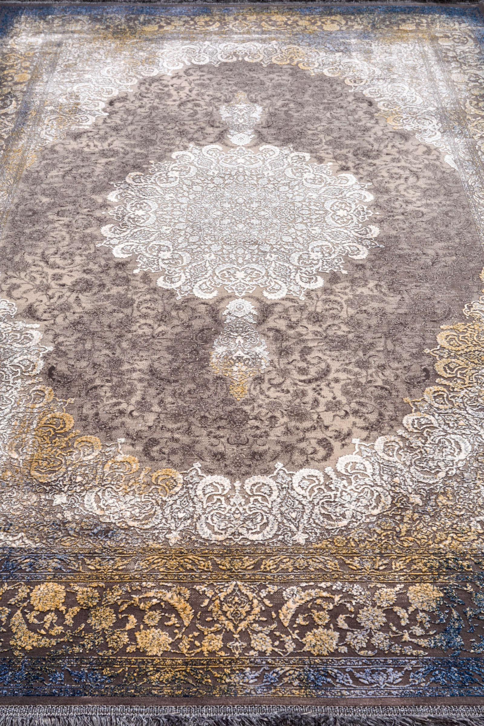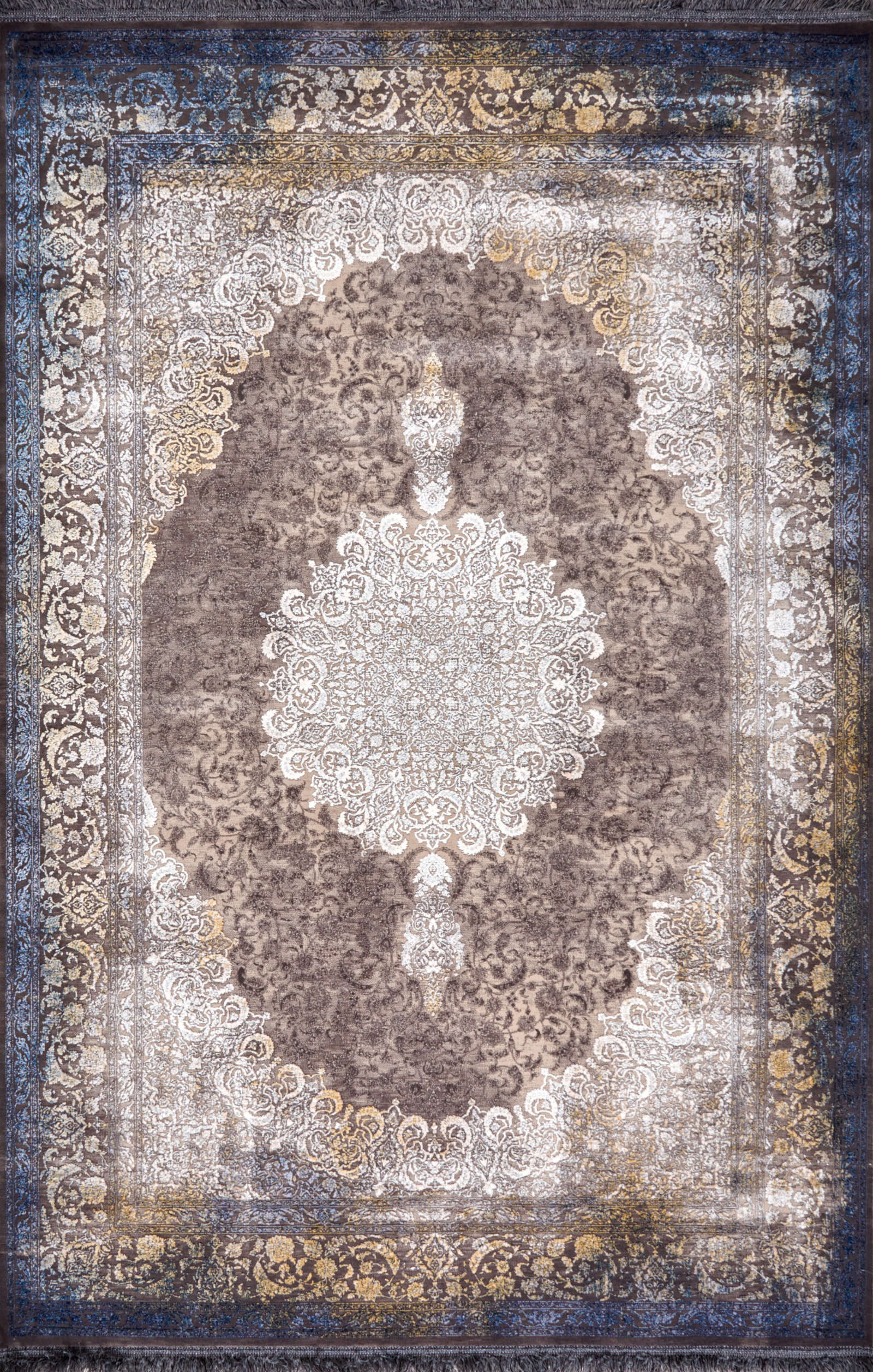 Этот ковёр словно отражает красоту ночного неба. Тёмный фон с мягким переходом оттенков украшен сияющим медальоном, который напоминает звёздное созвездие в центре Вселенной. Сине-золотая палитра играет на свету, создавая эффект глубины и перелива. Рисунок ковра исполнен с ювелирной точностью: изящные линии и орнаменты будто нарисованы кистью художника, передающего красоту вечности. Такой ковёр станет торжественным акцентом в интерьере гостиной, подчеркнёт изысканность кабинета или придаст спальне атмосферу тайны и спокойствия. Он гармонично сочетается с мебелью из тёмного дерева, золотыми деталями и мягким светом бра или люстр. Этот ковёр — словно произведение искусства, которое превращает пространство в особый мир, наполненный гармонией и красотой.