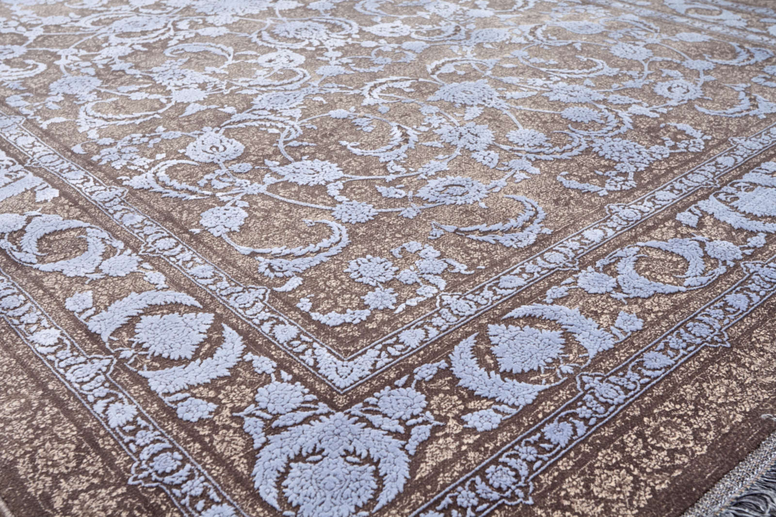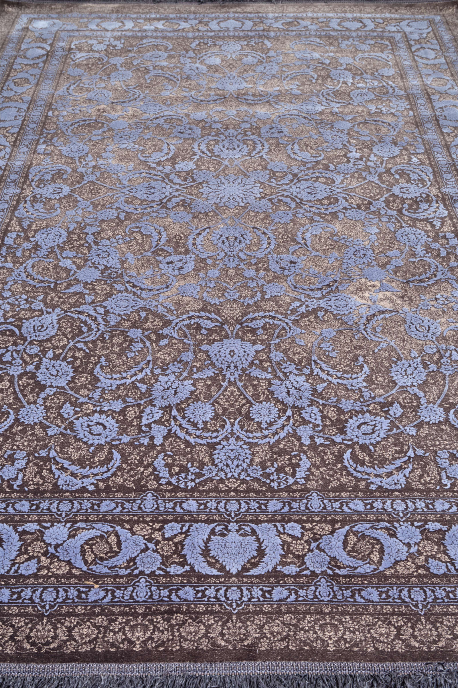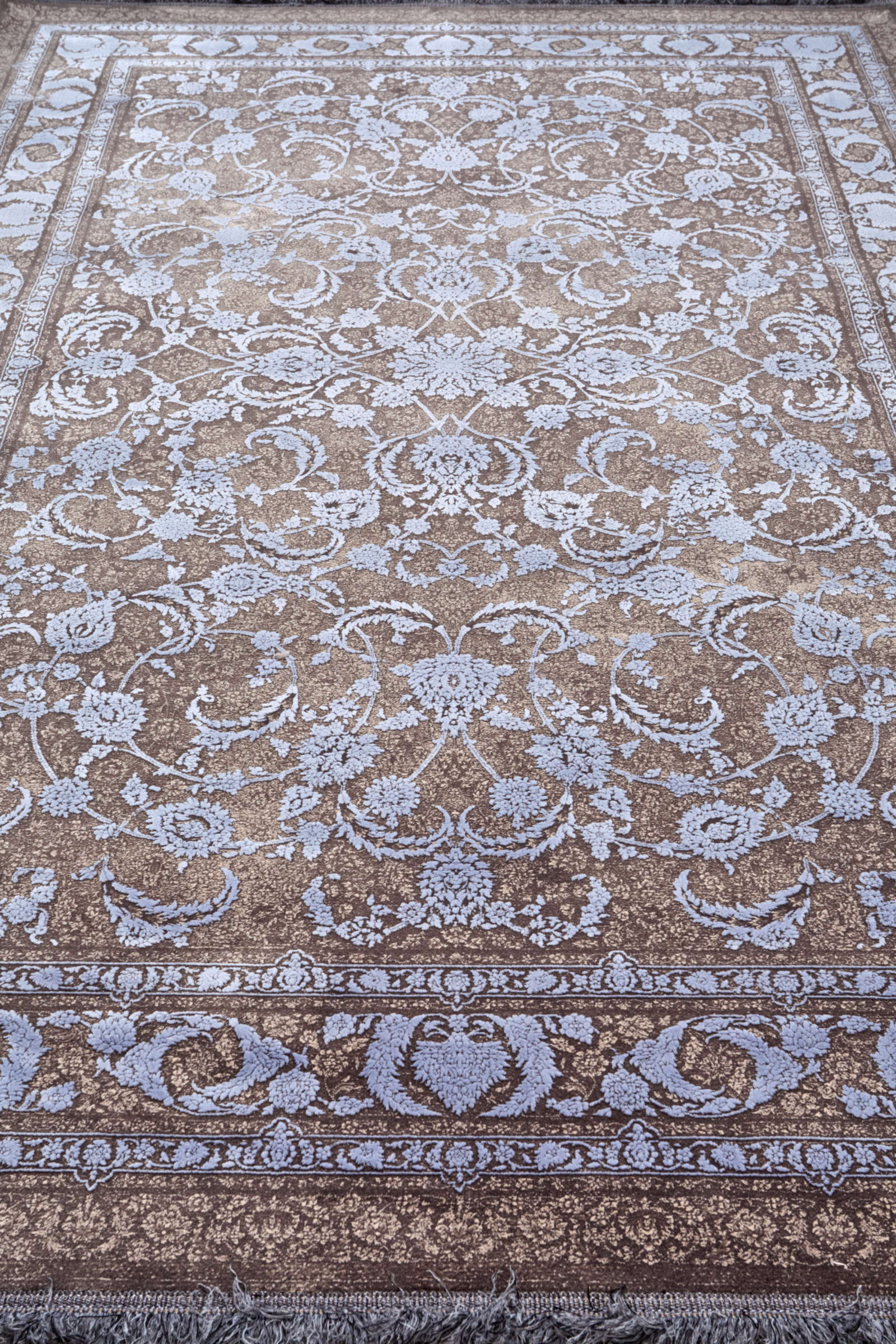 Этот ковёр — воплощение элегантности и гармонии. Его рисунок состоит из плавных растительных мотивов, переплетающихся в единую изысканную композицию. Цвета подобраны таким образом, что создают ощущение мягкости и тепла, добавляя пространству уют и солидность. Такой ковёр прекрасно впишется в классический или современный интерьер, станет изысканным акцентом в гостиной, спальне или столовой. Он подчеркнёт красоту мебели и декора, добавит глубины и завершённости образу помещения. Этот ковёр — выбор для тех, кто ценит утончённую декоративность и стремится окружить себя вещами, создающими атмосферу спокойствия и гармонии.