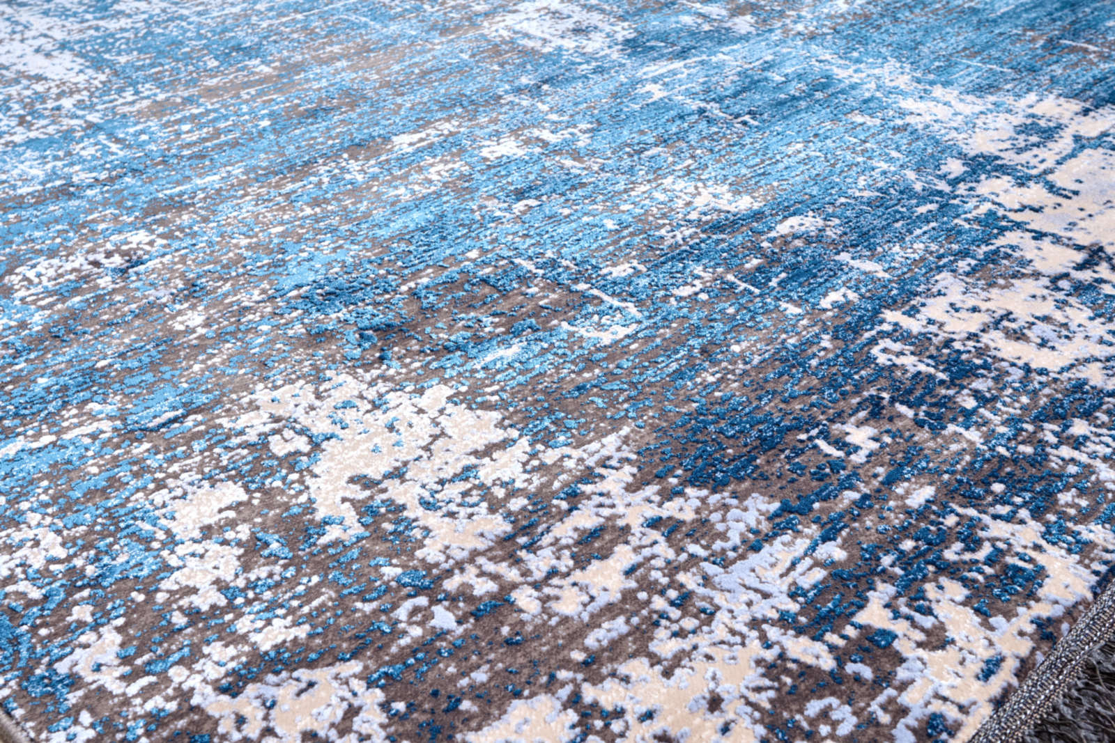 Ковёр с абстрактным рисунком в сине-серой гамме напоминает игру света на воде. Его текстура создаёт глубину и динамику, добавляя интерьеру свежесть и современный ритм. Подходит для минималистичных и креативных пространств.