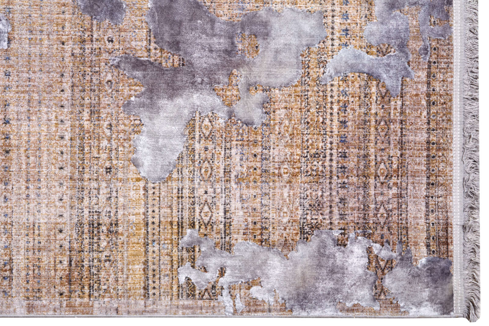 Серый ковёр с тонким узором напоминает тканое полотно. Его строгий ритм создаёт ощущение структуры, а мягкие переливы придают интерьеру спокойствие и завершённость. Отлично впишется в минимализм и скандинавский стиль.
