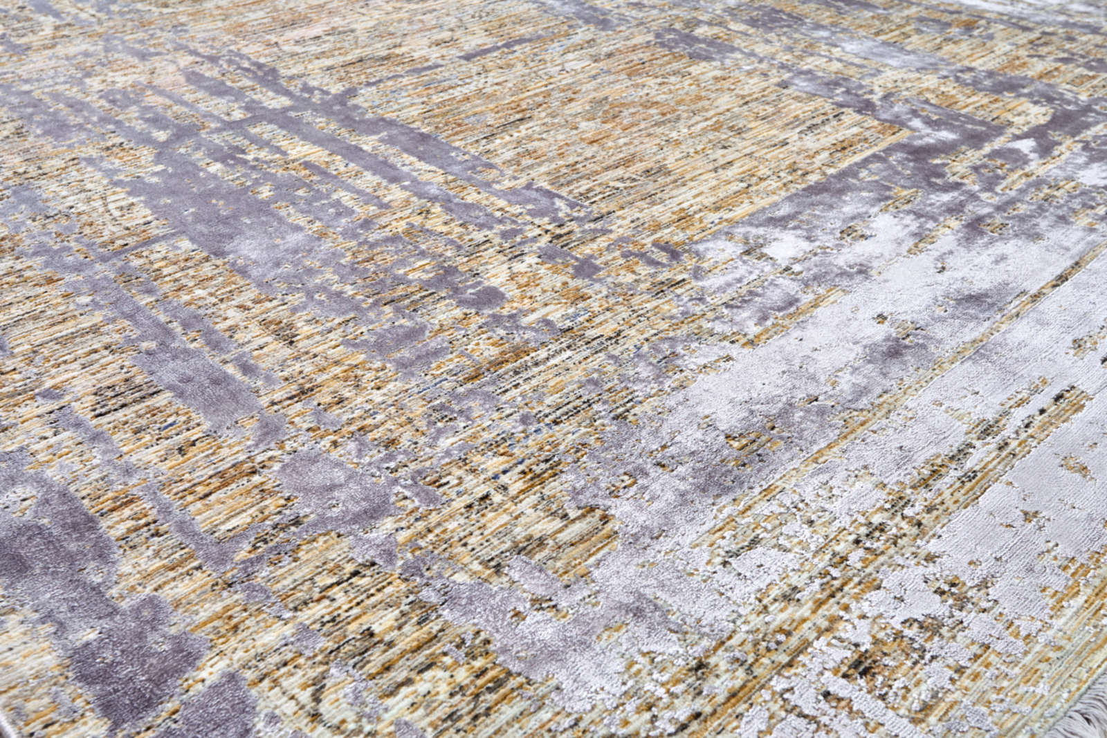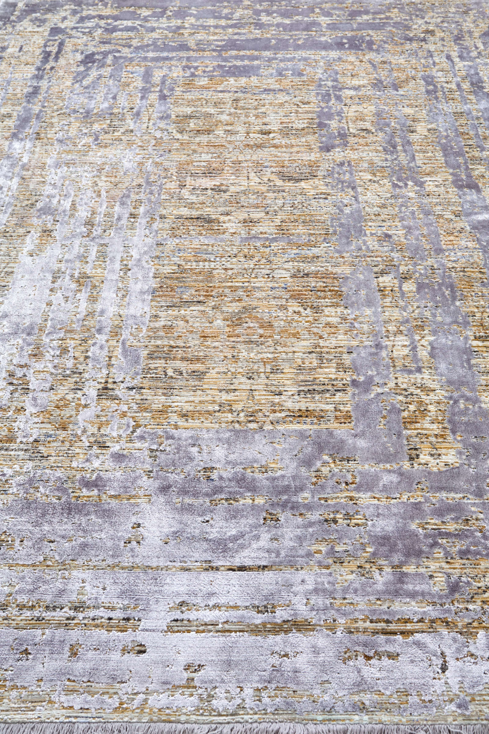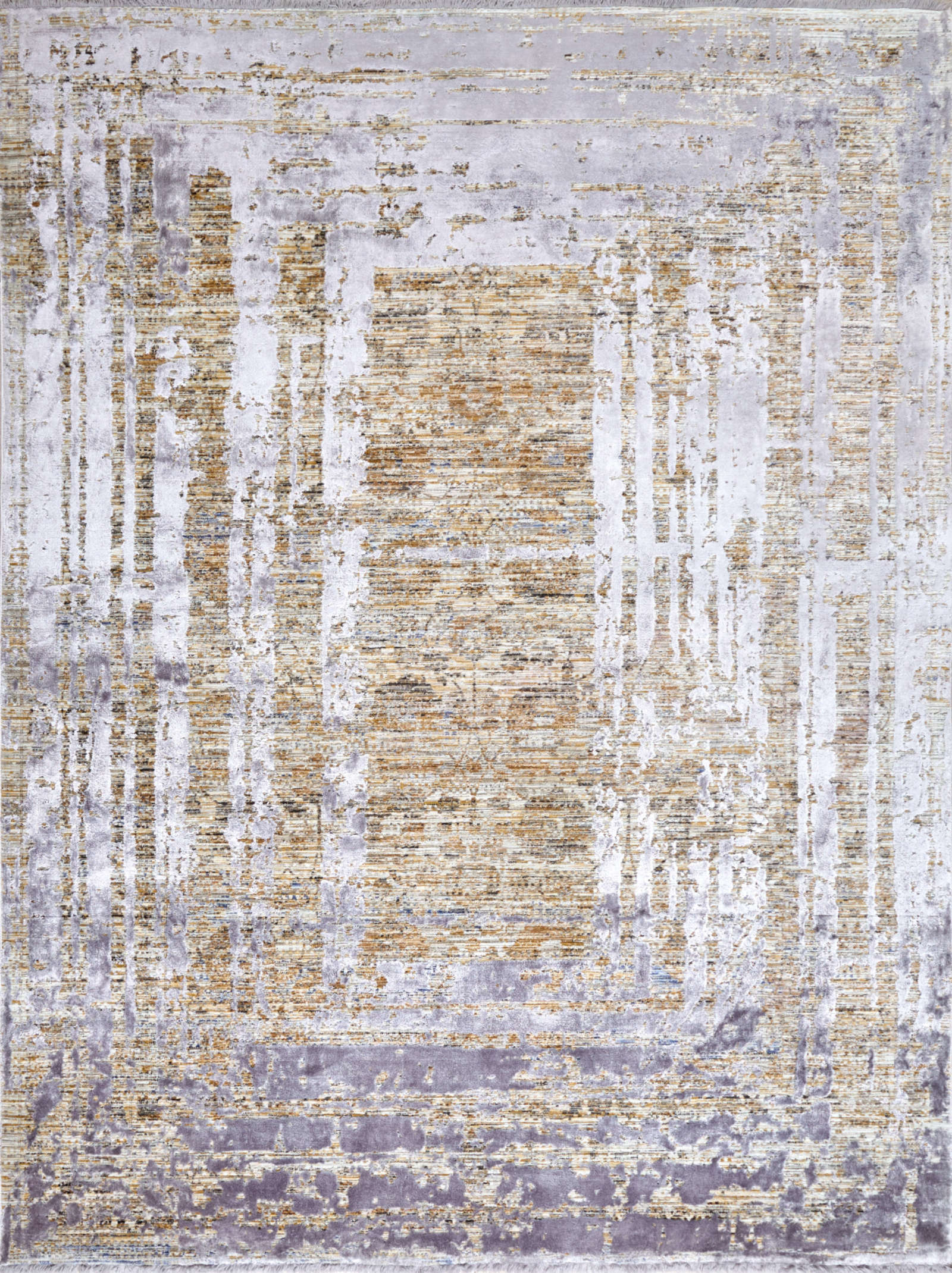 Этот ковёр будто создан из слоёв истории — его фактура напоминает старинные стены, на которых время оставило свой рисунок. Светлые оттенки и мягкие золотистые акценты создают игру света и тени, придавая ковру глубину и богатство. Его поверхность похожа на абстрактное полотно художника, где каждая линия и потёртость несут в себе историю. Такой ковёр прекрасно дополнит интерьер в стиле модерн, минимализм или ар-деко. Он станет не только практичным элементом — тёплым и мягким под ногами, но и художественным акцентом, задающим настроение всему пространству. Идеален для гостиных, просторных залов или спален, где хочется подчеркнуть индивидуальность и вкус хозяев.