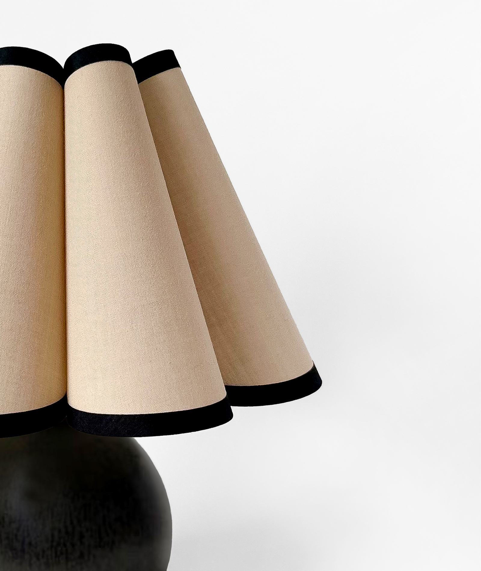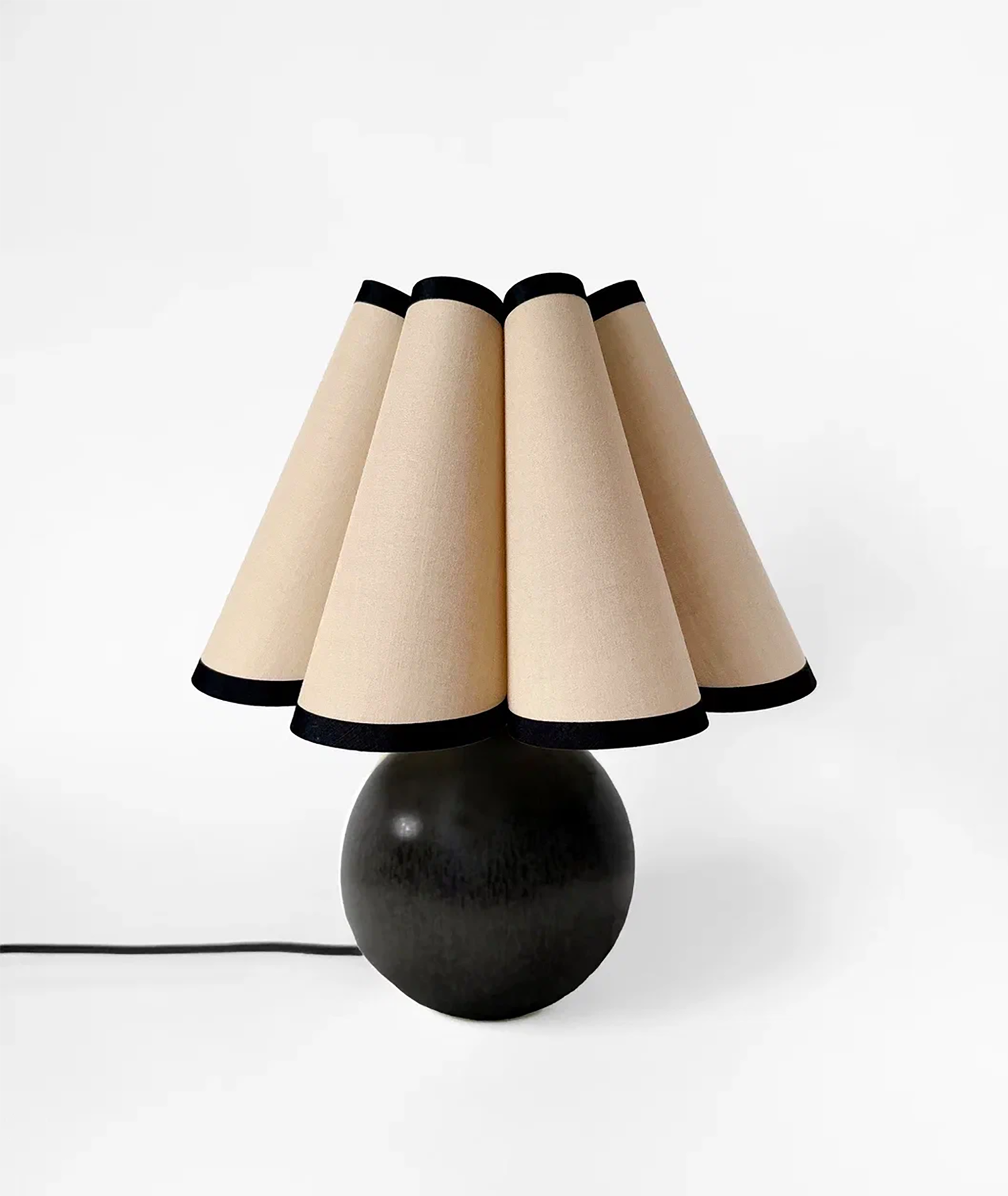 Настольная лампа Ophelia в чёрном исполнении — это предмет, в котором элегантность формы сочетается с чувством такта и пропорции. Её округлое керамическое основание оттеняет графичную строгость чёрного цвета, а светлый текстильный абажур с контрастным кантом добавляет лёгкости и тепла. В этом сочетании рождается баланс — между светом и тенью, мягкостью и архитектурной чёткостью.