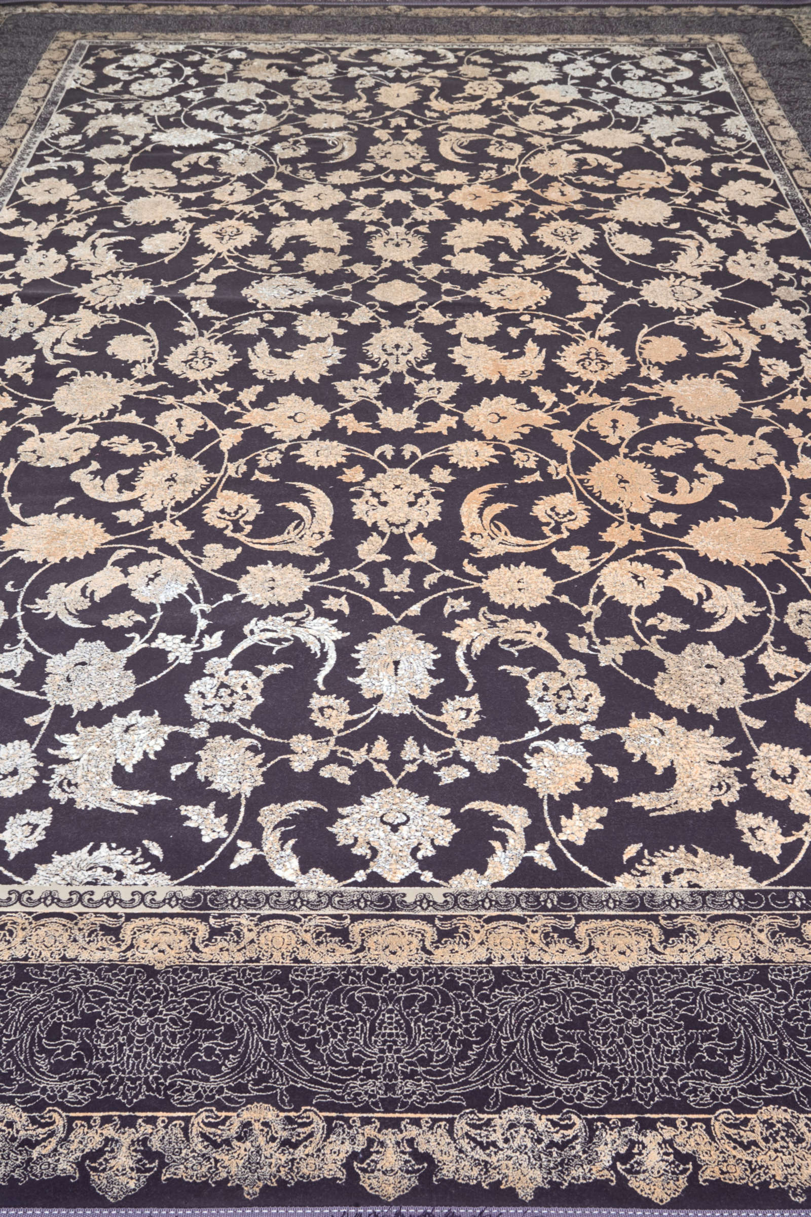 Дизайнерский ковёр с классическим восточным орнаментом на почти чёрном фоне. Винтажный рисунок словно оживает в современной палитре, отсылая к атмосфере древней Персии — утончённо, выразительно, глубоко.