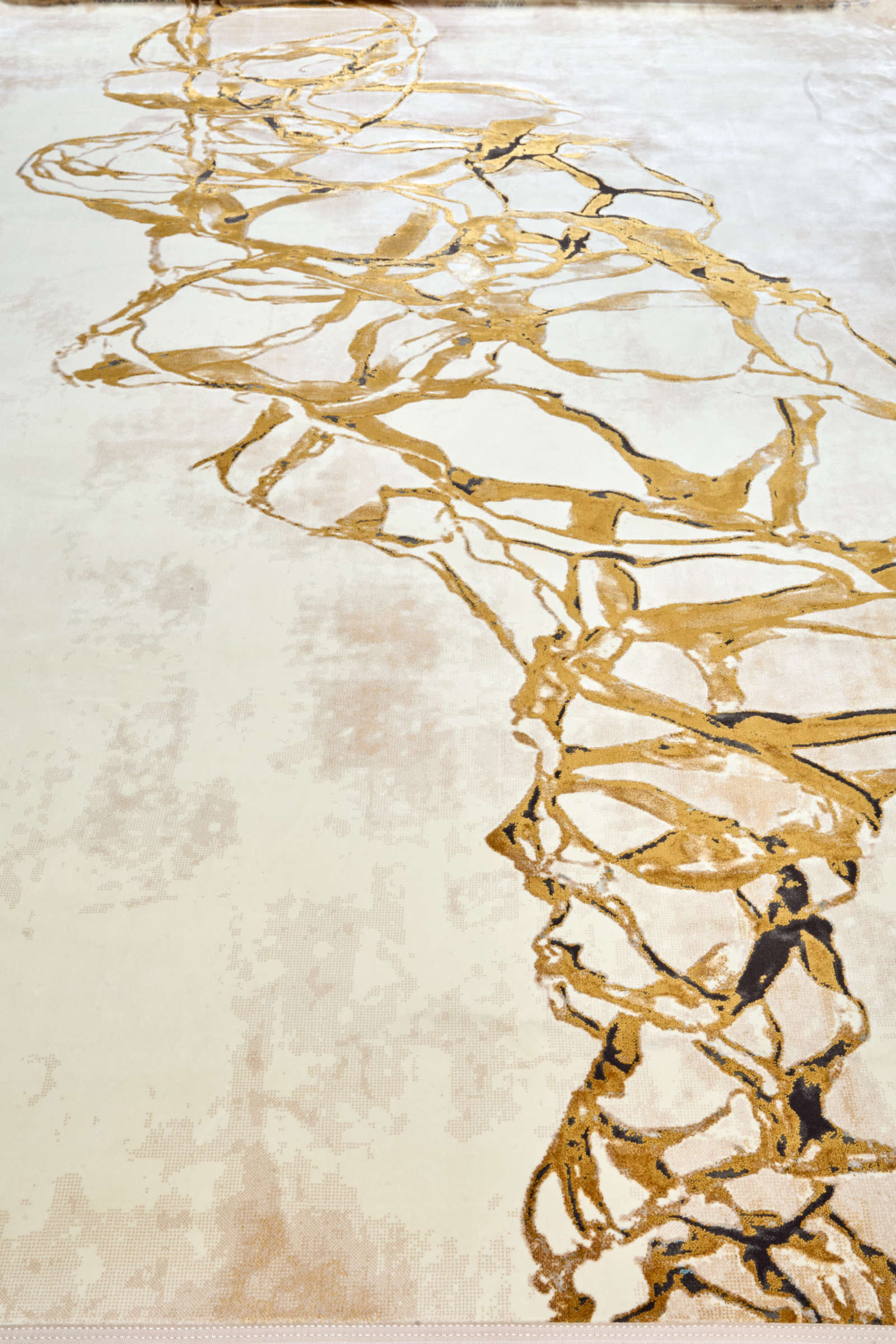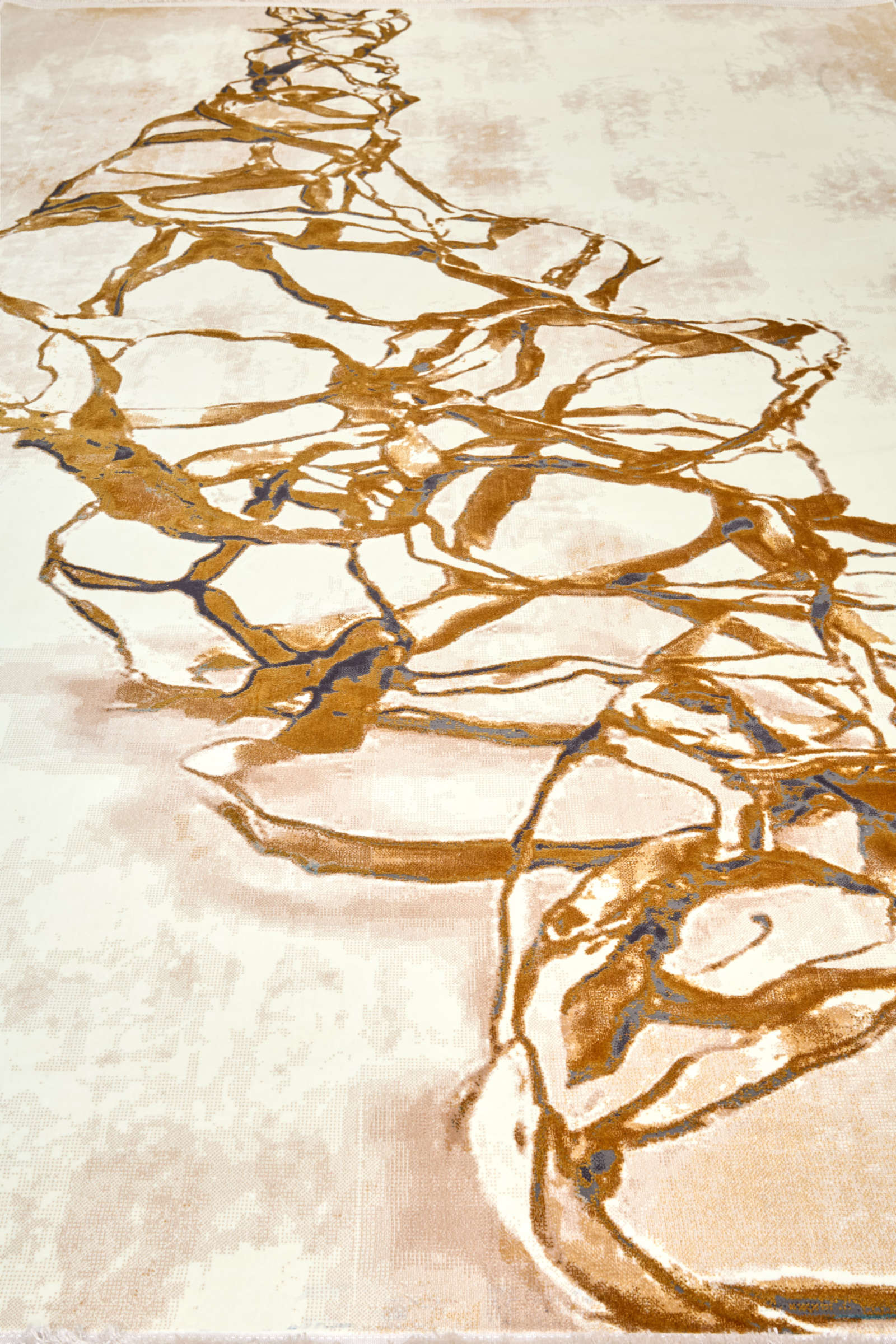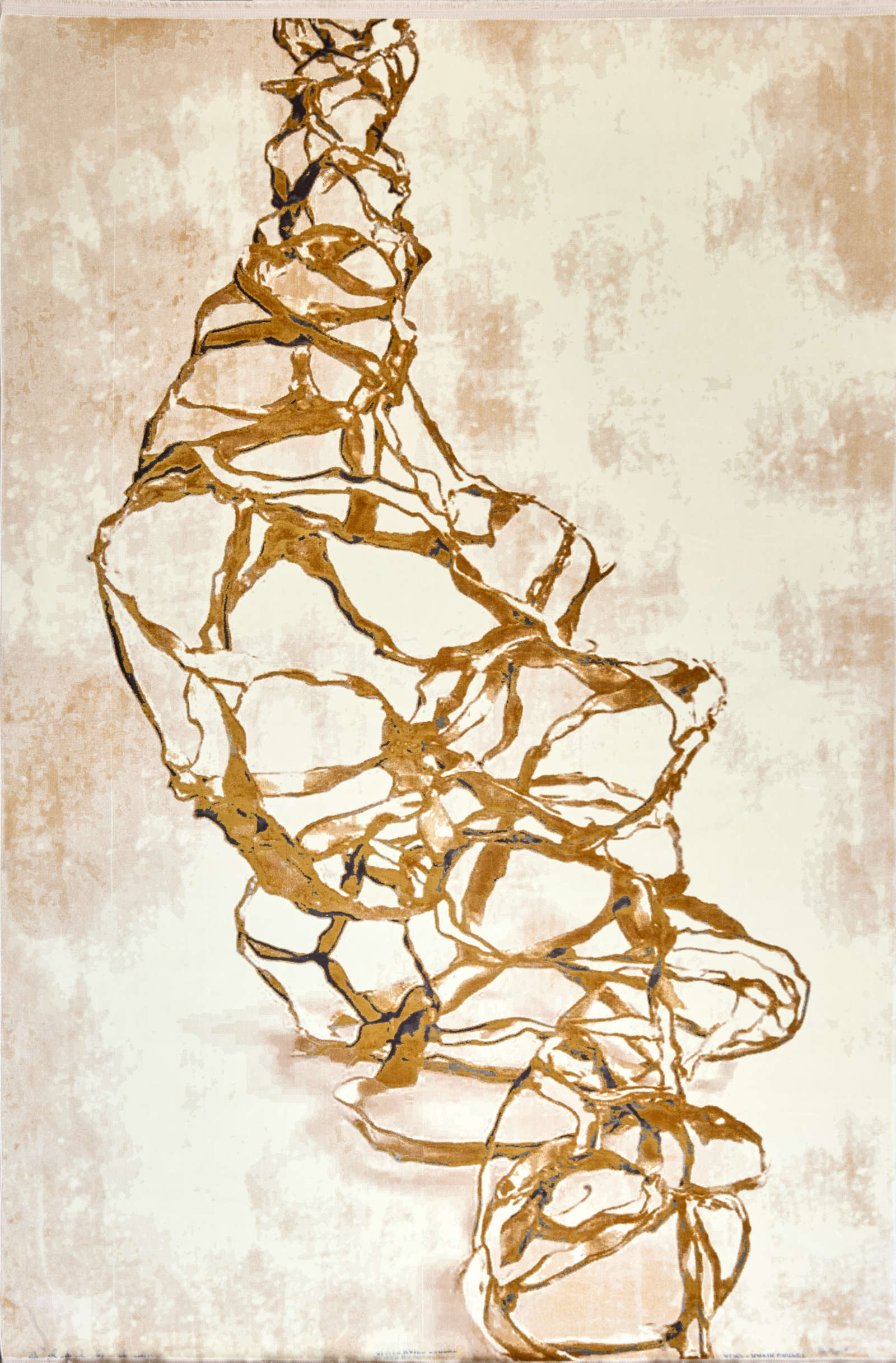 Этот ковёр — произведение графического искусства, перенесённое на ткань. Рисунок напоминает смелые штрихи, оставленные на светлом фоне рукой художника. Такой визуальный язык задаёт динамику и привносит в интерьер энергию и глубину.
