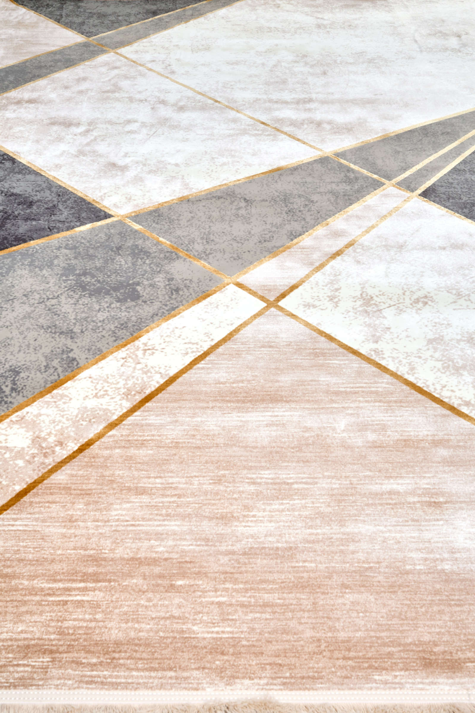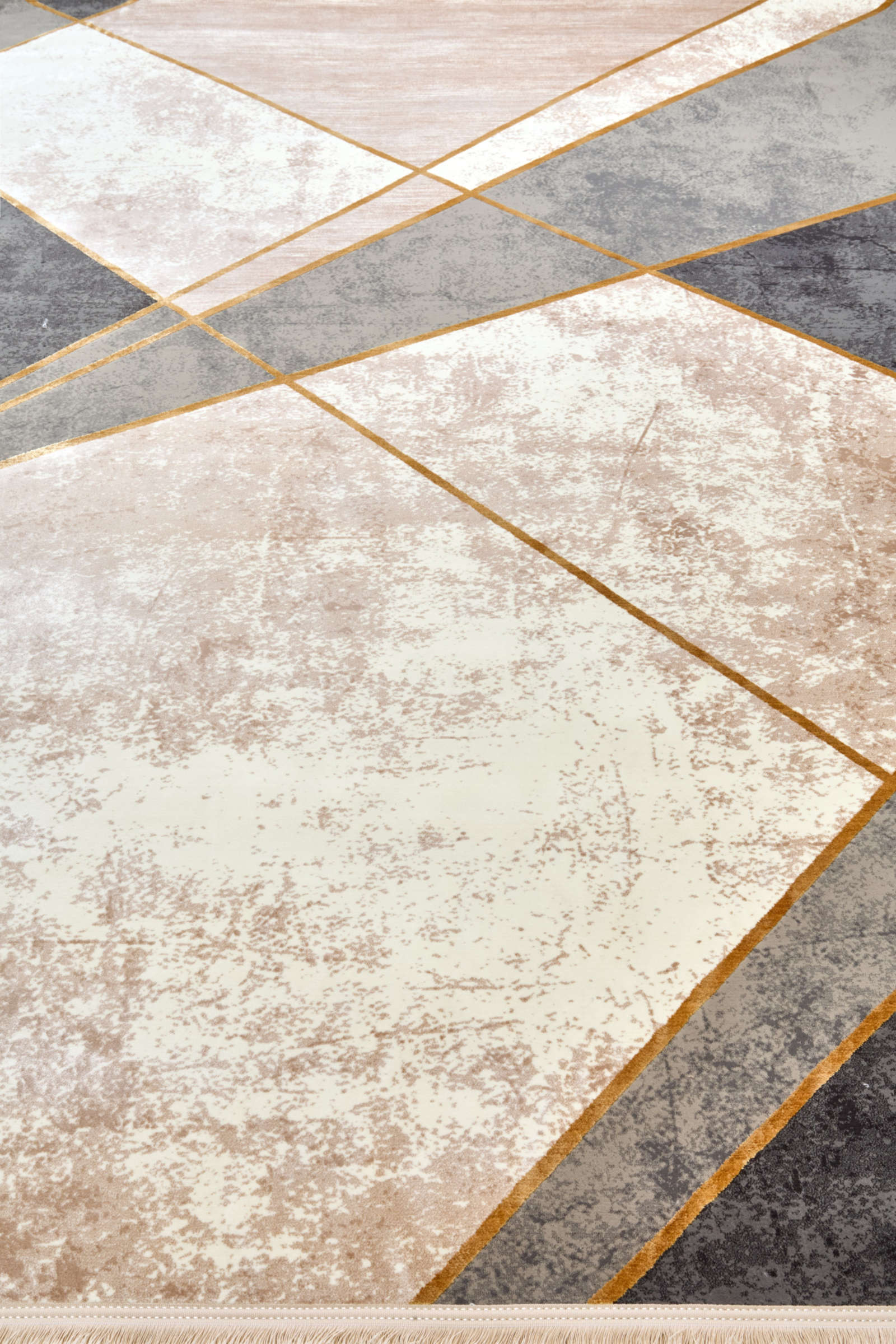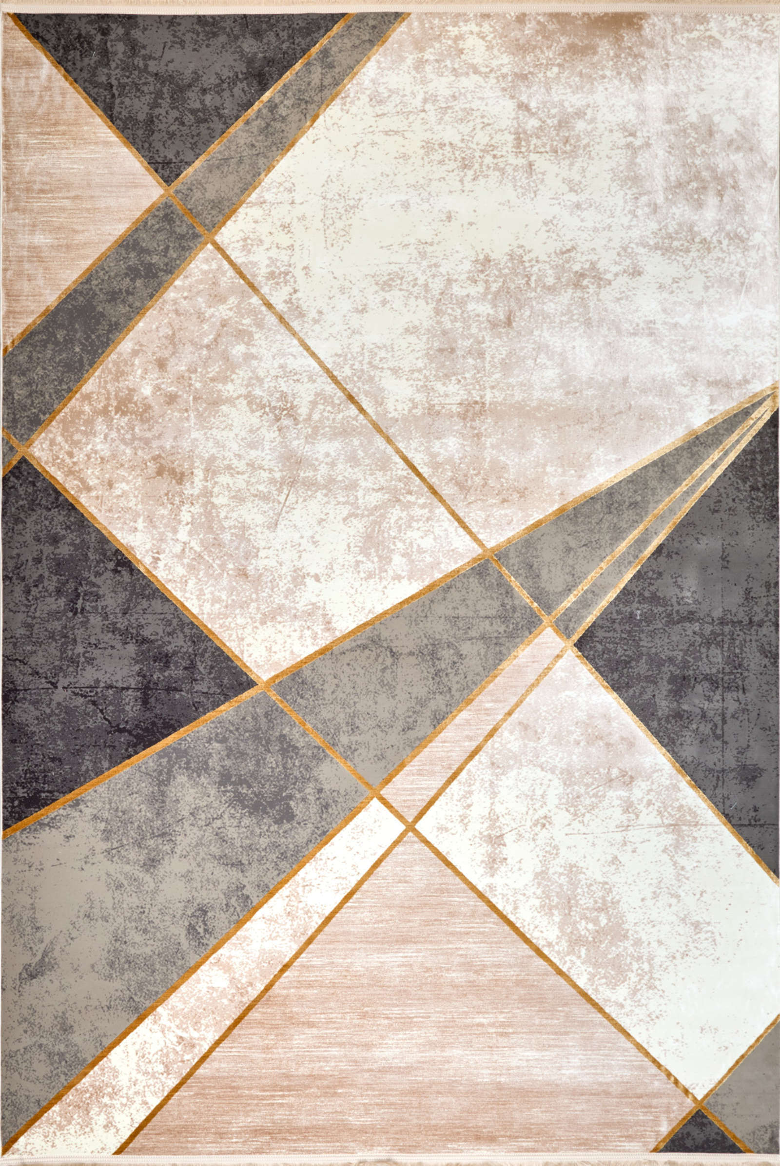 Этот ковёр — как графика в движении: крупные диагонали, светлые и тёмные плоскости и едва мерцающие золотистые линии создают эффект архитектурного ритма. Нейтральные оттенки серого, молочного и песочного делают его универсальным фоном для мебели и акцентов в интерьере.В основе — артшёлк и акрил, материалы, которые придают ковру мягкость, лёгкий блеск и устойчивость к износу. Он подойдёт как для строгой гостиной в духе современного минимализма, так и для спальни с тёплой сдержанной палитрой. Такой ковёр структурирует пространство и делает его цельным.