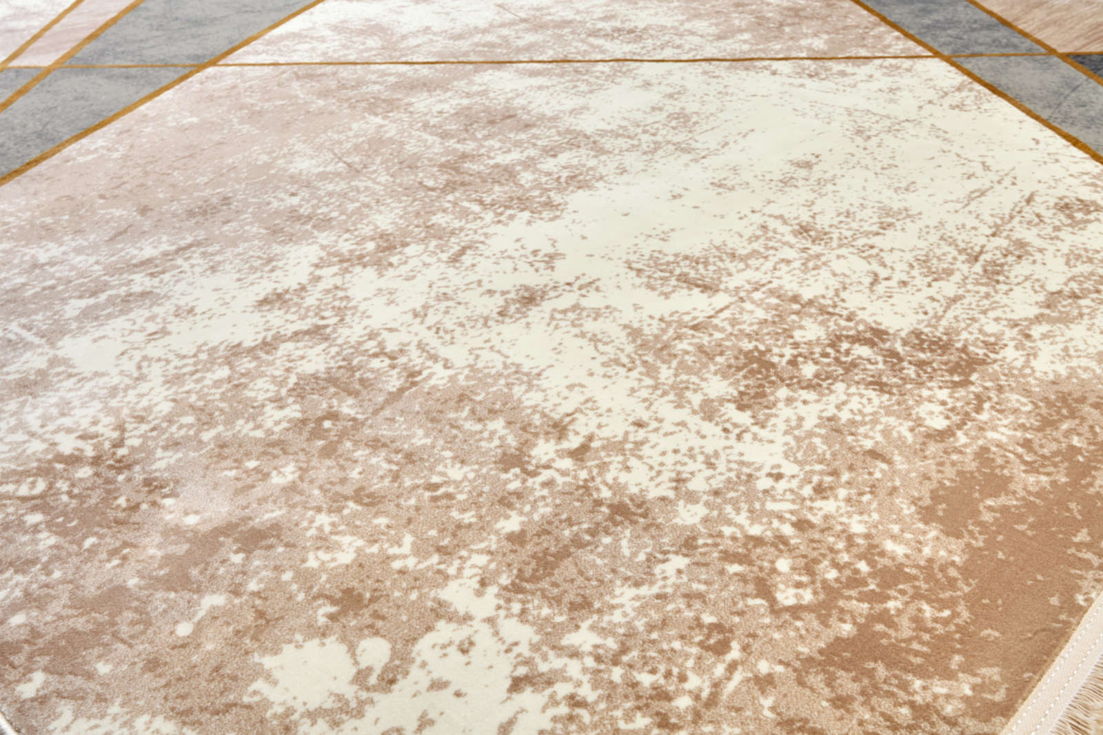 Ковёр с динамичным геометрическим узором в серо-бежевой гамме с акцентом тонких золотистых линий. Он добавляет интерьеру энергии, при этом оставаясь элегантным. Приятный на ощупь, износостойкий, легко впишется в современную или неоклассическую обстановку.