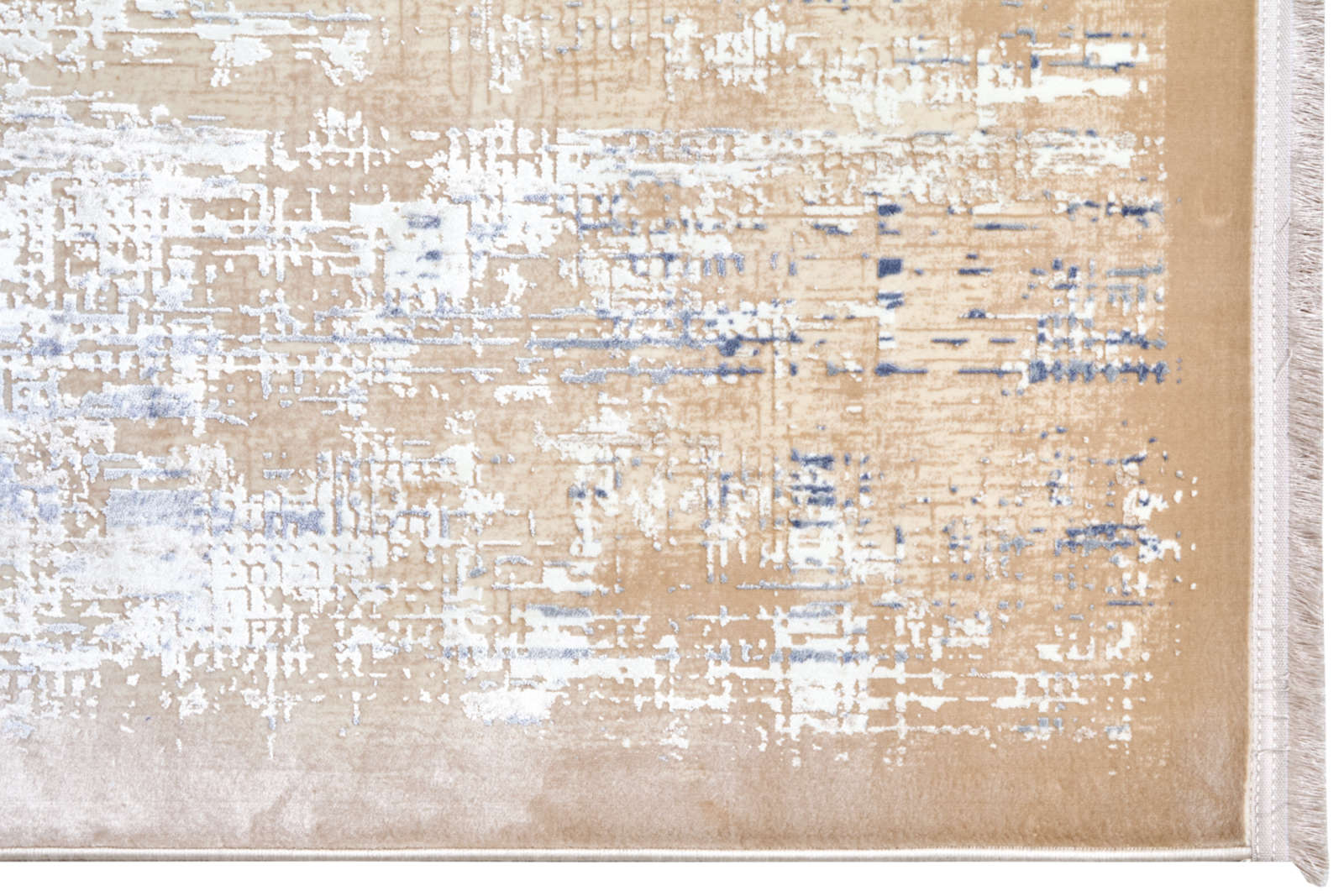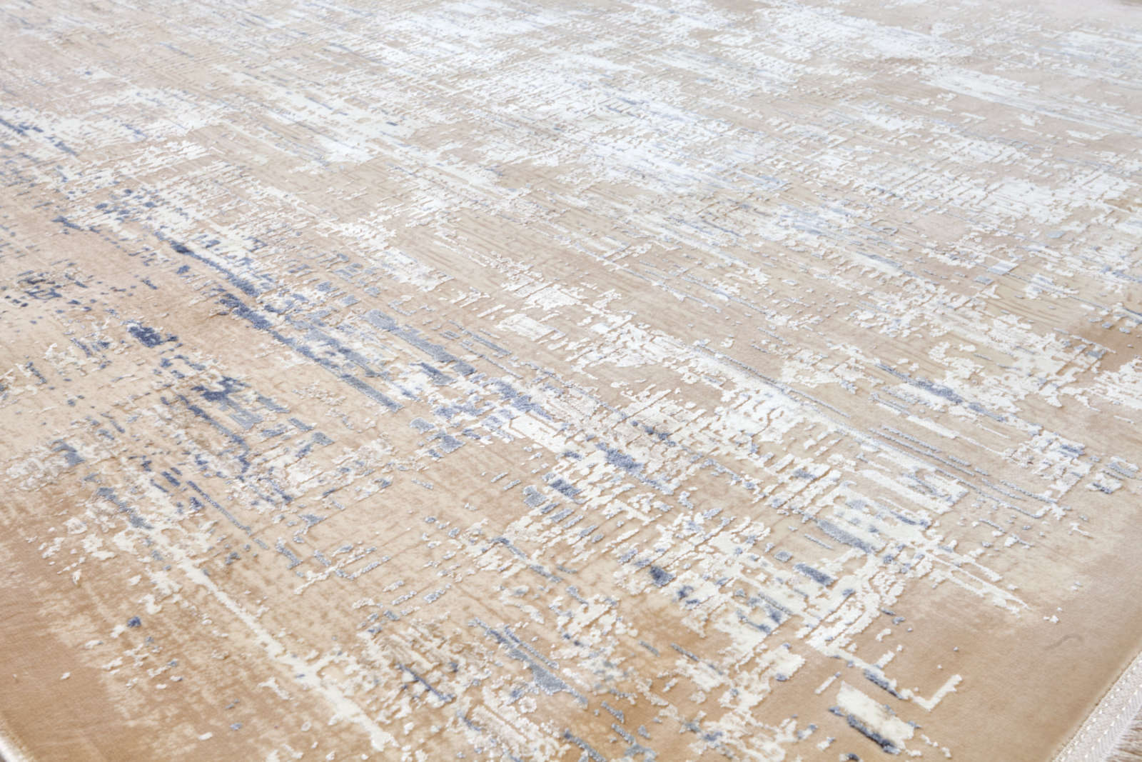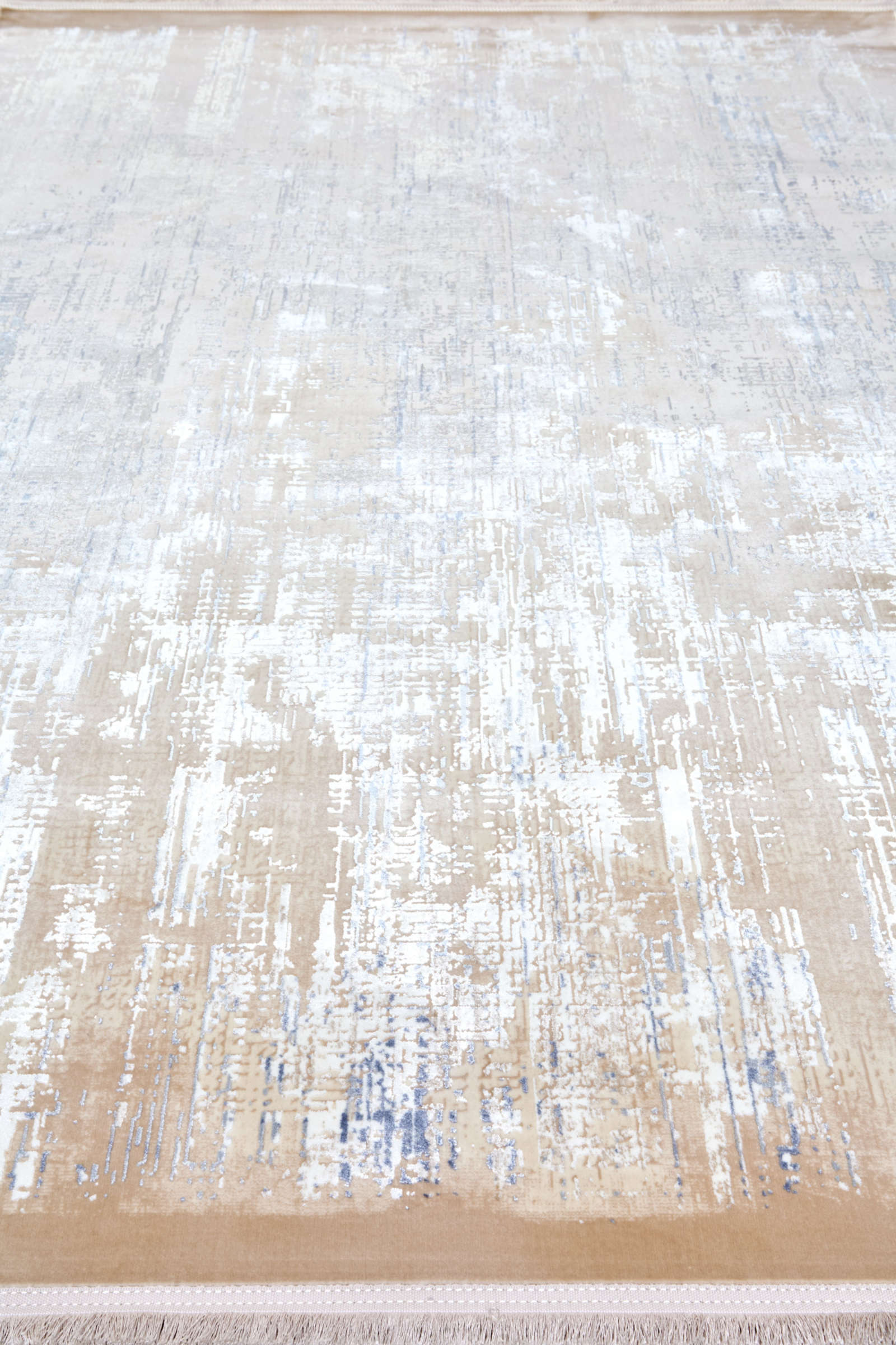 На этом ковре будто запечатлён миг дыхания моря: мягкая линия горизонта, легчайший туман у кромки воды и отпечатки волн на песке. Голубые и серовато-бирюзовые нюансы плавно перетекают в тёплые песочные оттенки, создавая равновесие свежести и уюта. Эффект акварели — без резких контуров, без графической жёсткости — помогает интерьеру «дышать»: пространство визуально расширяется, свет отражается мягче, а контрасты становятся дружелюбными. Такой ковёр уместен там, где важны природные фактуры: светлый дуб, ротанг, хлопок, лен. В скандинавской гостиной он соберёт белые стены, серые диваны и керамику ручной работы. В спальне с балконом или панорамным окном усилит ощущение утренней прохлады и тишины. В средиземноморской палитре хорош с терракотовыми акцентами и коваными деталями. Этот ковёр — визуальный отдых, мягкий ритм, который не утомляет, а наполняет дом светом.