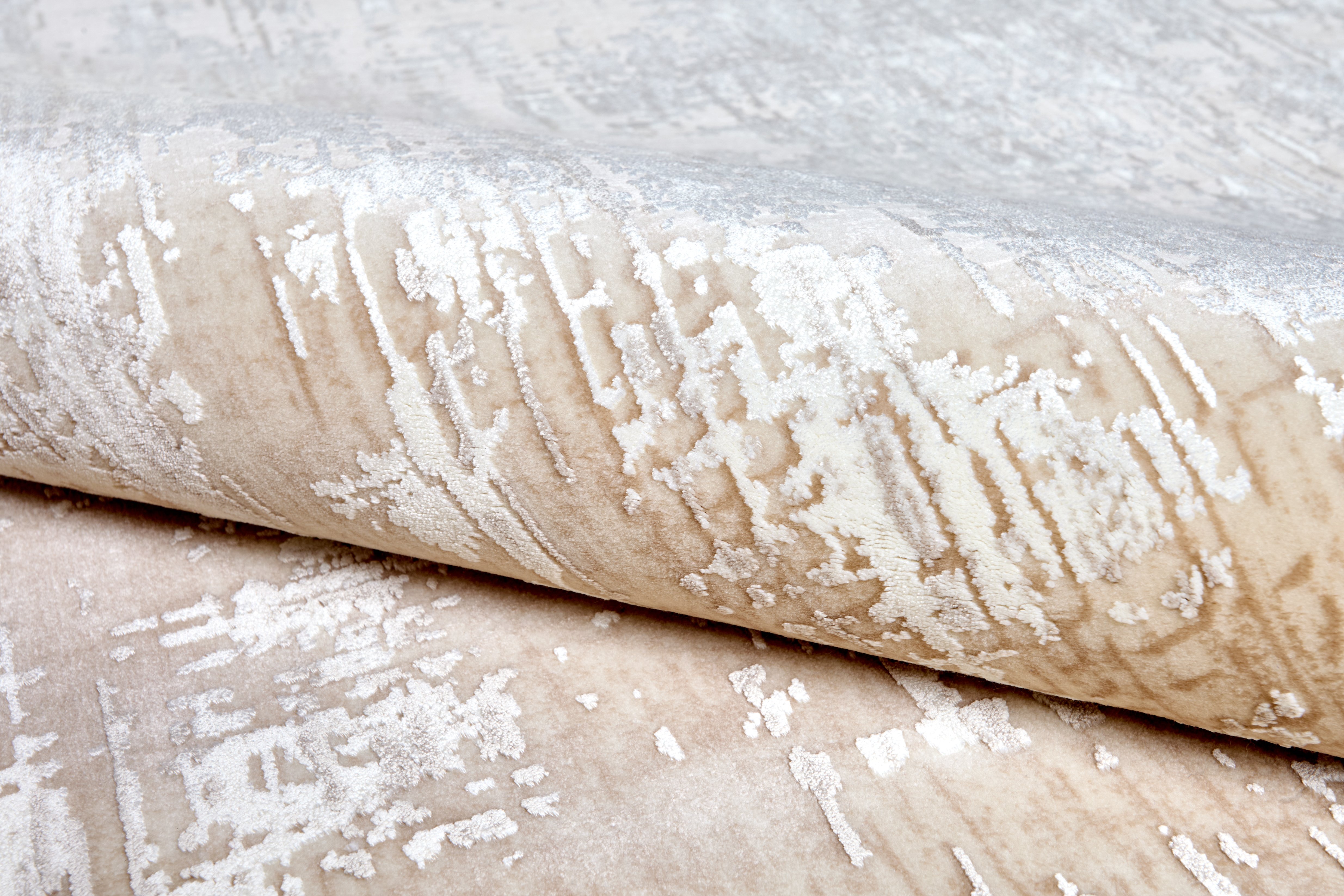 Ковёр в пастельной гамме с эффектом потертости напоминает старинный холст, где каждая линия хранит отпечаток времени. Его спокойные бежевые оттенки дарят уют, а лёгкая патина создаёт атмосферу тепла и воспоминаний.