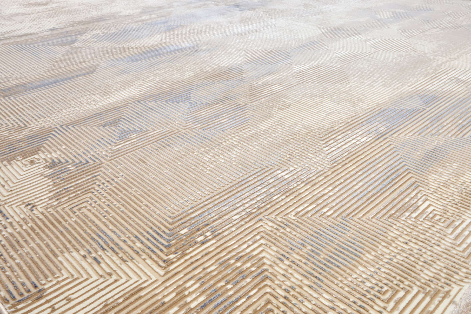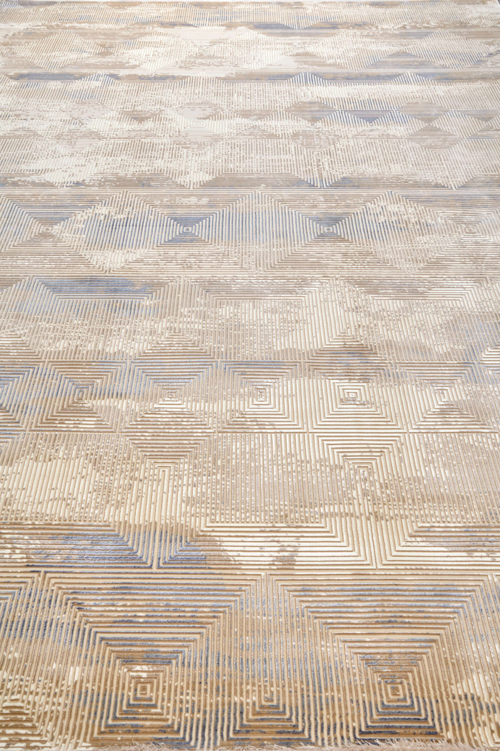 Современный ковёр с мягким золотистым свечением и деликатной патиной, словно свет заката, застывший в ткани. Тёплая бежево-медовая гамма создаёт атмосферу уюта и спокойной роскоши. Идеален для неоклассики, ар-деко и эклектики, поддерживает дерево, латунь и молочные тона стен.