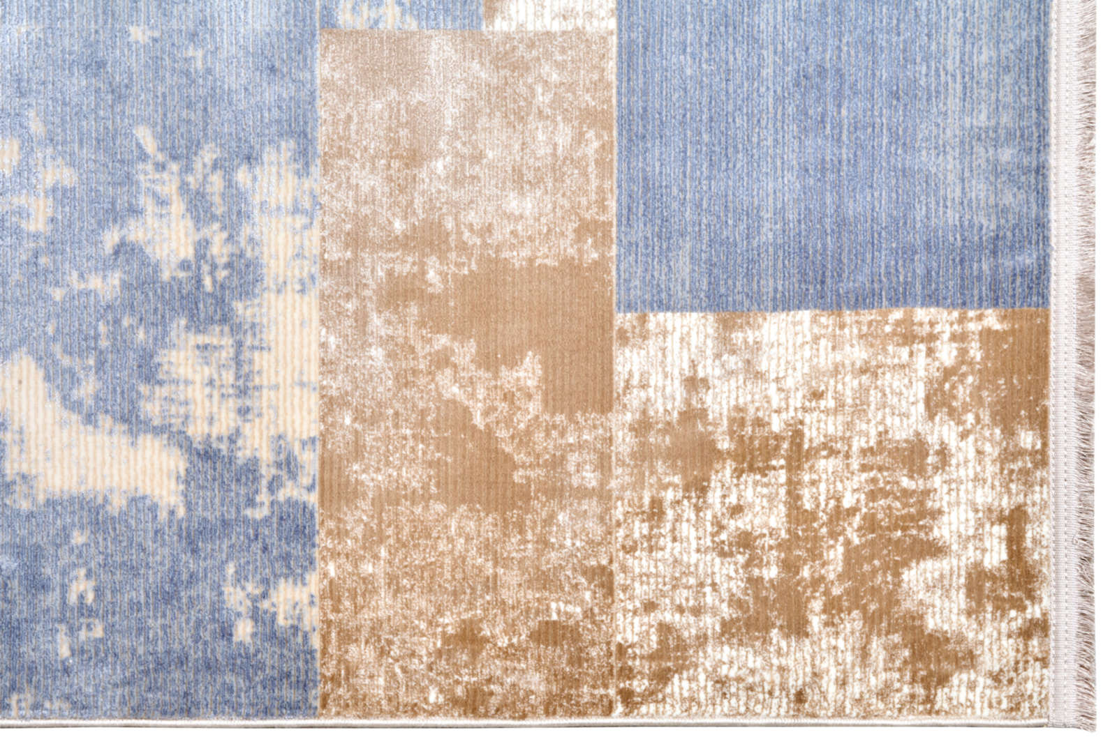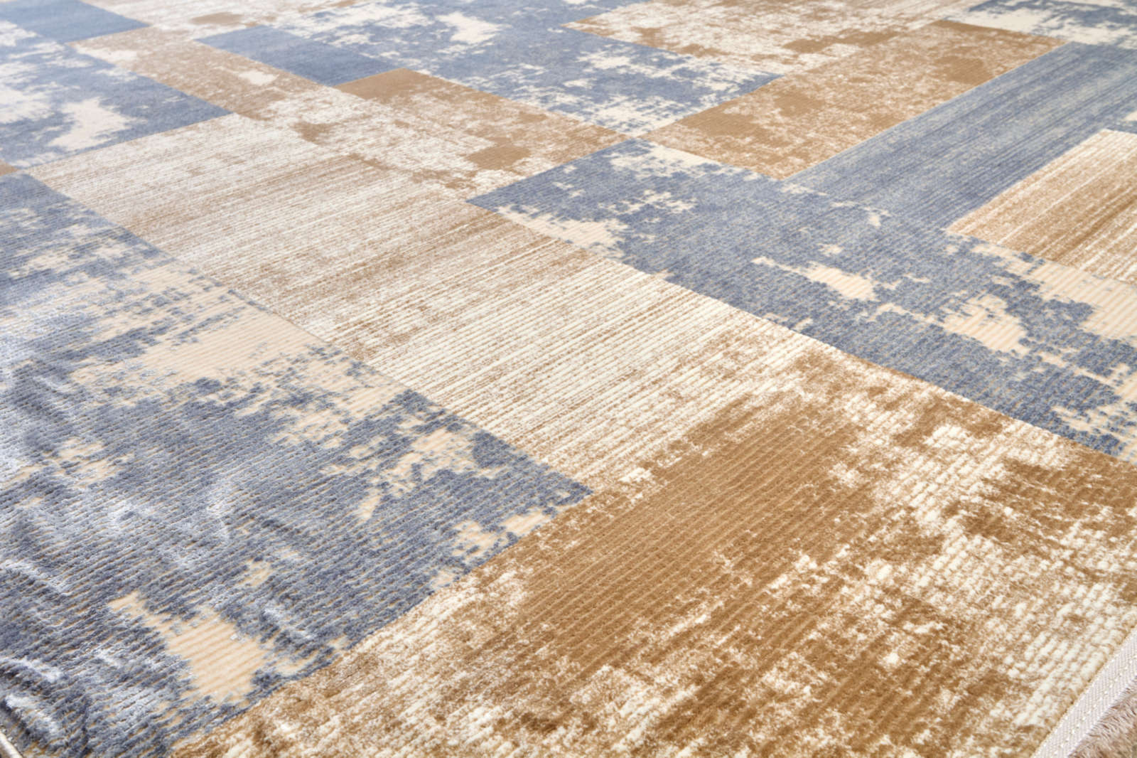 Этот ковёр словно хранит в себе дыхание прошлого, но звучит удивительно современно. Его поверхность украшена мягкой бежевой основой с деликатными голубыми штрихами, похожими на тонкие линии чернил на старом пергаменте. Эффект лёгкой потертости придаёт ему характер, словно он пережил десятки историй и сохранил их тепло.Такой рисунок не перегружает пространство, а наоборот, наполняет его воздухом и лёгкостью. В гостиной ковёр станет гармоничной основой для мебели из светлого или тёмного дерева, создаст атмосферу уюта и соберёт интерьер в единое целое. В спальне он подчеркнёт мягкость пастельного текстиля и подарит ощущение умиротворения. В кабинете внесёт нотку благородной сдержанности, сохранив при этом теплоту и комфорт.Ковёр удачно впишется в интерьеры скандинавского стиля, japandi, минимализма или эклектики, где ценится сочетание простоты и выразительности. Его светлая палитра визуально расширяет пространство, а абстрактный рисунок добавляет глубину. Этот ковёр — как тихий рассказчик, создающий в доме атмосферу истории, спокойствия и света. Этот ковёр словно создан по мотивам современной абстрактной живописи. Его рисунок составлен из бежевых и голубых прямоугольников, напоминающих мозаику или фрагменты архитектурного панно. Чёткие геометрические формы мягко смягчены эффектом лёгкой потертости, что создаёт ощущение истории и глубины. Он соединяет в себе строгость линий и художественную выразительность, благодаря чему становится не просто элементом интерьера, а полноценным акцентом. В гостиной ковёр подчеркнёт современный характер пространства, соберёт мебель в единую композицию и добавит динамики. В кабинете он внесёт структурность и ясность, а в спальне станет необычным акцентом, сохранив при этом атмосферу уюта и мягкости. Его цветовая гамма — беж и голубой с приглушёнными серыми нотами — универсальна и легко сочетается с деревом, металлом и текстилем пастельных тонов.Такой ковёр органично впишется в минимализм, скандинавский стиль, japandi или современную эклектику, где ценится баланс между структурой и лёгкостью. Он напоминает абстрактную картину под ногами, добавляющую пространству глубину, ритм и индивидуальность.