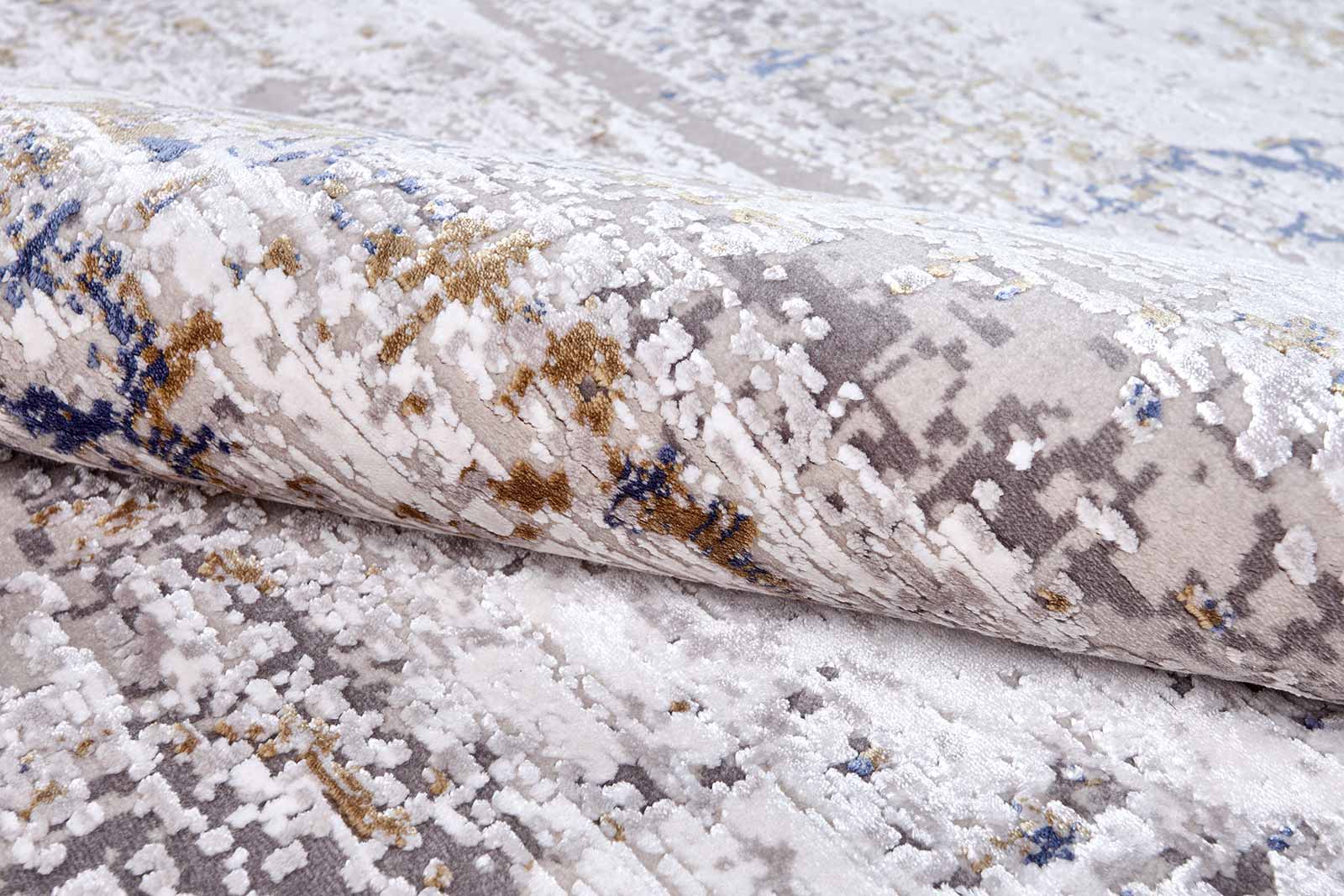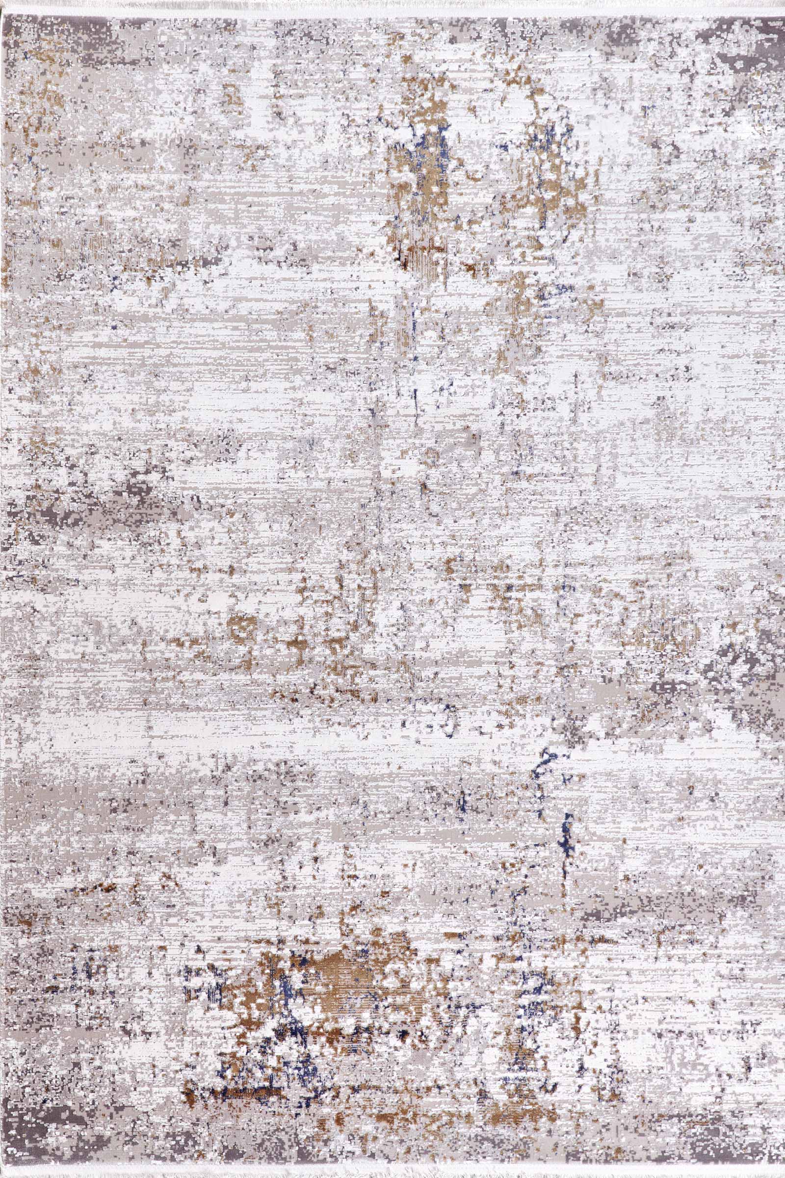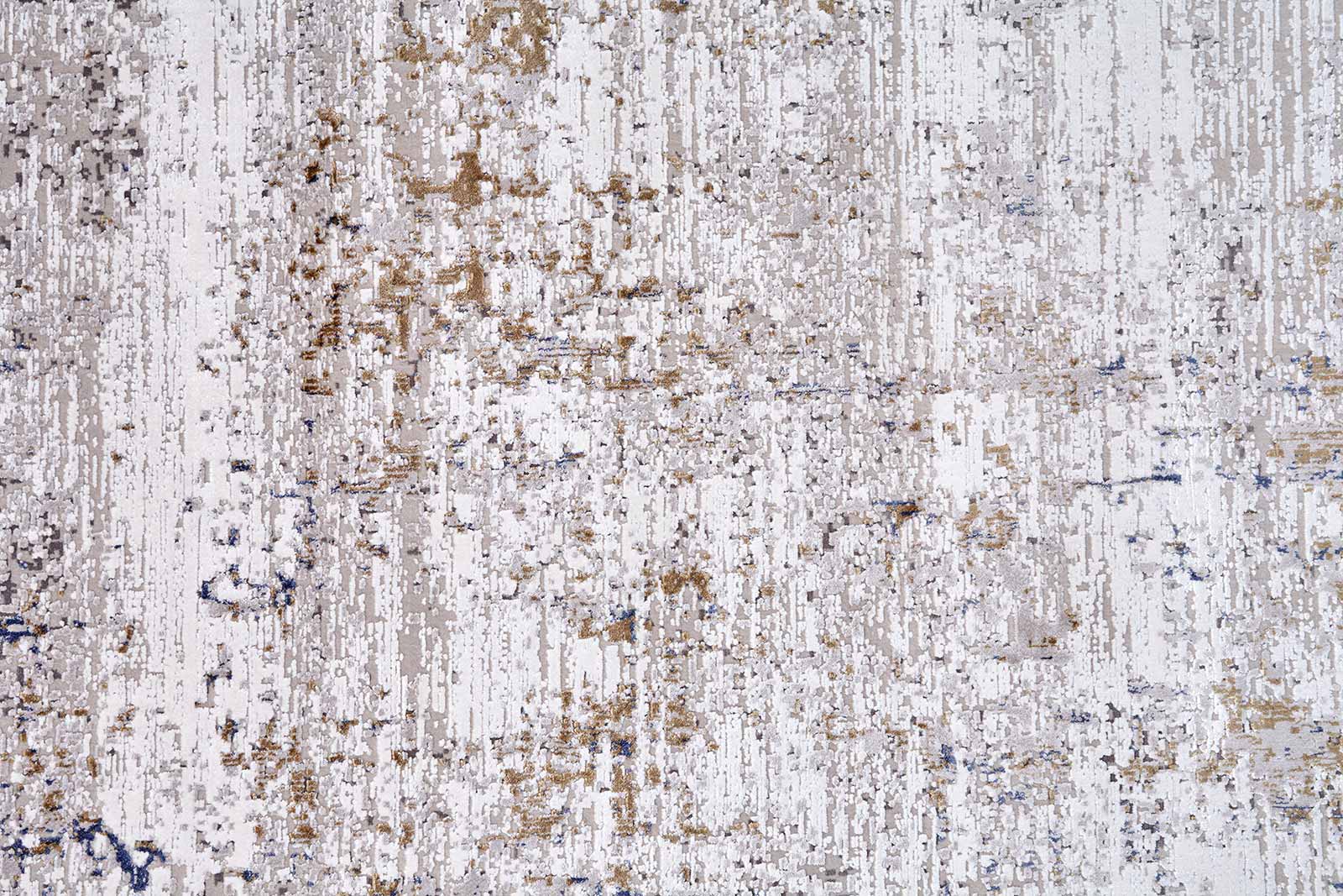 Ковёр с бежевой основой и тонкими вкраплениями синего и коричневого напоминает фактуру выветренного камня или потёртой стены. Ненавязчивый рисунок создаёт атмосферу уюта и спокойствия, подчёркивая эстетику интерьера без лишней драматургии.
