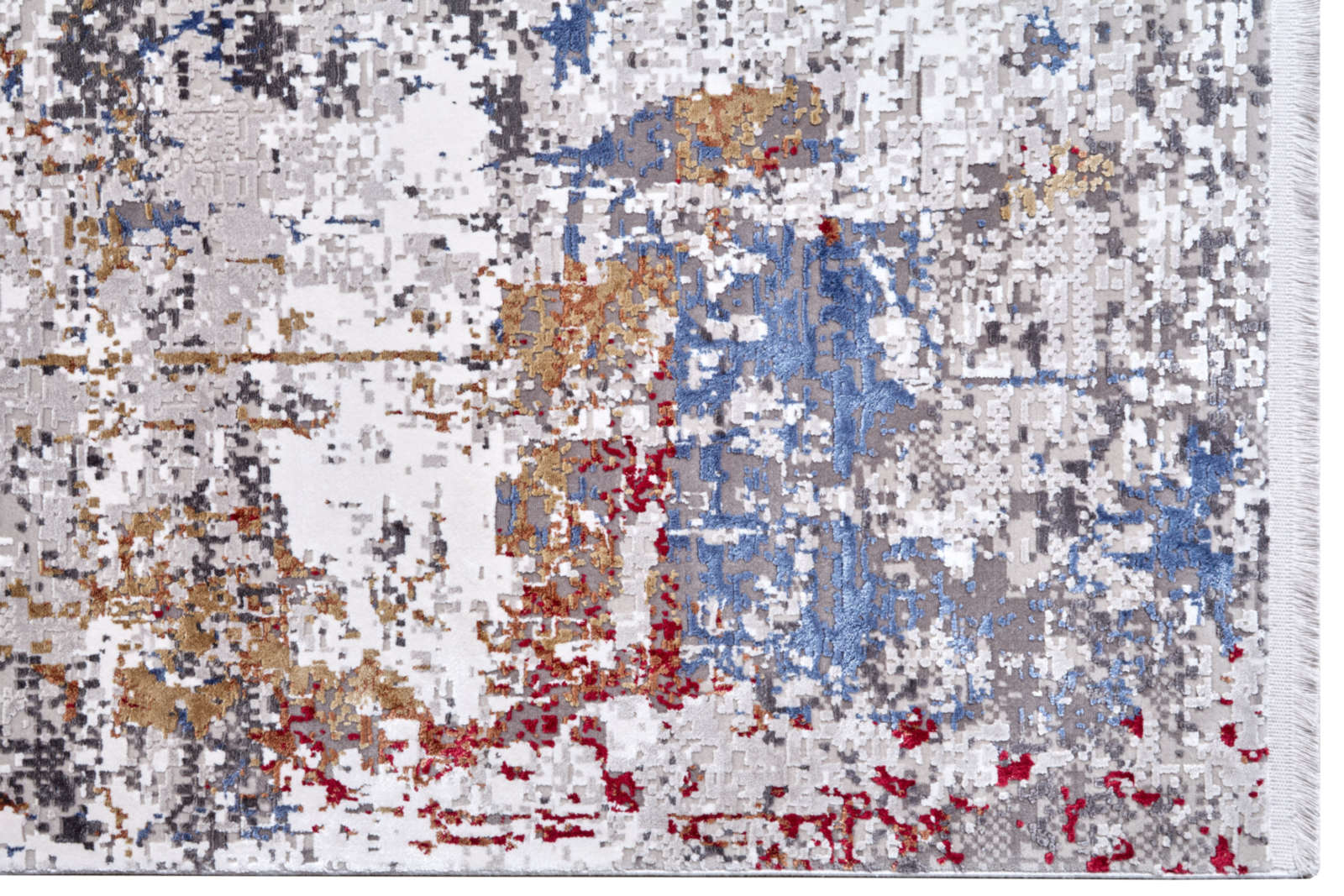 Ковёр, который напоминает полотно художника-экспрессиониста. На его поверхности разбросаны мазки серого, синего, охры и алого, будто это не ткань, а городская стена, сохранившая следы десятков дождей и закатов. Он дышит свободой, как заброшенная мастерская, где время оставило свои отметины в каждом слое краски. Абстрактный рисунок словно пульсирует, притягивая взгляд то яркими вспышками, то приглушённой тишиной серого фона. Здесь нет строгих линий, только движение, только энергия, превращающая случайность в искусство. Этот ковёр становится не просто частью интерьера, а живым фрагментом городской поэтики: он будто приносит в дом атмосферу старого квартала, где в трещинах штукатурки и неравномерных мазках скрыта своя красота. Это пространство, которое приглашает остановиться, всмотреться и ощутить гармонию.