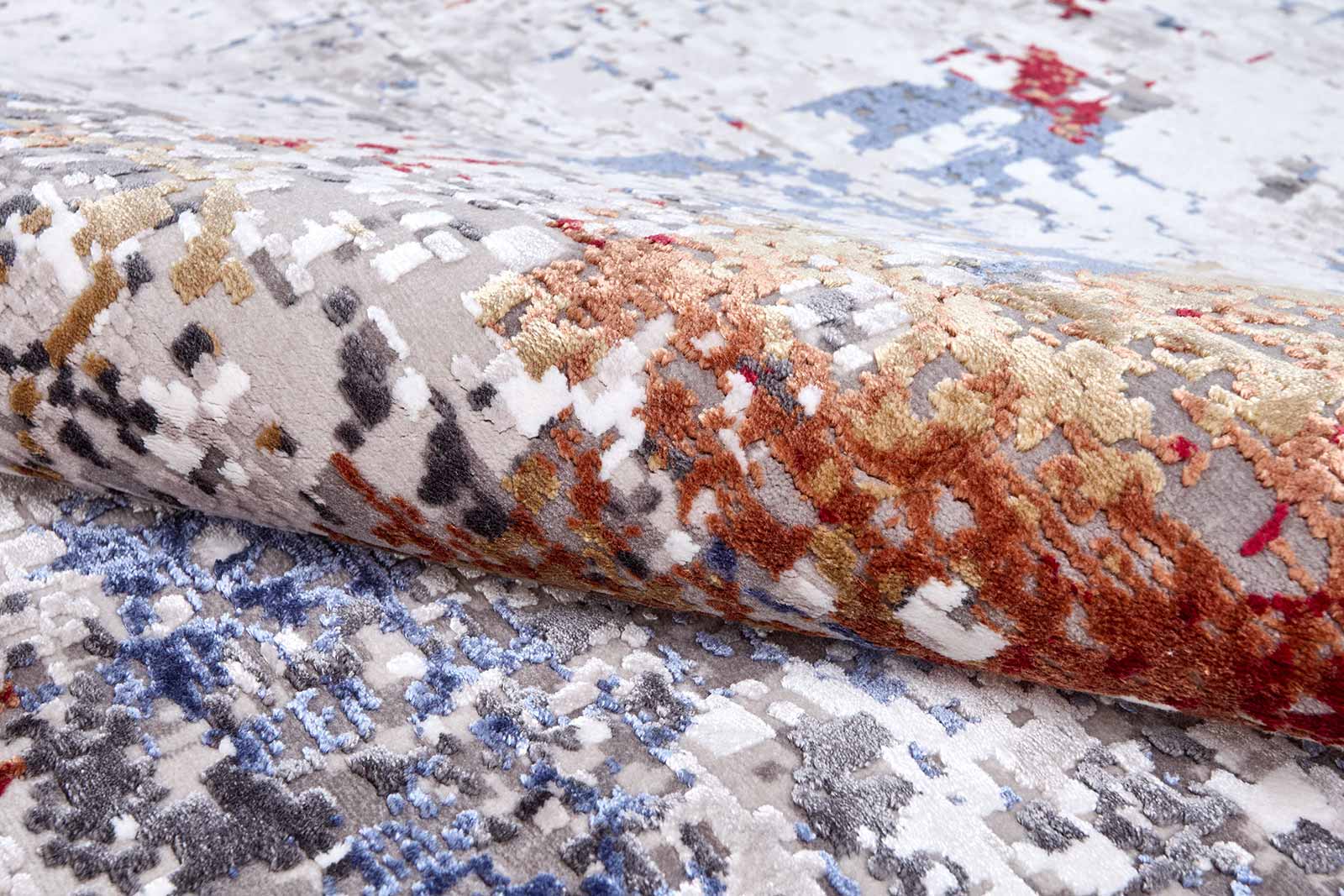 Круглый ковёр с абстрактным рисунком в серо-синей гамме дополнен мягкими коричневыми мазками, которые придают композиции выразительность и глубину. Напоминает живописное полотно — тонкое, воздушное и запоминающееся.