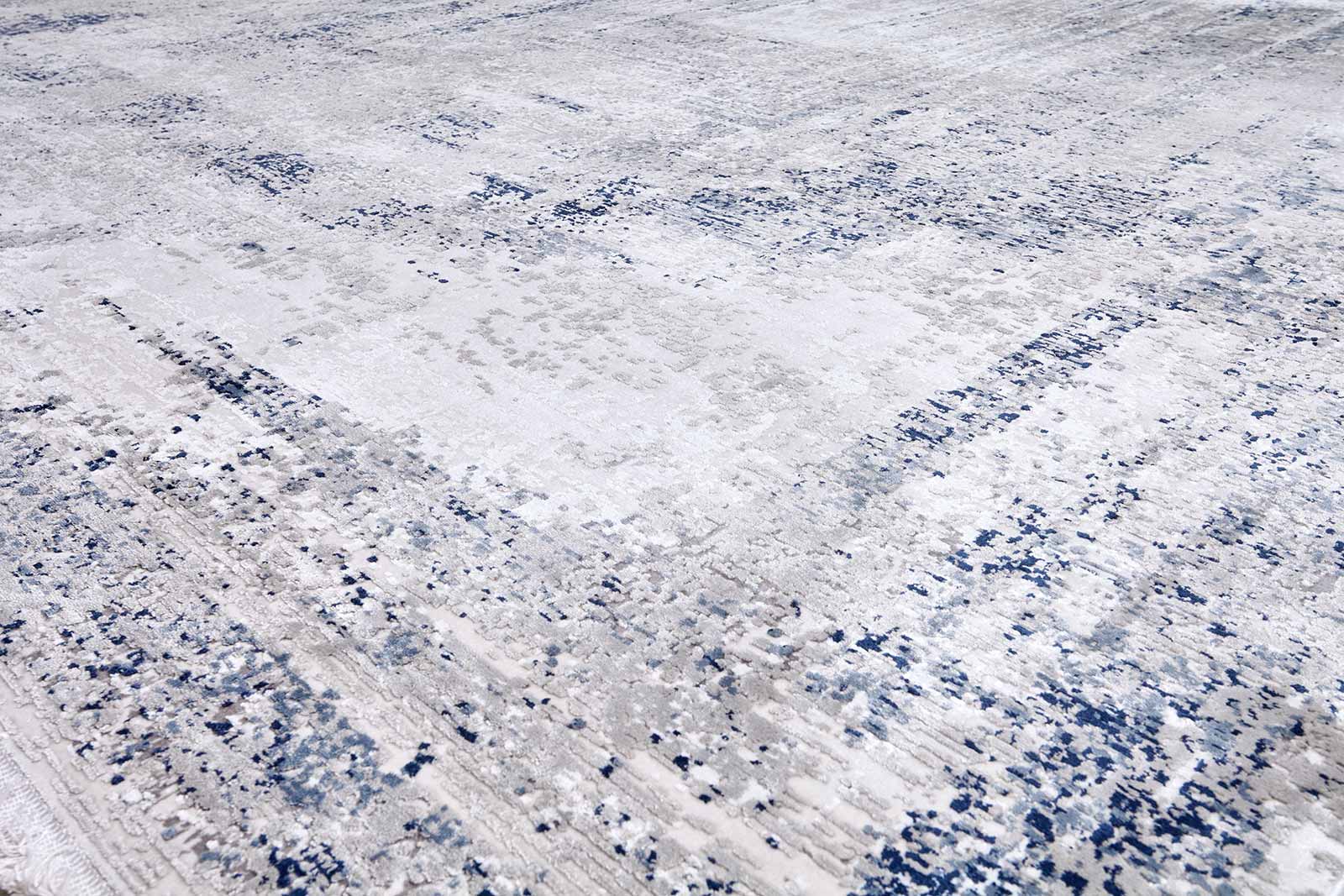 Современный ковёр с абстрактным рисунком и эффектом выцветших мазков. Лёгкий концентрический узор добавляет глубины и ритма, делая композицию визуально сложнее. Нейтральная палитра оттенков серого, синего и голубого делает этот ковёр универсальным решением для интерьеров в стиле минимализм, неоклассика или сканди.