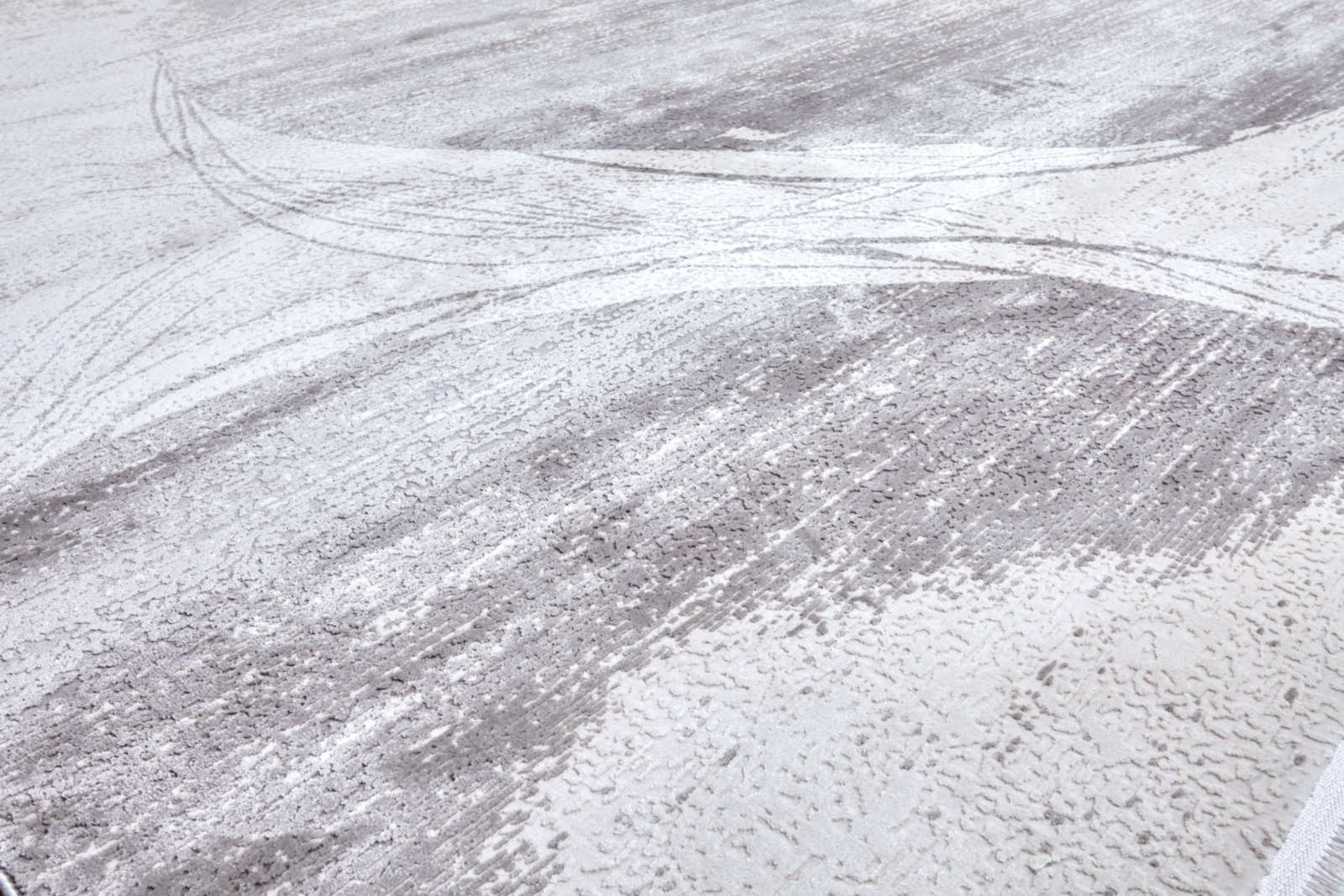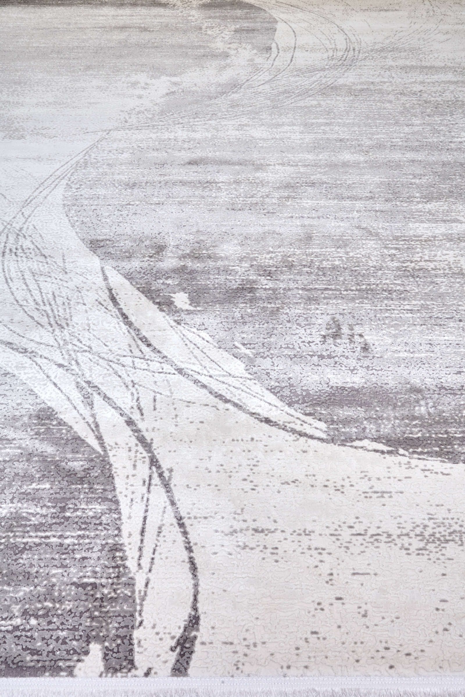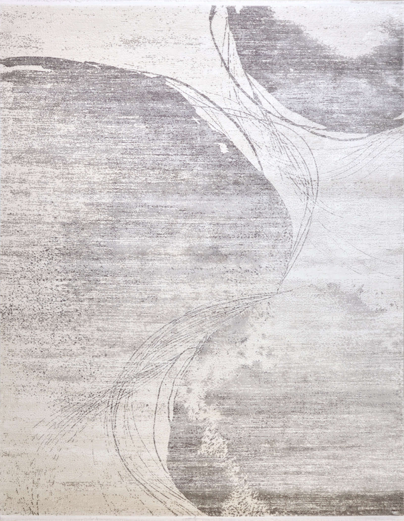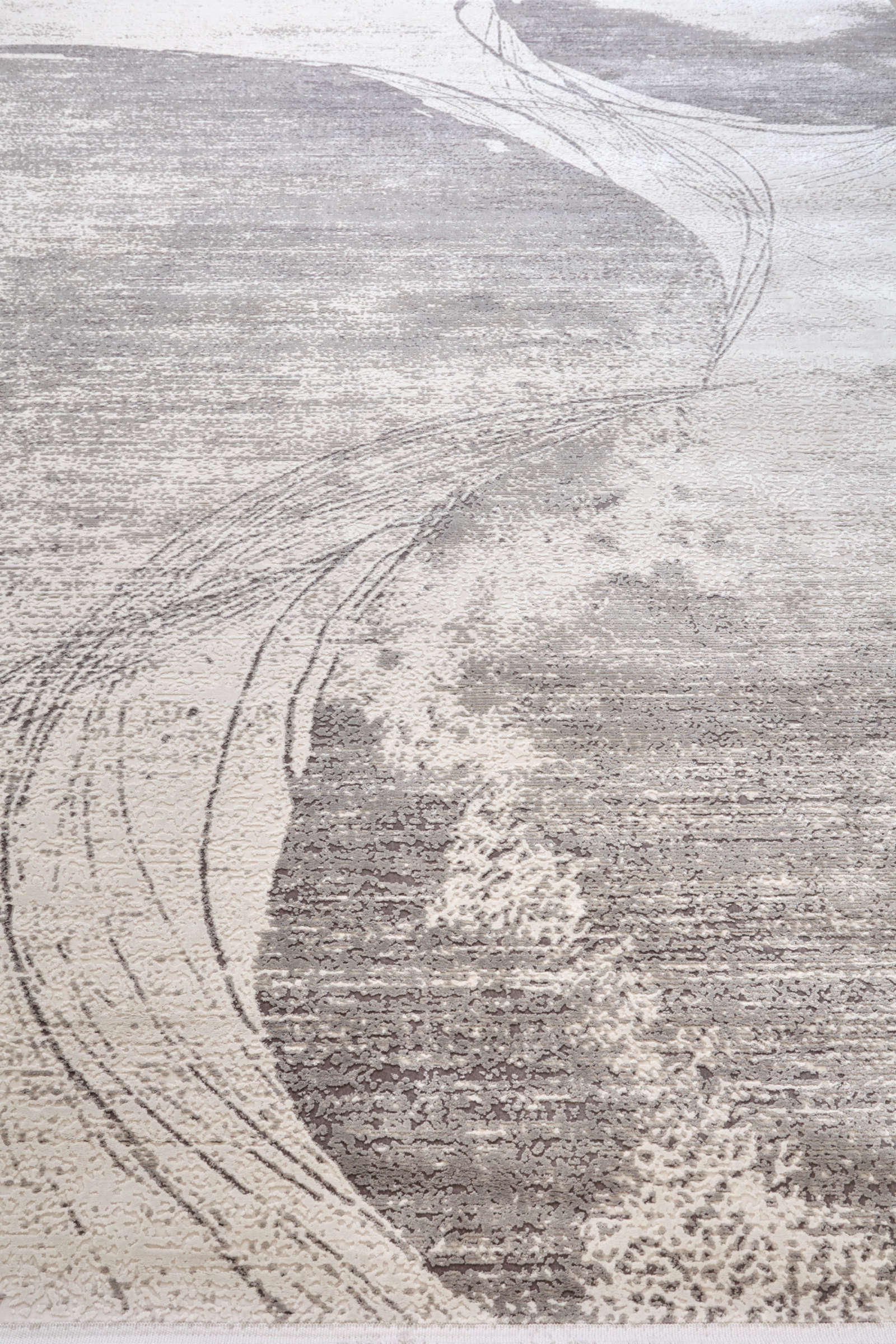 Современный ковёр с абстрактным рисунком и эффектом выцветших мазков. Нейтральная палитра оттенков серого, песочного и молочного делает его универсальным решением для интерьера в стиле минимализм, неоклассика или сканди.