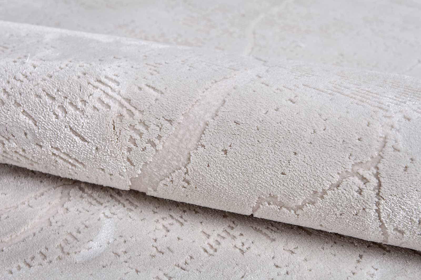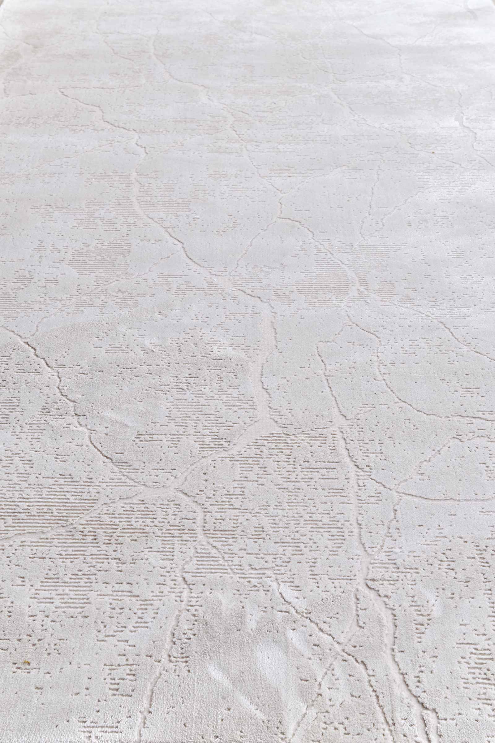 Элегантный ковёр с тонкой текстурой и едва уловимым мраморным рисунком. Светлая палитра придаёт интерьеру ощущение простора и света, а деликатный блеск — нотку утончённости. Идеальный выбор для минималистичных и современных пространств.
