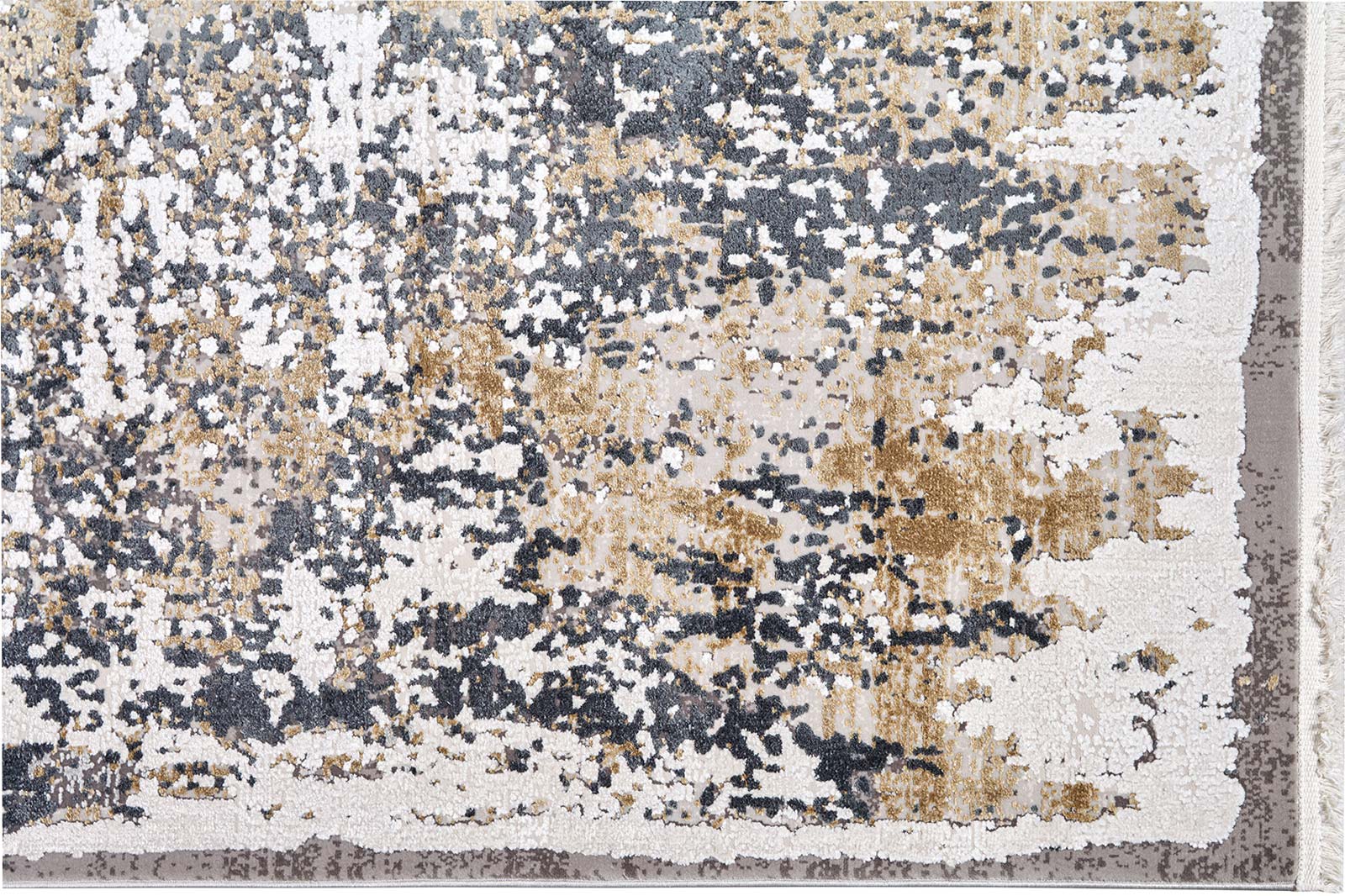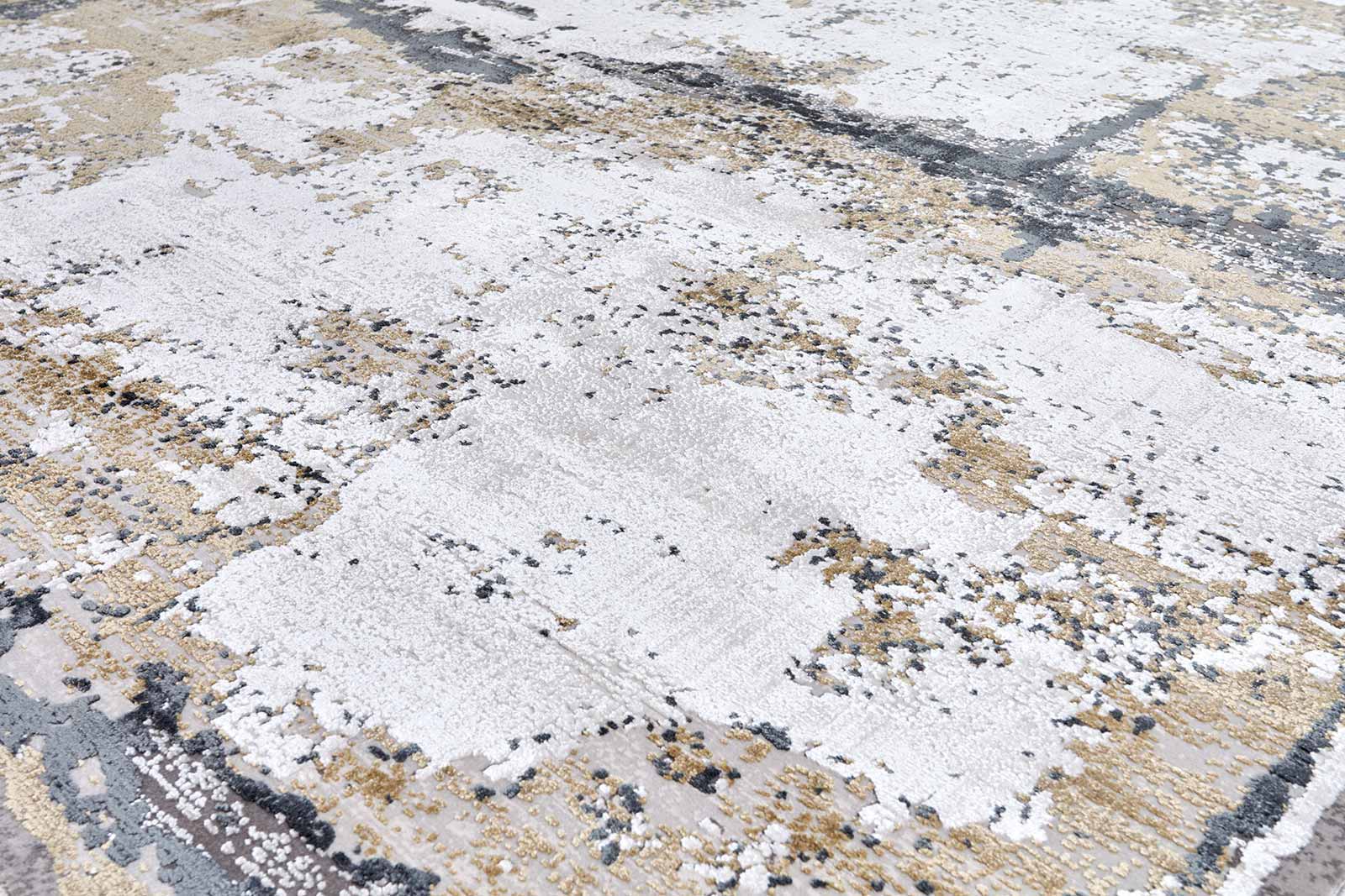 Абстрактный ковёр с благородной текстурой и мягким блеском. Серые и бежевые мазки создают эффект лёгкого движения, напоминая живопись на холсте. Современно, сдержанно, универсально — идеален для частного или общего пространства.
