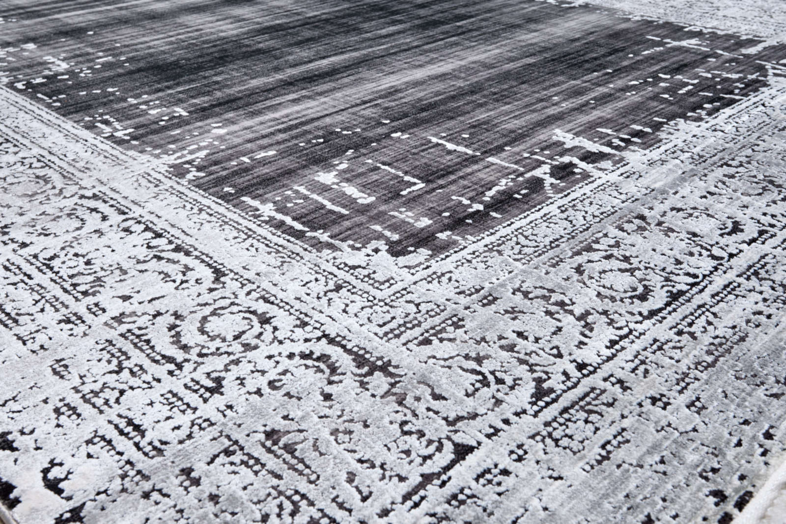 Темно-серый, почти чёрный ковёр с абстрактным рисунком — как мокрый асфальт после дождя. Он дерзкий, брутальный и притягательный. Этот дизайнерский турецкий ковёр станет акцентом в лофтовом интерьере или стильной современной квартире.