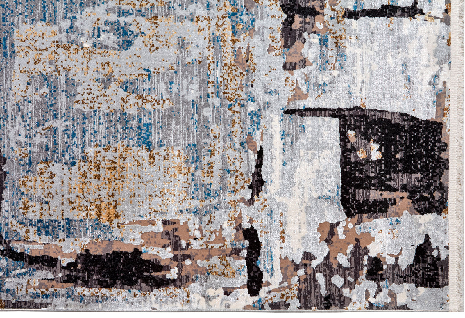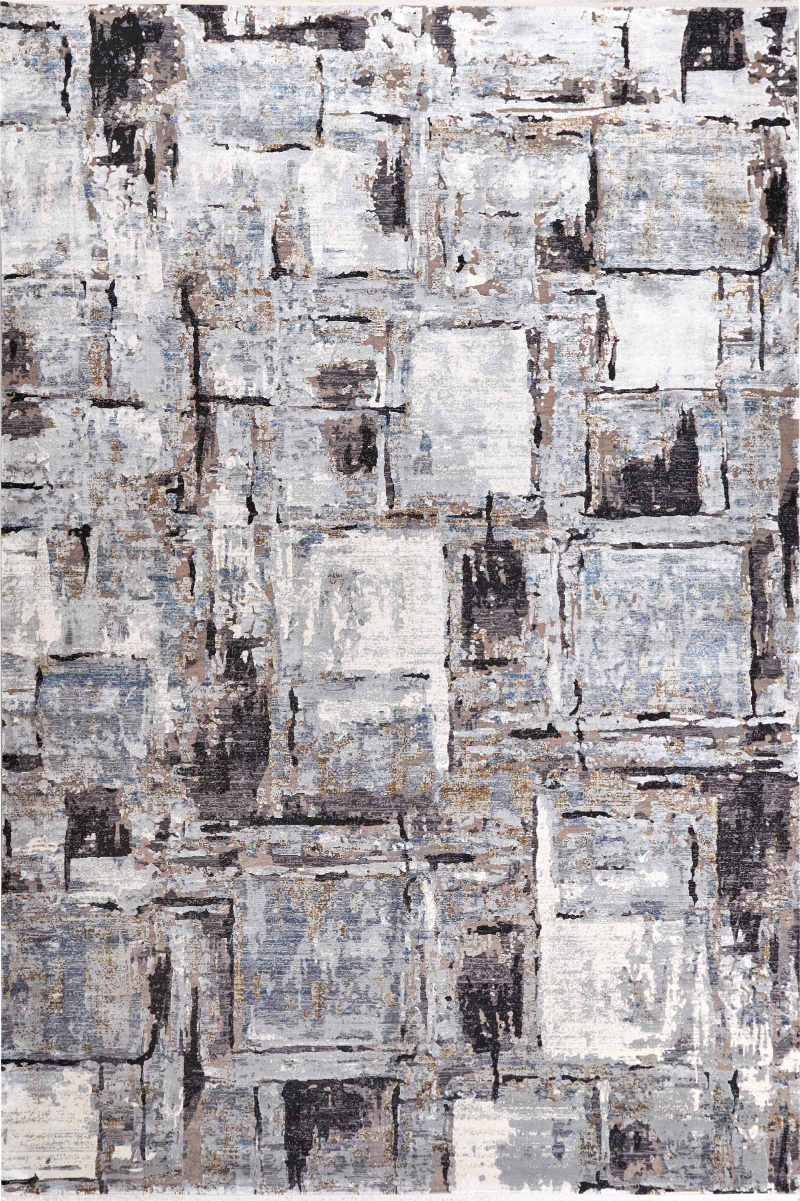 Современный ковёр с эффектом абстрактной архитектуры. Графичная мозаика из серого, чёрного и песочного оттенков создаёт ощущение глубины и структуры. Стильно, выразительно, с характером — такой акцент подчеркнёт интерьер в стиле лофт, минимализм или современная классика.