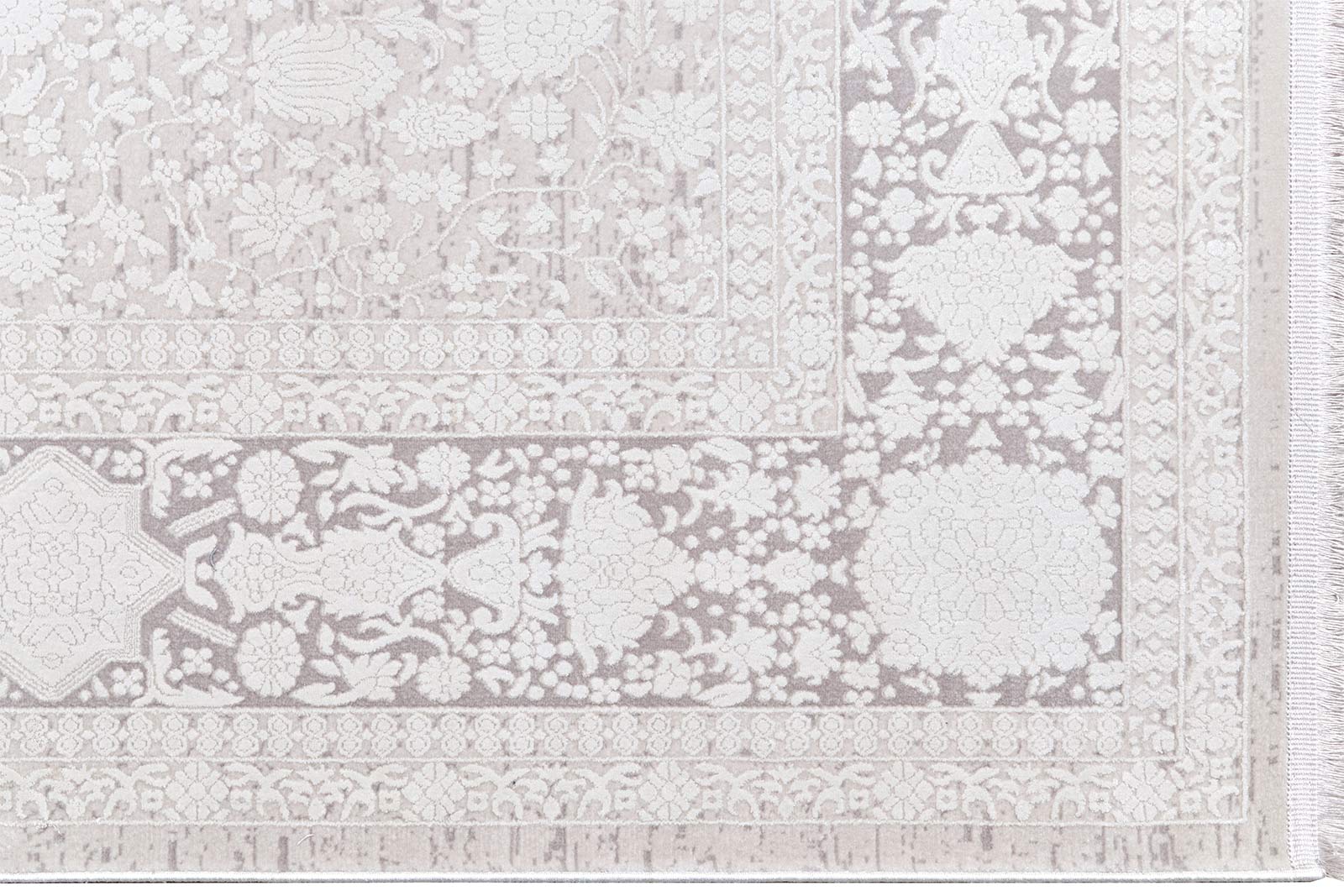 Винтажный ковёр жемчужно-серого цвета с едва уловимым бежевым тоном. Лёгкий узор словно проступает сквозь время, делая интерьер мягче и светлее. Универсальное решение для тех, кто ценит сдержанную элегантность.