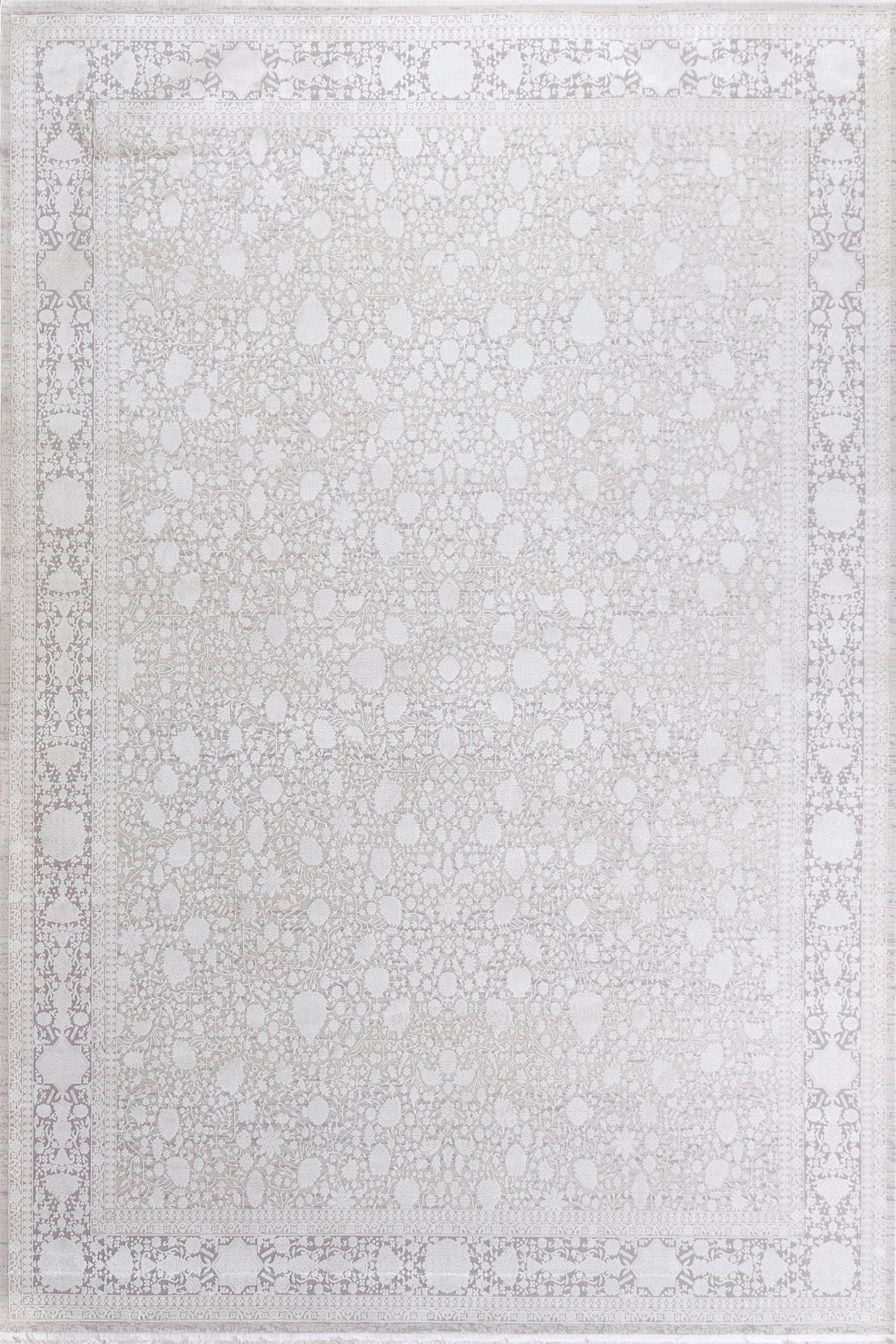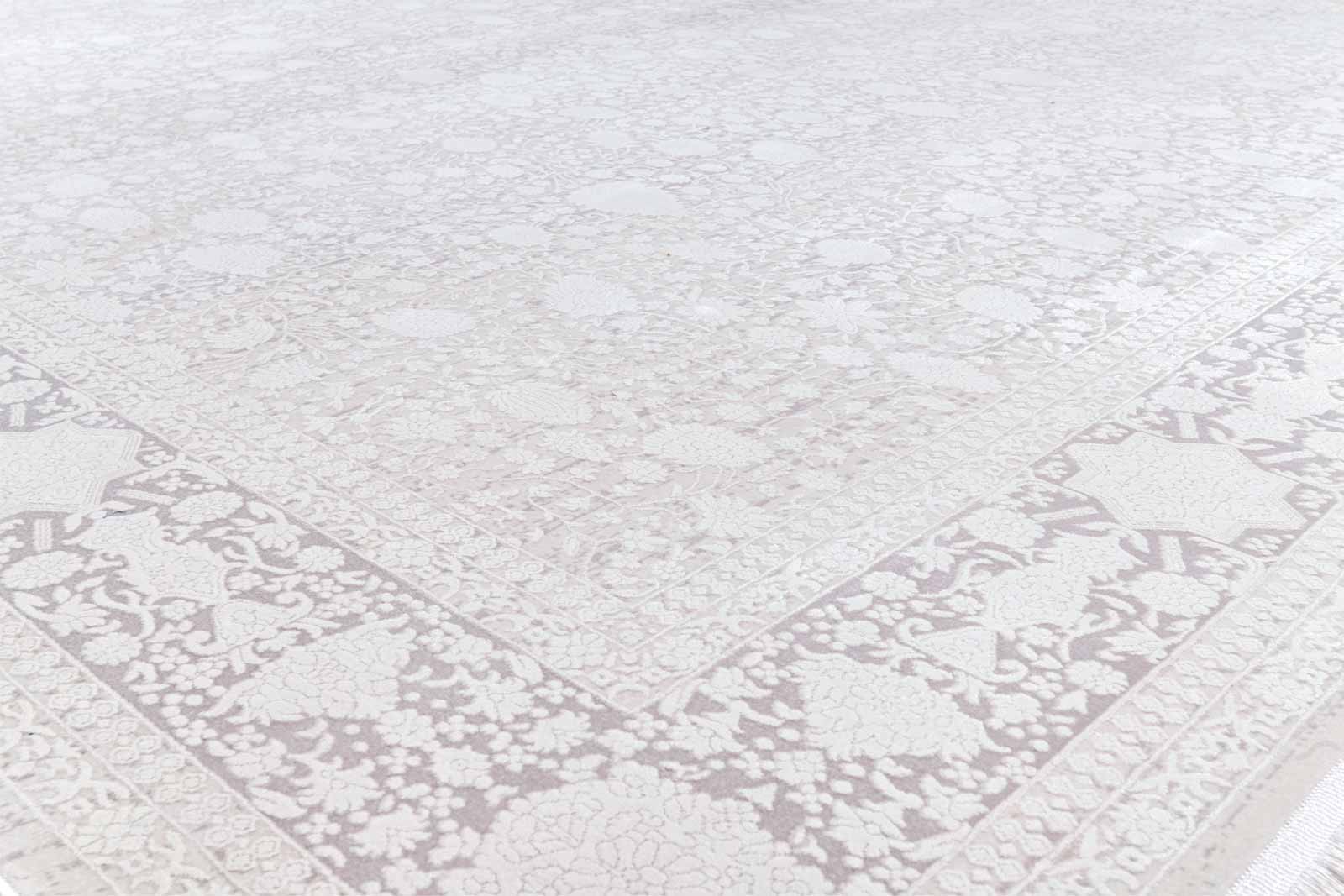 Этот ковёр — как воспоминание, выцветшее от времени, но оттого ещё более трогательное. Его нежный жемчужно-серый фон дополнен тончайшим орнаментом в бежевой гамме, который будто проступает из глубины. Рисунок деликатный, приглушённый — он не доминирует, а мягко подчеркивает атмосферу уюта и благородной сдержанности. Такой ковёр легко впишется в светлый интерьер в стиле неоклассика, джапанди, минимализм или винтаж. Он объединит пространство, добавив текстуру и воздушность. Отличный выбор для гостиных, спален и камерных зон отдыха — помещений, в которых важна светлая, тёплая, сбалансированная атмосфера.
