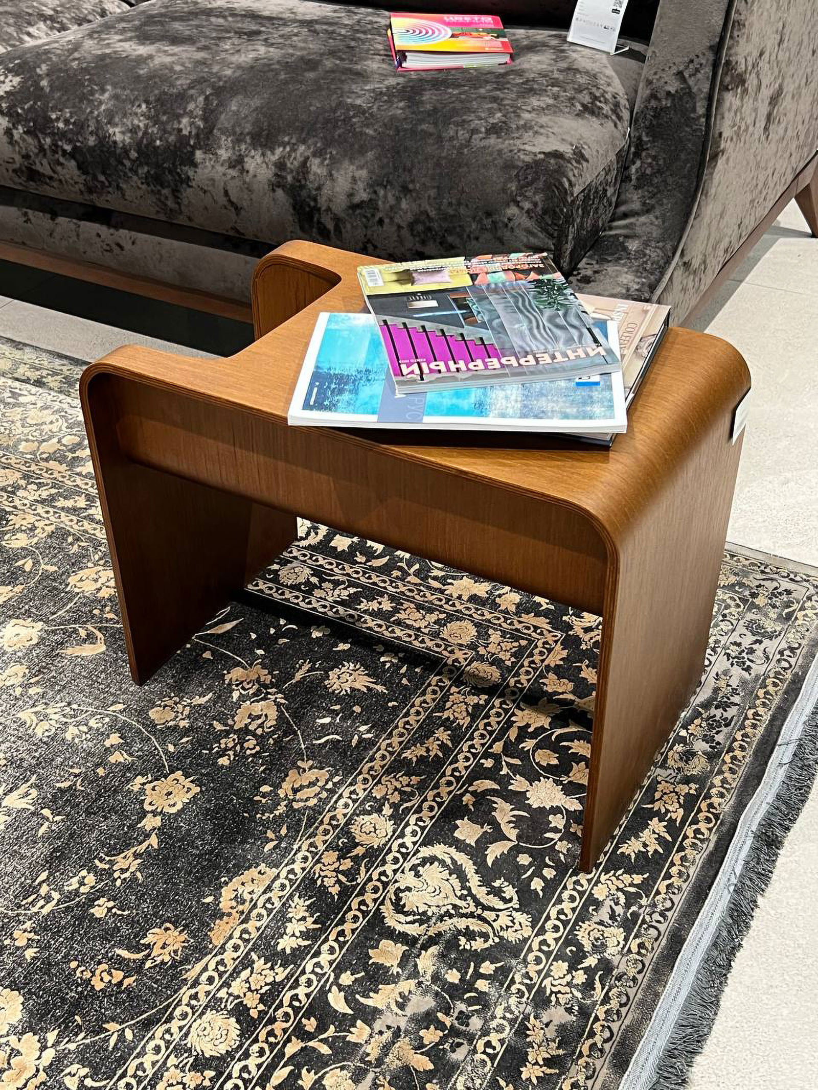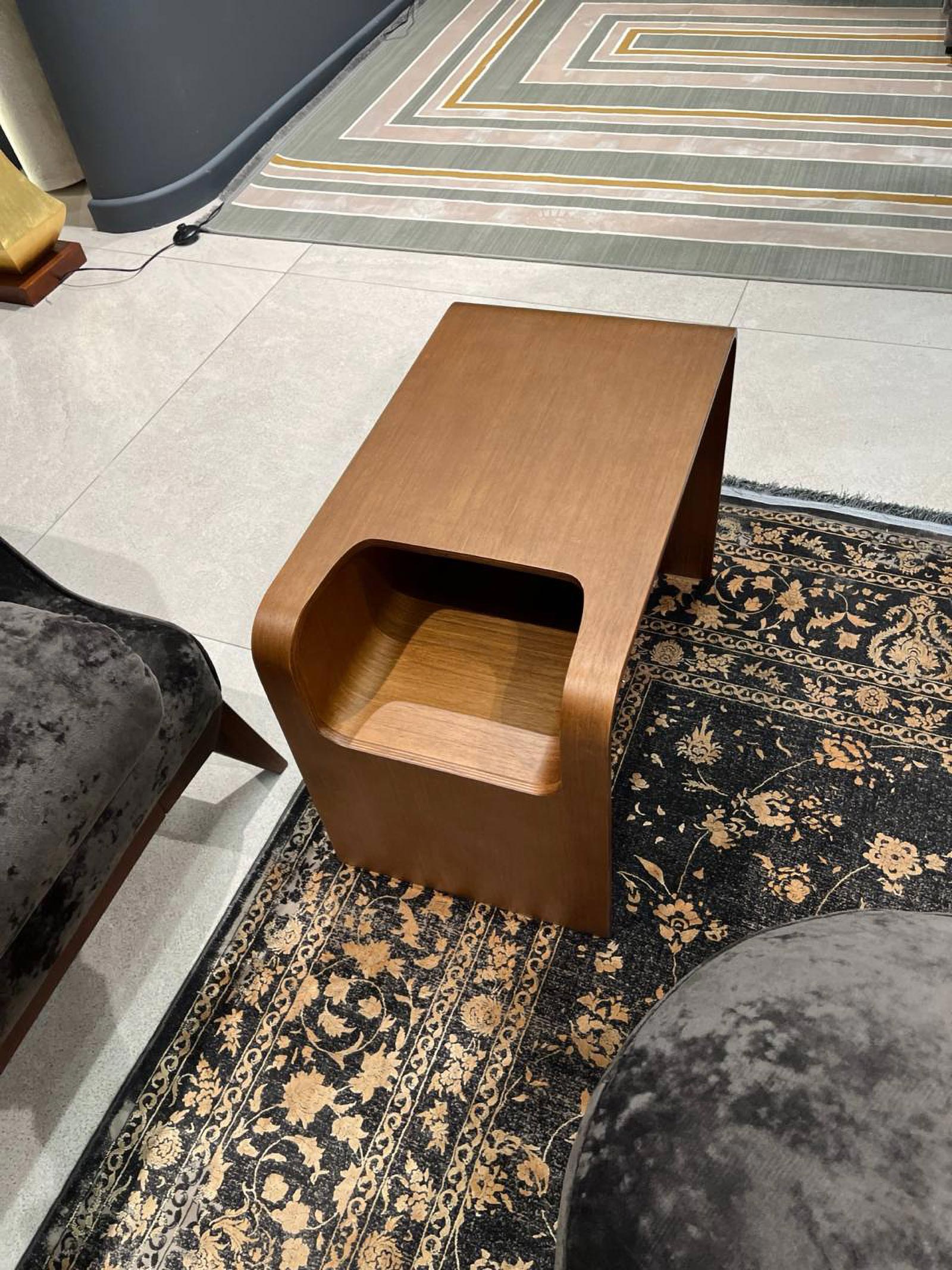 Угловой столик с лаконичным силуэтом и плавными изгибами станет функциональным акцентом в современном интерьере. Тёплый оттенок древесины и мягкие линии создают ощущение уюта и гармонии, а продуманная форма позволяет использовать его и как подставку, и как мини-стол для чтения или кофе.