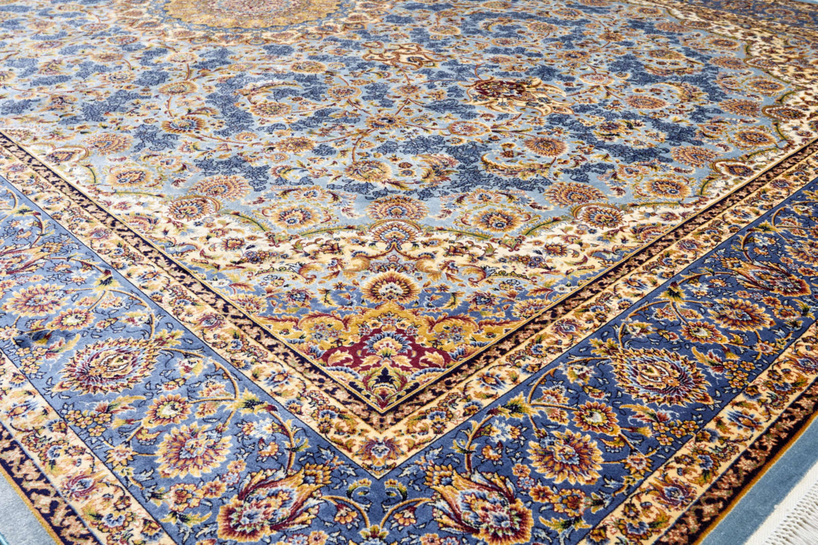 Овальный медальон в центре будто пульсирует мягким светом — в нём сосредоточена энергия и покой. Этот ковёр украсит собой классический или эклектичный интерьер, добавив в него ощущение глубины, истории и восточного тепла. Он задаст ритм и создаст атмосферу утончённой роскоши древней Персии.