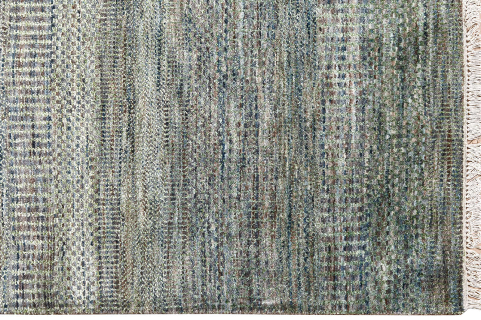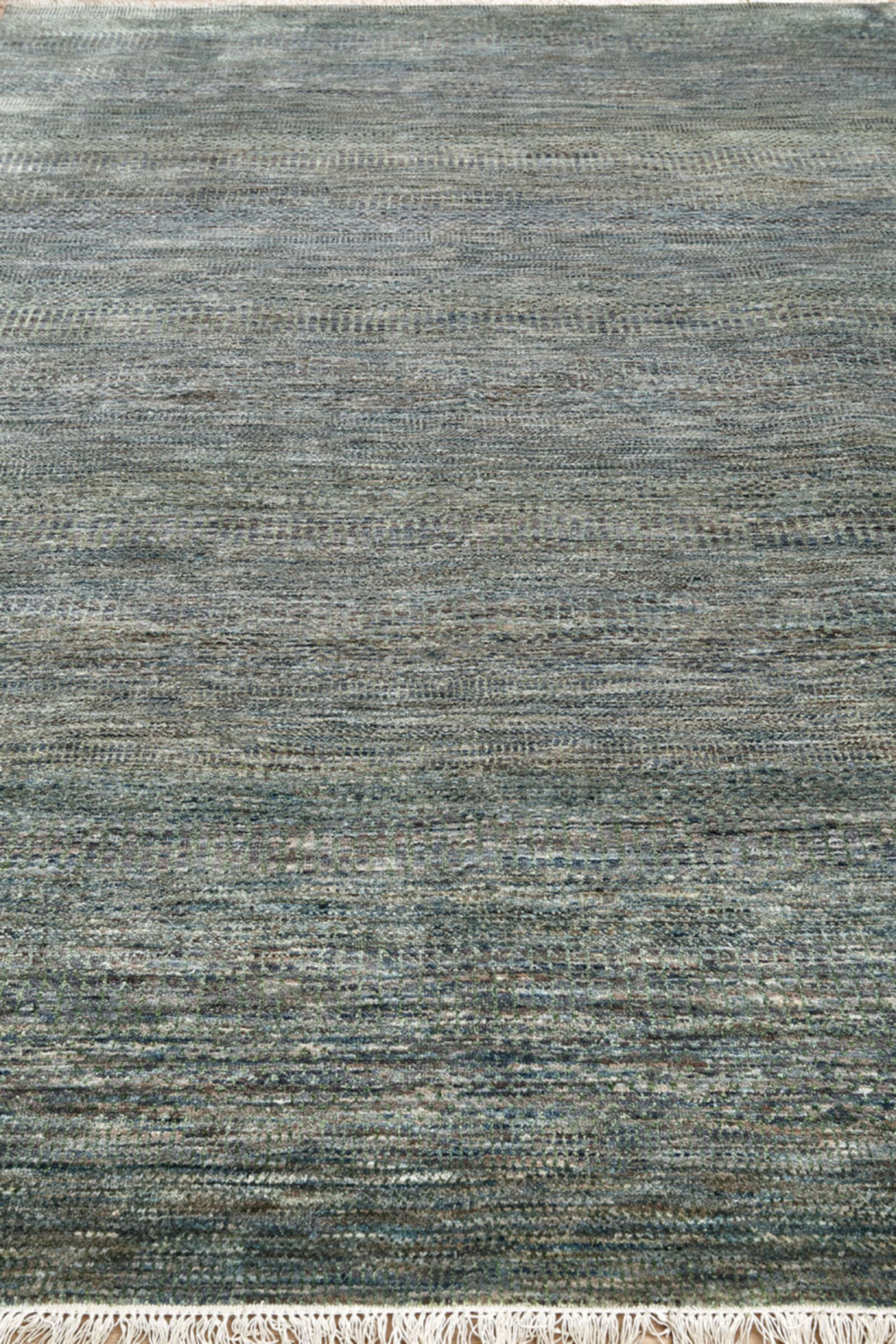 Его поверхность словно соткана из множества ритмов — в мягких серых оттенках угадываются тонкие горизонтальные линии, напоминающие тканое полотно или древнюю рукопись. В этой фактуре есть особая глубина: она одновременно проста и наполнена движением, словно застывшее дыхание времени. Такой ковёр создаёт в интерьере ощущение устойчивости, основательности и спокойной гармонии. Его неброская палитра легко сочетается с другими элементами пространства, будь то дерево, камень или металл. Он прекрасно подойдёт для минималистичных гостиных, строгих кабинетов или современных эклектичных интерьеров. Этот ковёр не стремится перетянуть внимание, он создаёт фон, на котором ярче зазвучат мебель и детали. Это ковёр-основа, ковёр, который делает пространство цельным.