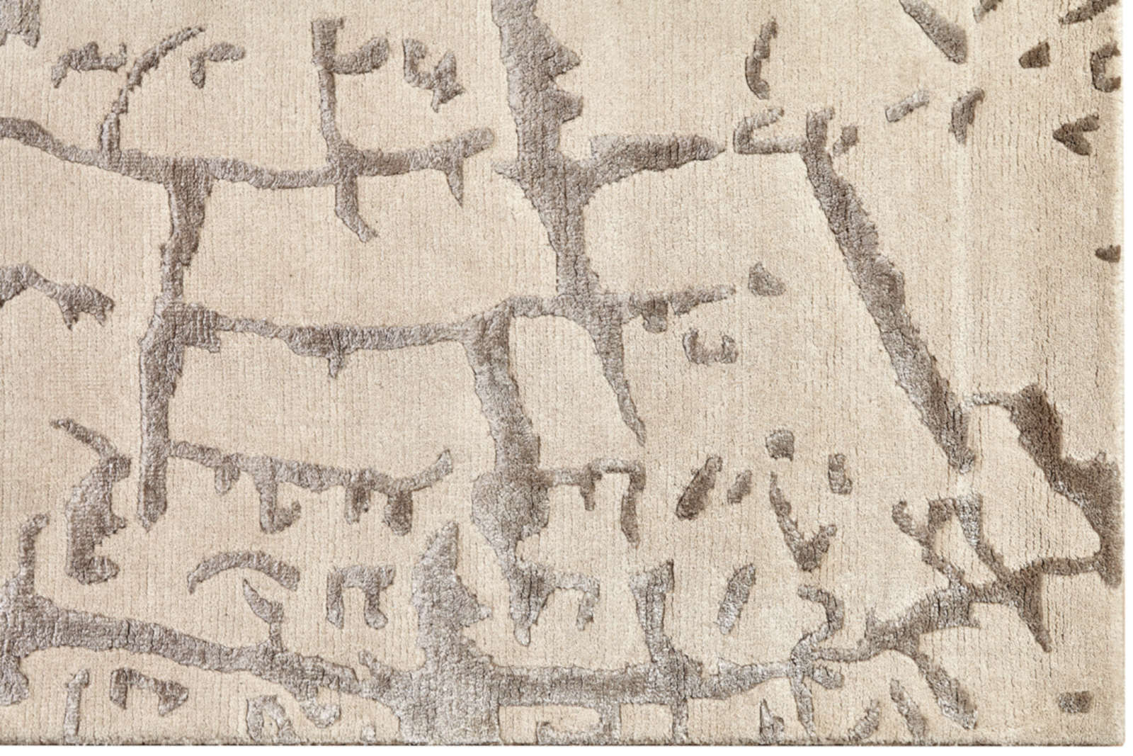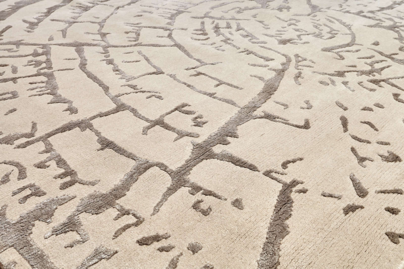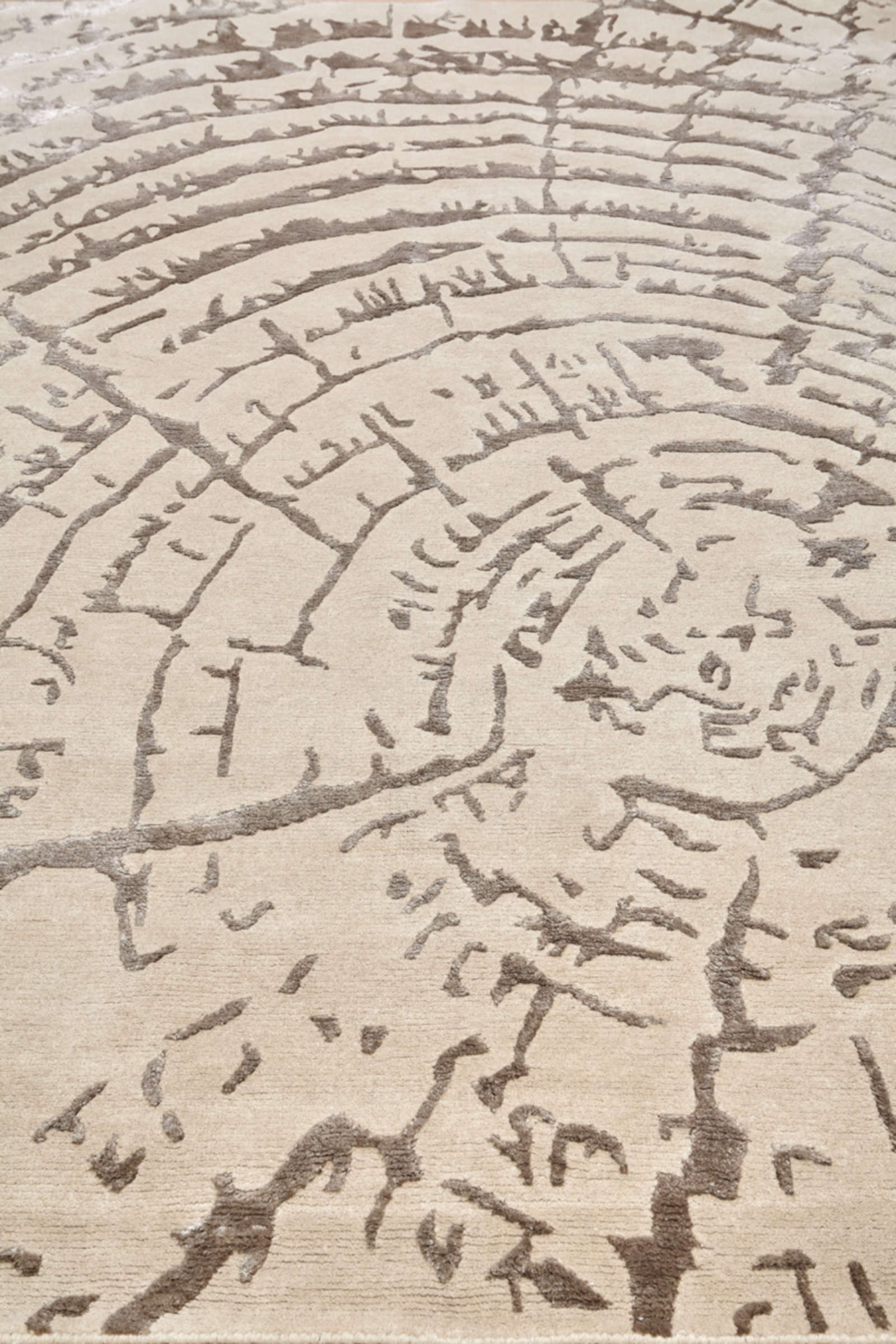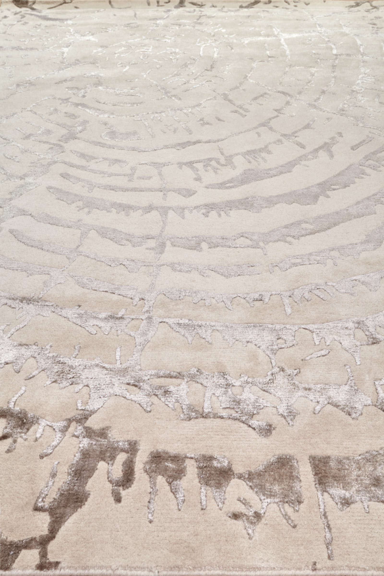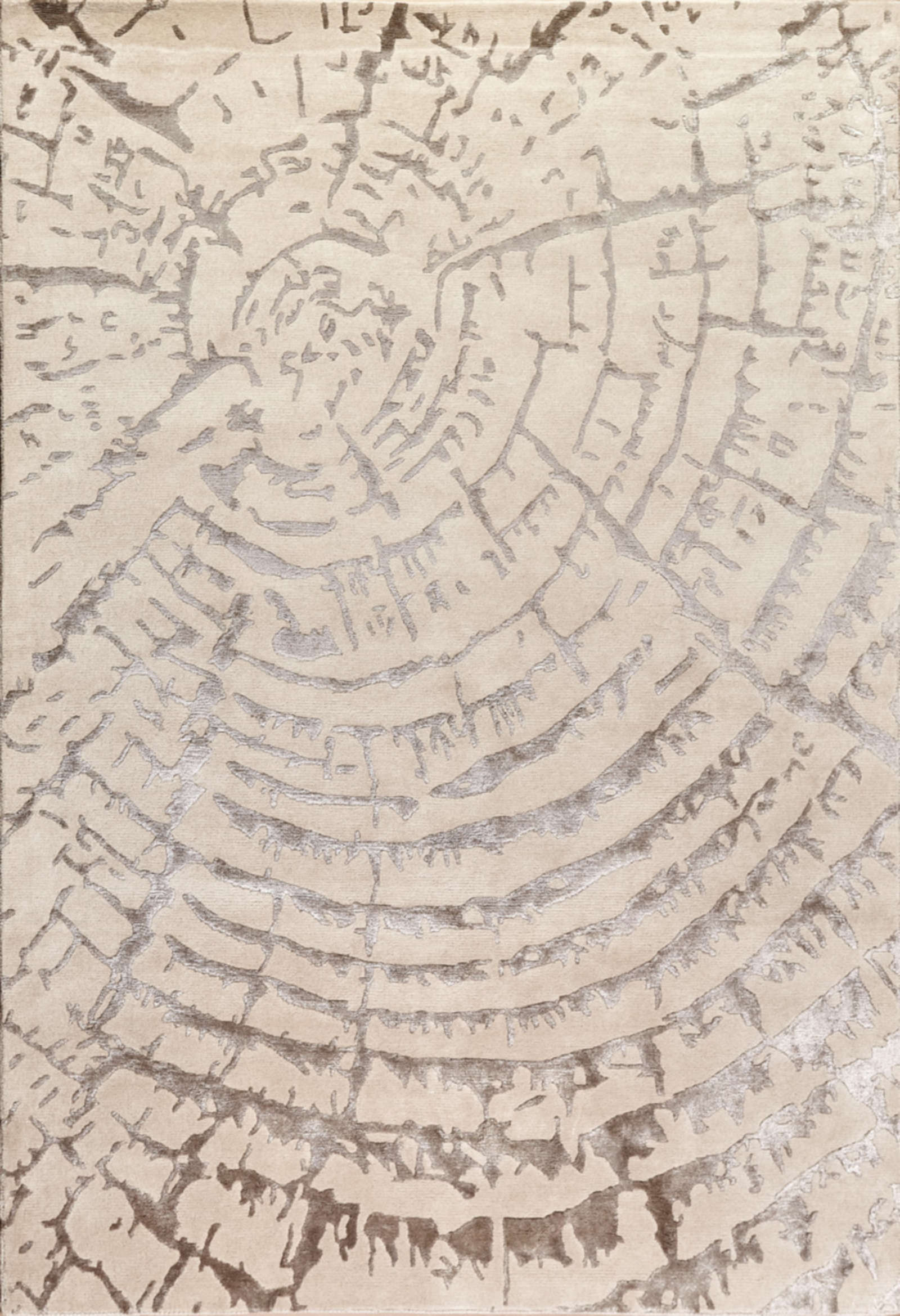 На поверхности ковра проступает рисунок, напоминающий структуру дерева: неровные линии складываются в абстрактный узор, где каждый слой символизирует прожитый опыт. Этот мотив отсылает к связи с природой и делает красоту времени частью интерьера. Бежево-серая палитра сохраняет лёгкость и универсальность: в гостиной ковёр работает как центр притяжения, в спальне создаёт ощущение уюта и спокойствия, а в кабинете помогает сосредоточиться. Особенно гармонично он сочетается с деревом, камнем и натуральными тканями, превращая дом в пространство, где можно чувствовать течение жизни и оставаться в равновесии.