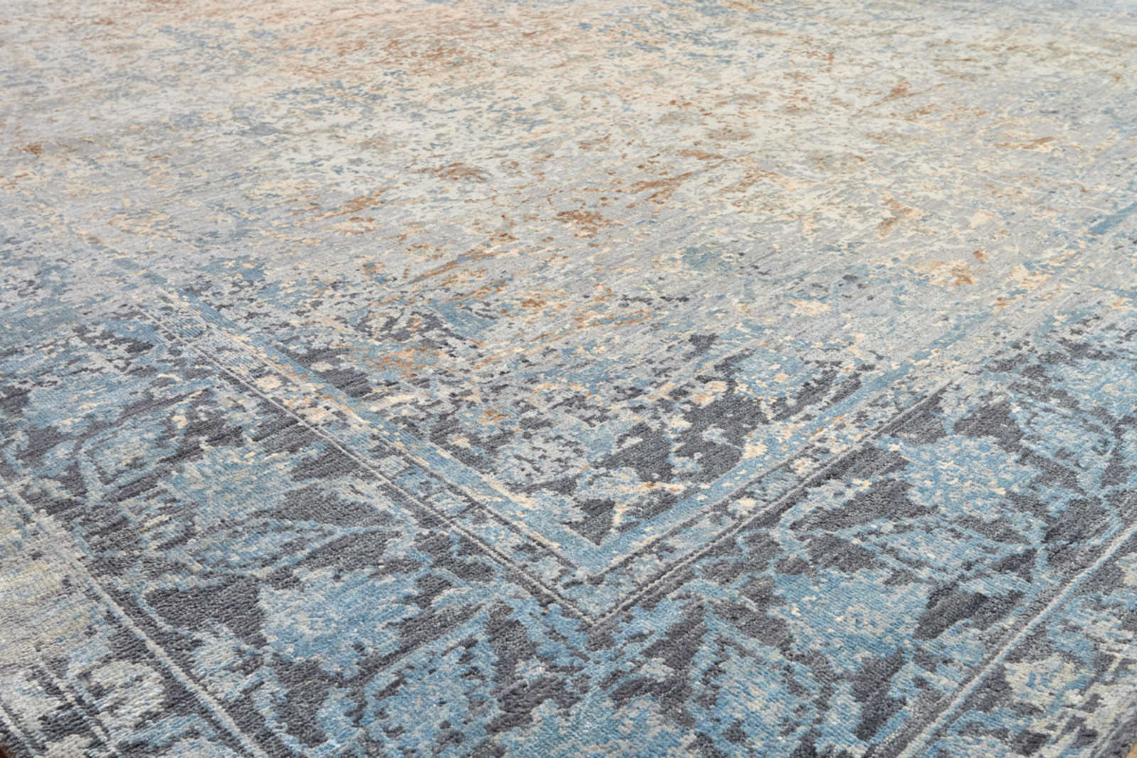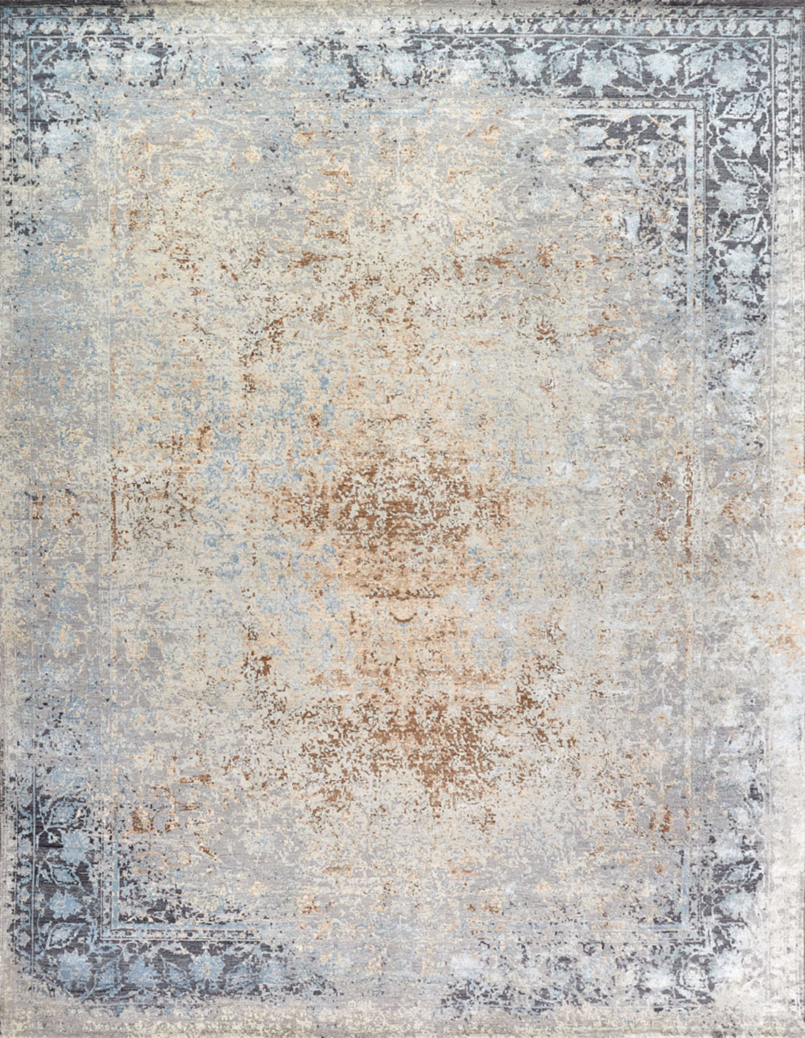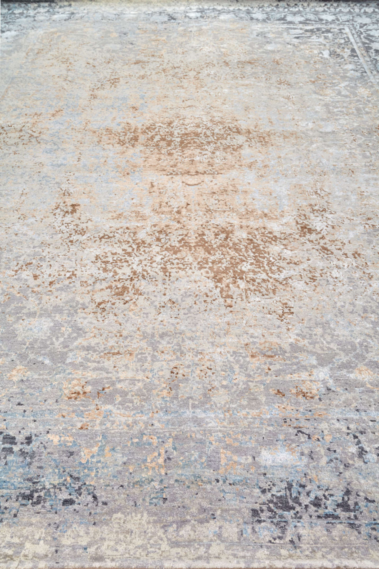 Этот ковёр напоминает таинственный древний мир, стертый временем. Его серо-бежевые переливы и расплывающийся медальон в центре создают ощущение мистического свечения. Такой ковёр добавляет интерьеру утончённости и глубины.