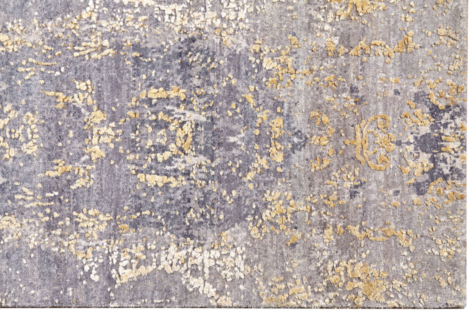 Индийский ковёр ручной работы словно старинное гобеленовое полотно. Серо-золотые переливы и винтажный узор рождают атмосферу древнего дворца. Такой ковёр придаёт интерьеру глубину, статус и мягкое сияние времени.