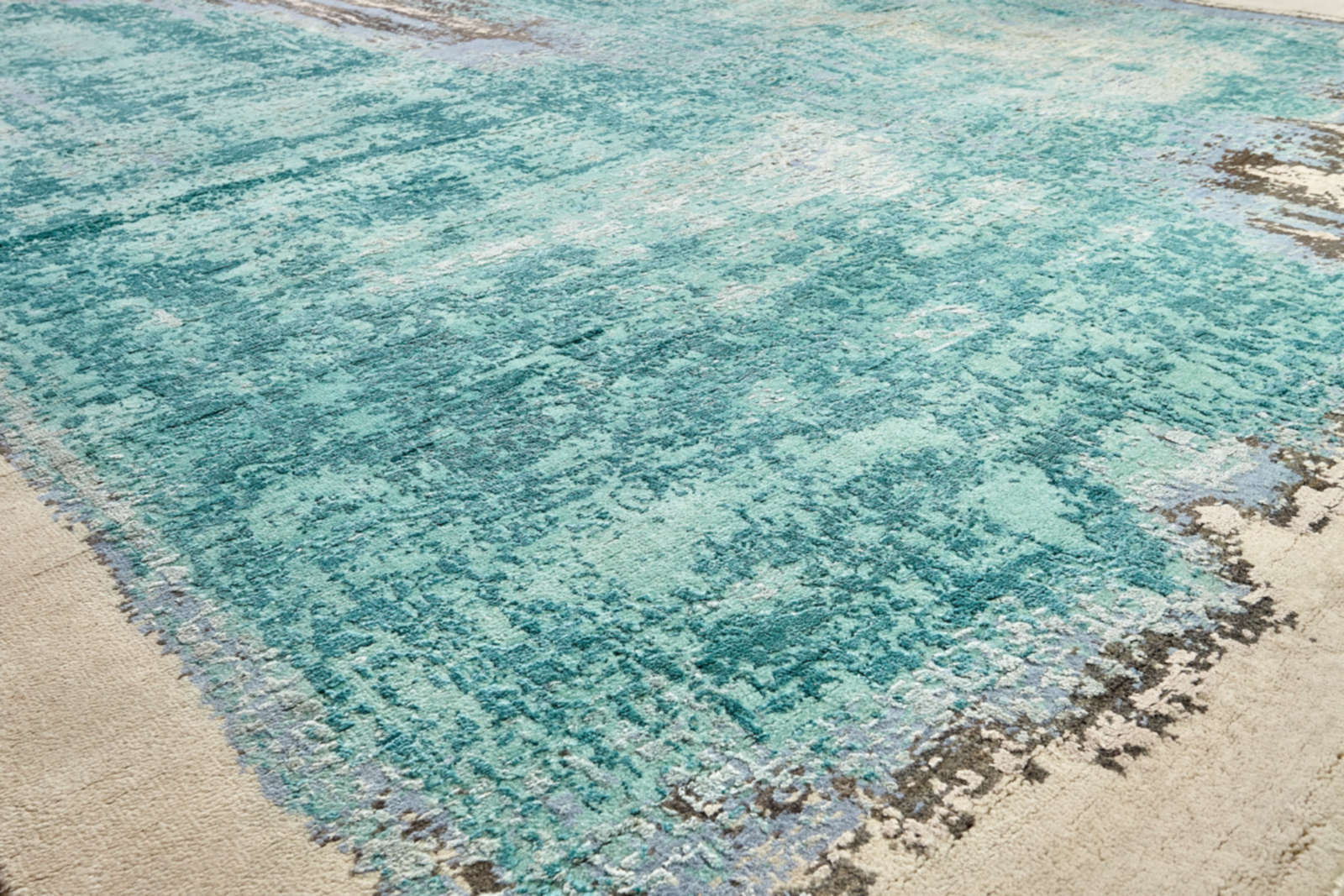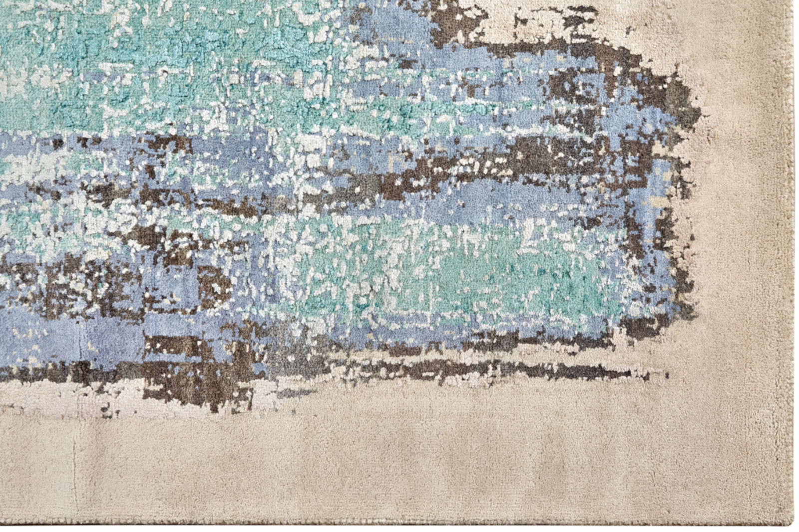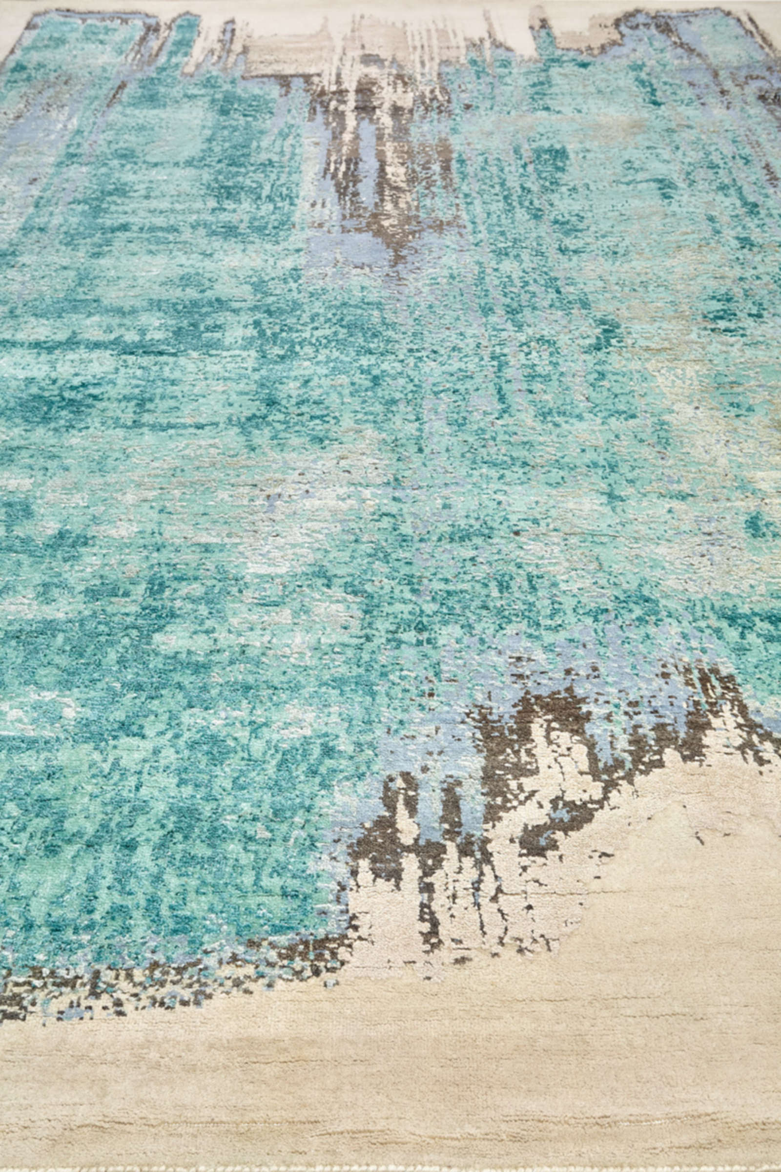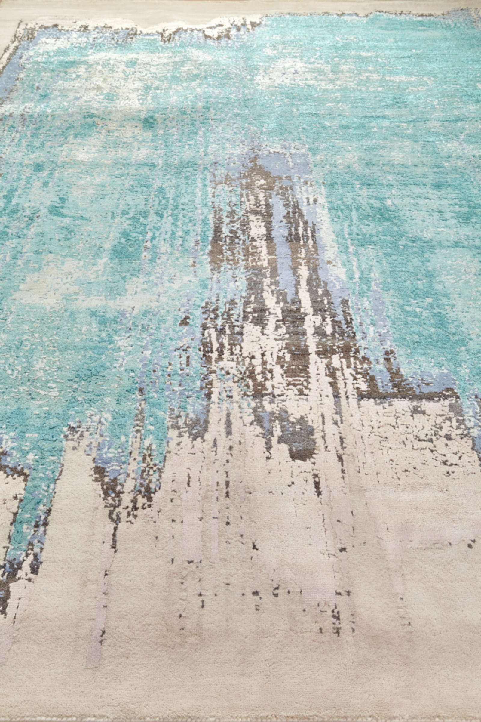 Ковёр будто вобрал в себя энергию живописи — в нём ощущается размах кисти, дыхание холста, игра света и воздуха. Он рождает ассоциации с абстрактным полотном, которое не навязывает конкретный сюжет, а открывает пространство для воображения. В нём есть ощущение свободы, лёгкой прохлады и чистоты, которые помогают наполнить интерьер свежестью и новым звучанием. Такой ковёр работает как арт-объект: он становится не просто фоном, а смысловым акцентом, вокруг которого строится настроение пространства. Он прекрасно впишется в современные и эклектичные интерьеры, подчеркнёт характер минимализма или добавит глубины в классическое решение. В гостиной создаст атмосферу динамики и лёгкости, в спальне — спокойное настроение и ощущение воздуха, в кабинете станет символом креативности и нестандартного взгляда на привычные вещи.