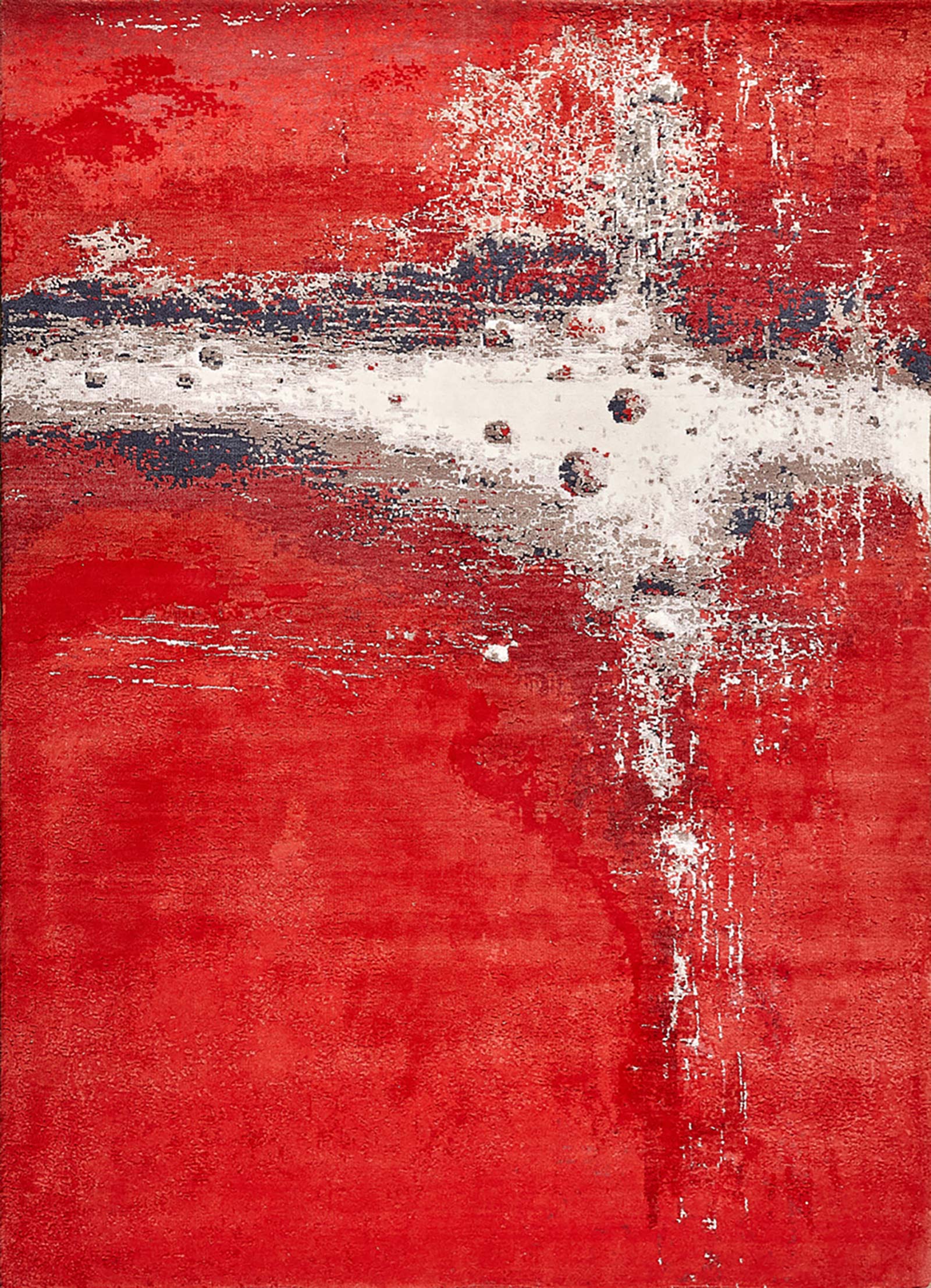 Перед вами не просто ковёр, а настоящее произведение искусства, сотканное вручную в Индии мастерами бренда VISIONER. Смелая палитра: пылающий красный, дымчатый серый и мягкий бежевый — будто отголоски огня, пепла и рассвета — складываются в полотно, которое хочется рассматривать бесконечно. Шерсть и артшёлк дарят ковру богатую текстуру и благородное свечение. Его можно вписать как в строгий монохромный интерьер, чтобы добавить драматичности, так и в эклектичную или арт-деко атмосферу — здесь он станет визуальным магнитом. Этот дизайнерский ковёр — идеальный выбор для тех, кто ищет способ подчеркнуть индивидуальность, эмоцию и вкус. Этот уверенный жест, который не оставляет равнодушным.