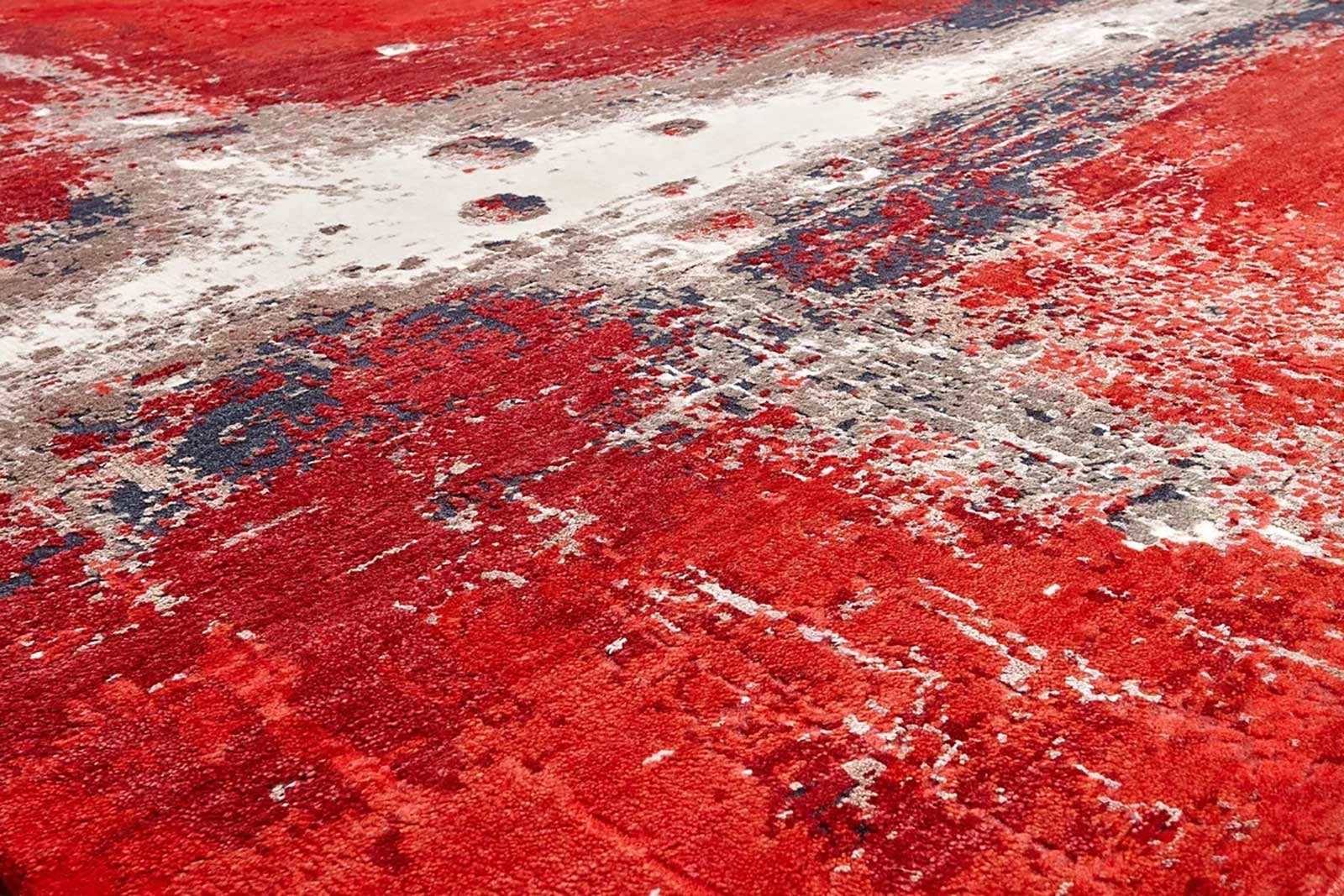 Этот абстрактный дизайнерский ковёр словно вспышка страсти на холсте: насыщенный красный, приглушённый серый и спокойный бежевый сочетаются в экспрессивной композиции. Ковёр для тех, кто не боится заявить о себе в интерьере. Эффектный, тактильный, живой.