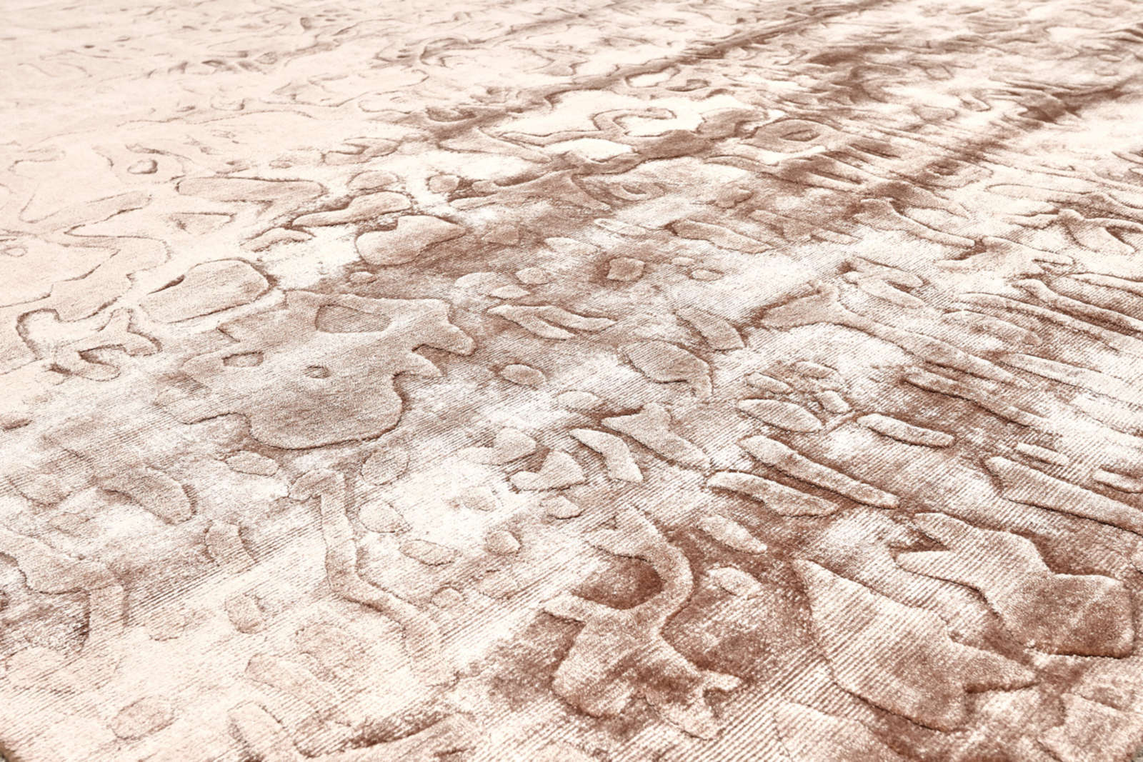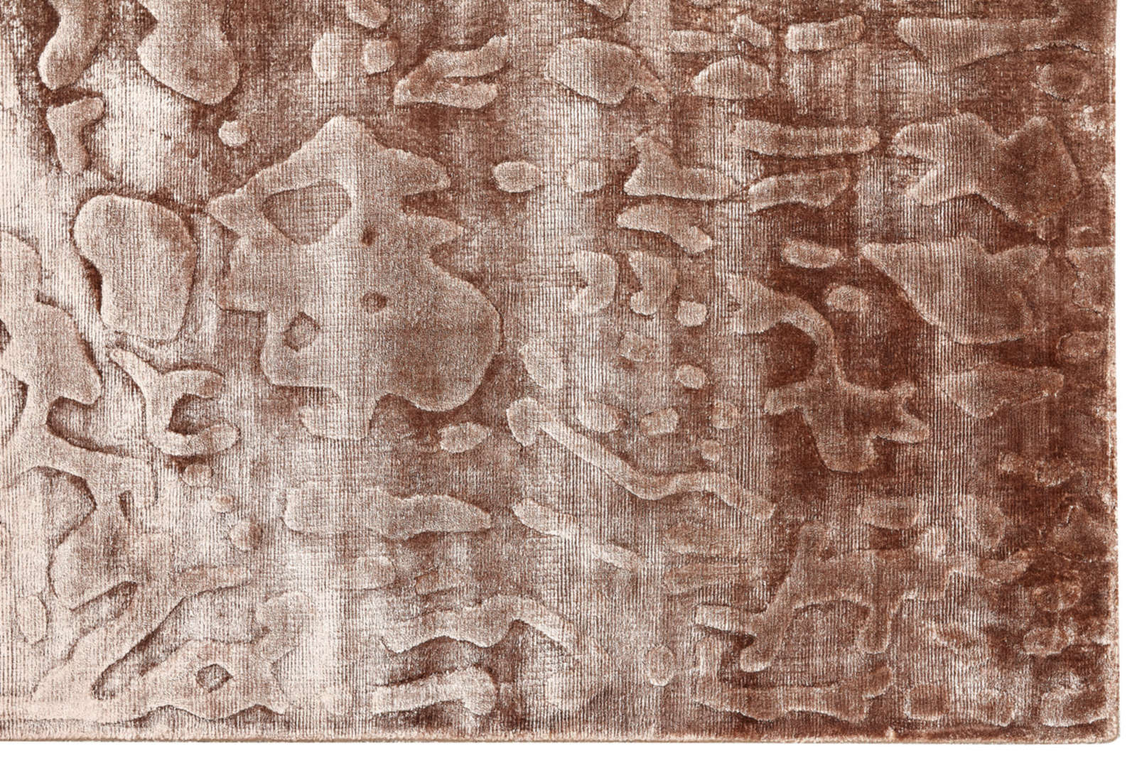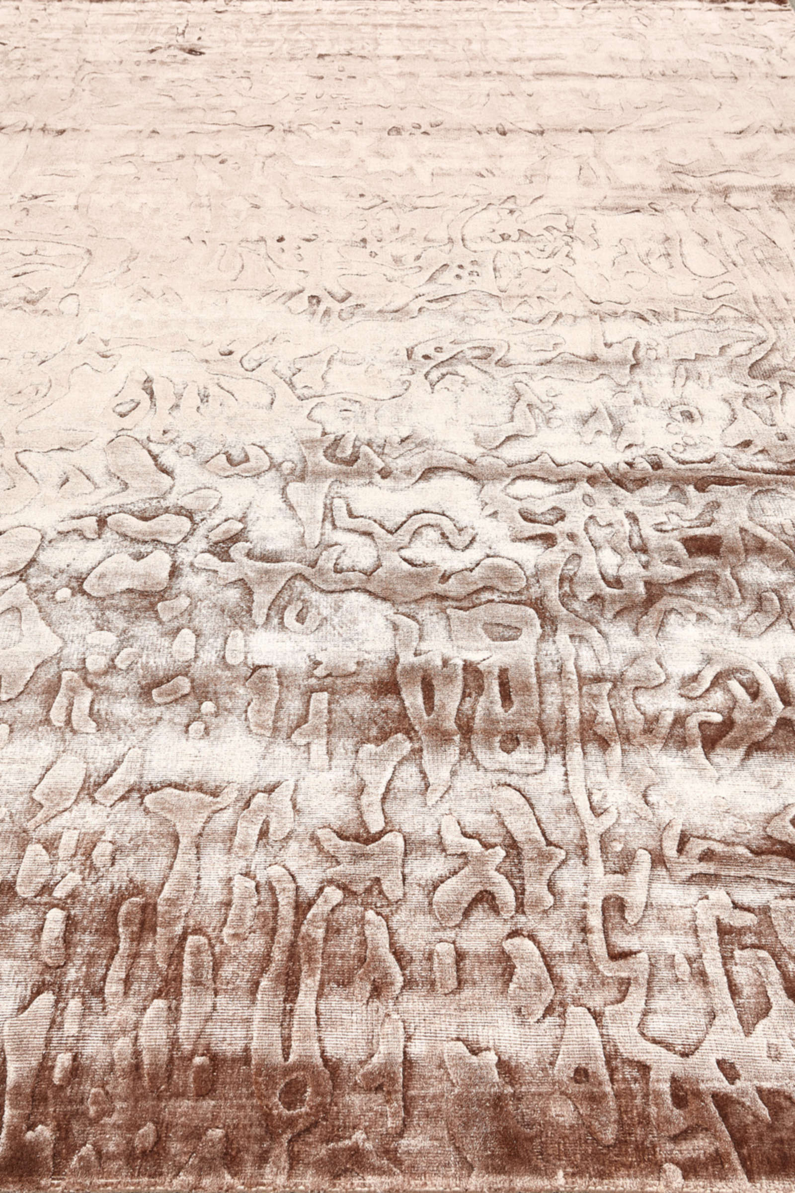 Абстрактный ковёр в коричнево-бежевых тонах напоминает следы дождя на старых стенах. Его сложный рисунок создаёт атмосферу истории и глубины. Подходит для гостиных с винтажными деталями и интерьеров в стиле лофт.