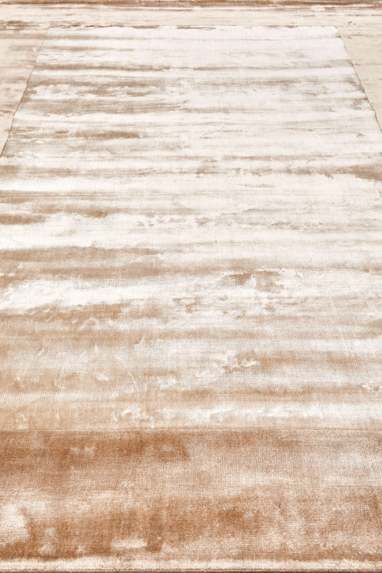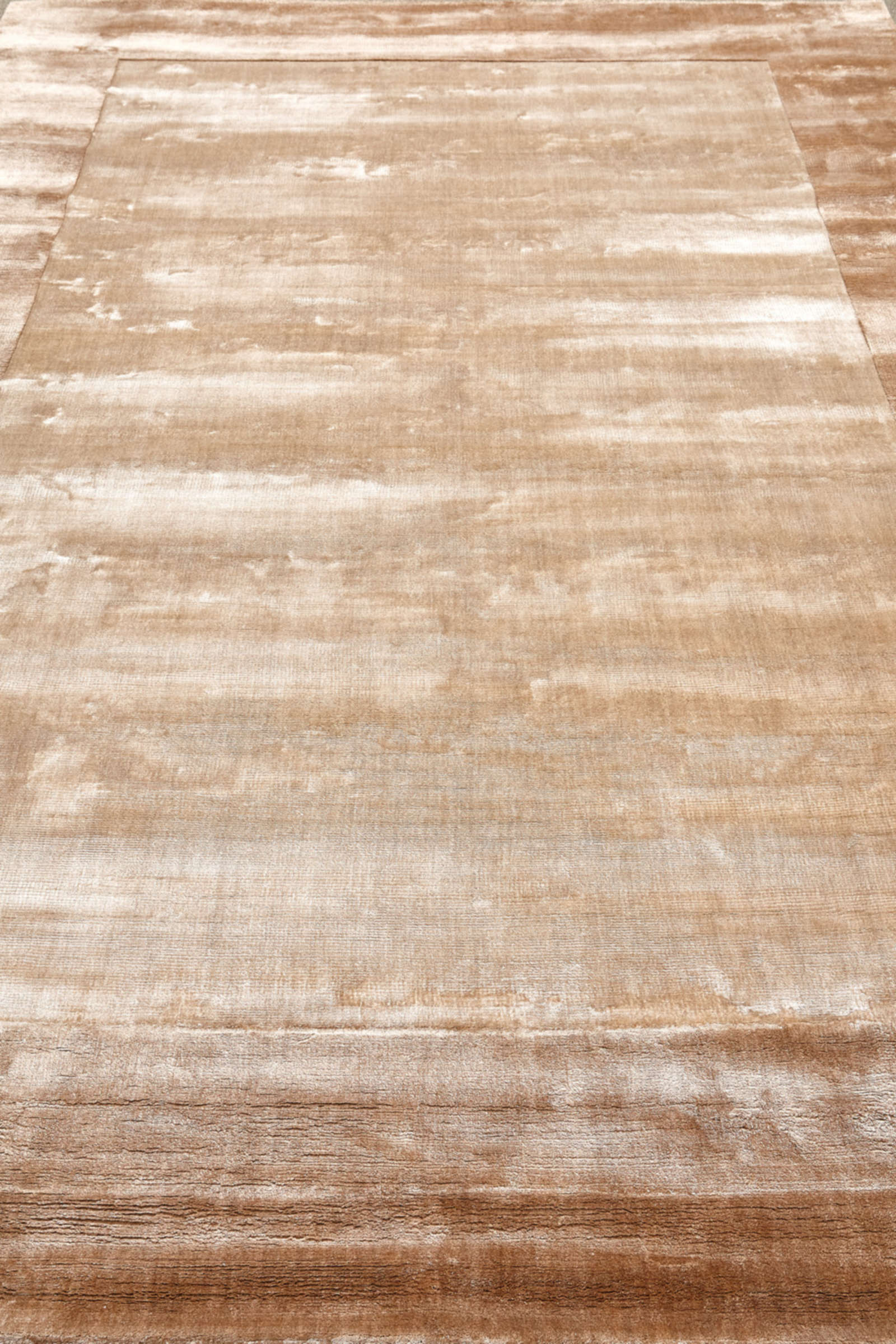 Этот ковёр, сотканный вручную в Индии, словно соткан из солнечных бликов и теней. Его широкая коричневатая рамка обрамляет центральное бежевое поле, создавая эффект глубины и благородной простоты. Лёгкие переходы оттенков напоминают мазки кисти, оставленные художником на холсте. Бархатистая поверхность ковра отражает свет мягкими переливами, меняя настроение пространства в течение дня. Он идеально подходит для интерьеров, где ценится атмосфера спокойствия и уюта: современные классические гостиные, спальни или светлые минималистичные пространства. Такой ковёр подчеркнёт мебель из натурального дерева, бежевые и пастельные ткани, а также камень. Его образ — это сдержанная роскошь и гармония, которая создаёт ощущение завершённости интерьера.
