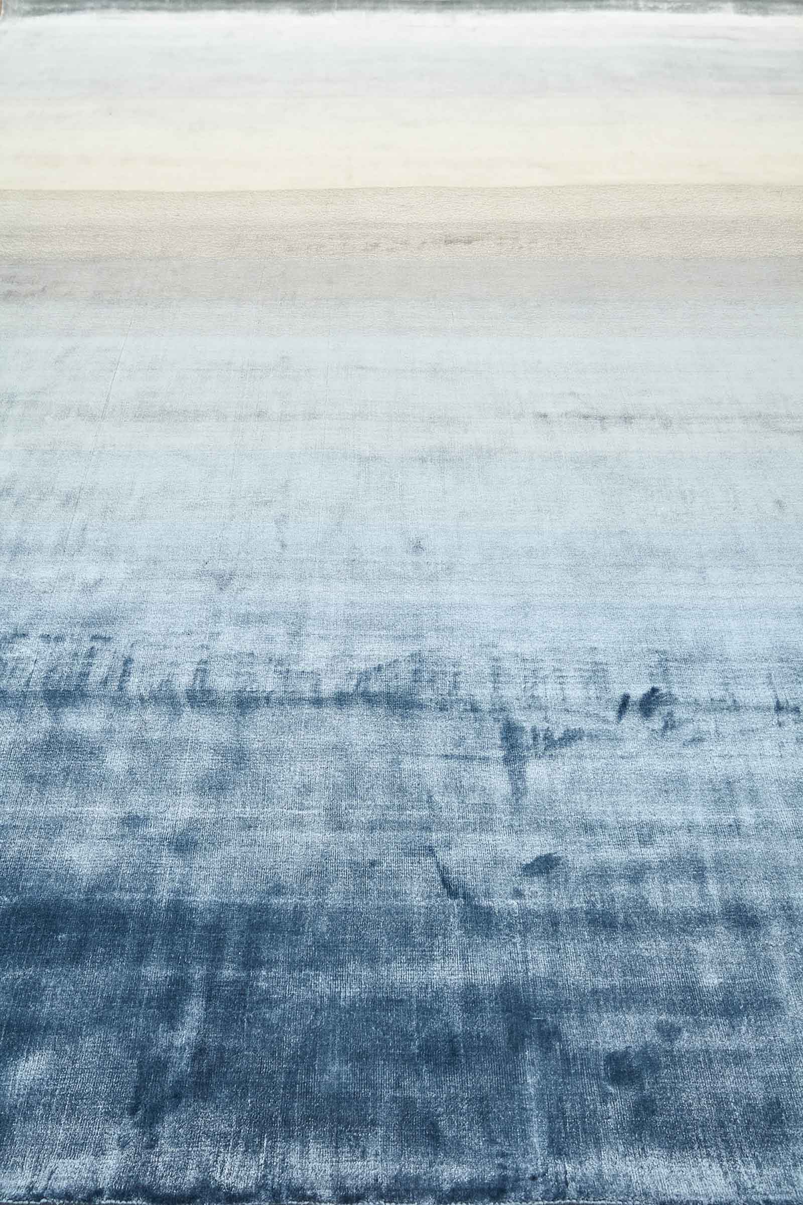 Градиентный ковёр из артшёлка напоминает туманное утро над океаном. Мягкий переход от бежевого к глубокому синему создаёт ощущение простора и умиротворения. Идеален для интерьеров, где важны ритм, тишина и свет.
