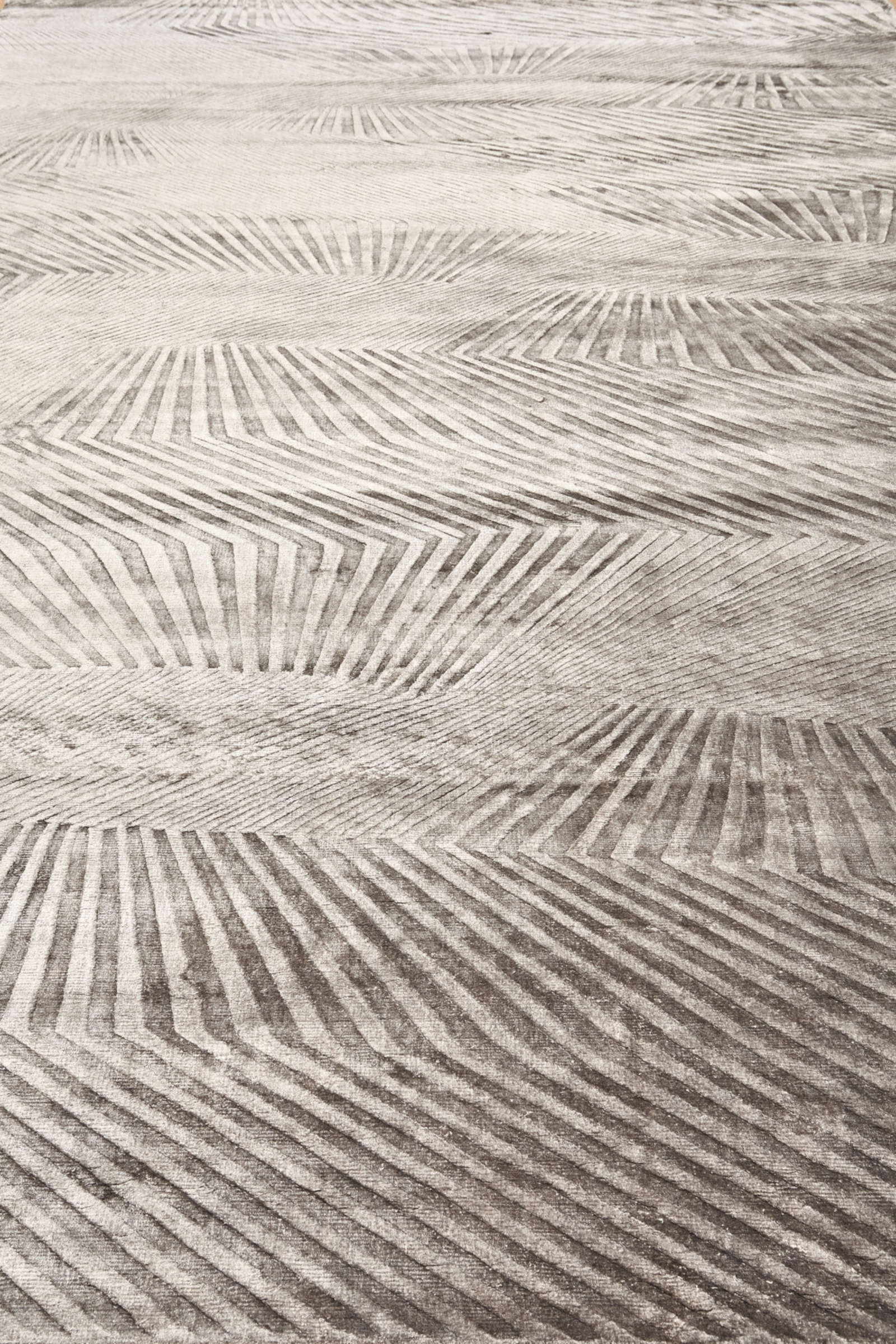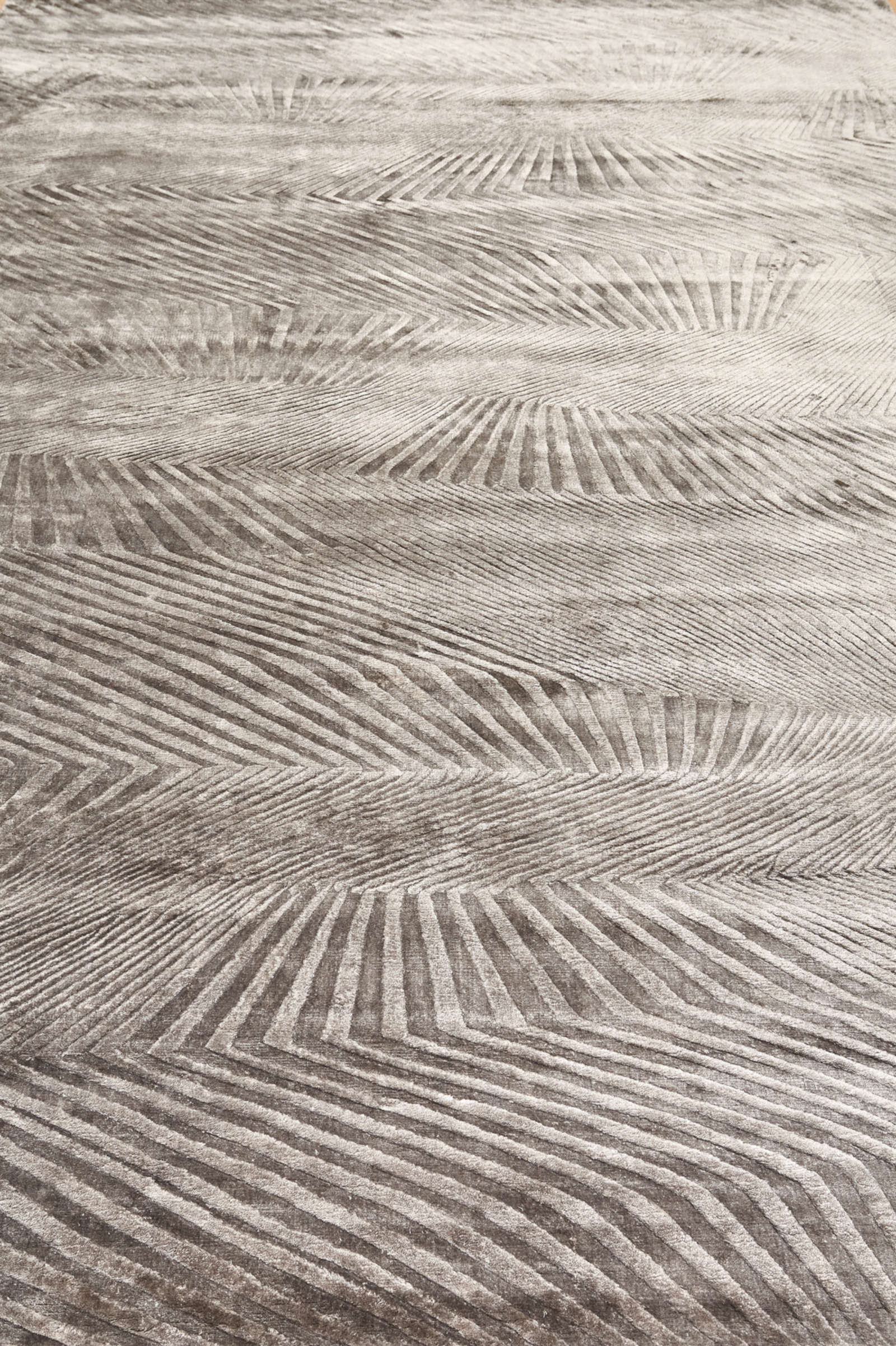 Этот ковёр выполнен в абстрактной манере, где расходящиеся линии образуют эффект оптического движения. Рисунок рождает ассоциации с волнами песка на ветру, отражениями света на поверхности воды или переливами ткани. Благодаря этому ковёр не фиксирует внимание на конкретных образах, а открывает пространство для интерпретаций, наполняя интерьер атмосферой динамики и гармонии. В современном пространстве он станет сильным акцентом, который оживит лаконичную обстановку. В минимализме добавит глубину и фактурность, в эклектике объединит разные элементы за счёт своей универсальной графичности. Особенно эффектно смотрится в больших помещениях — гостиной, зале для приёма гостей или офисе с креативной атмосферой. Его узор работает как арт-объект: не только украшает, но и задаёт ритм всему пространству.