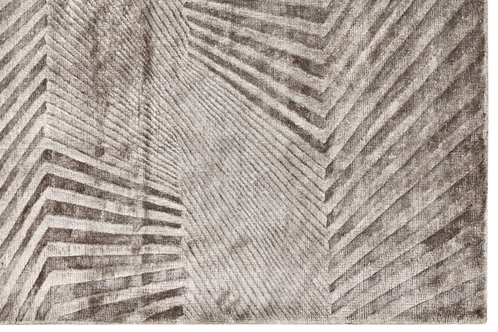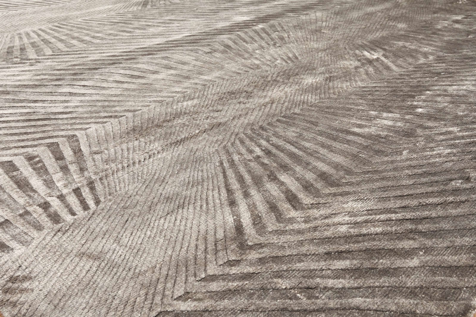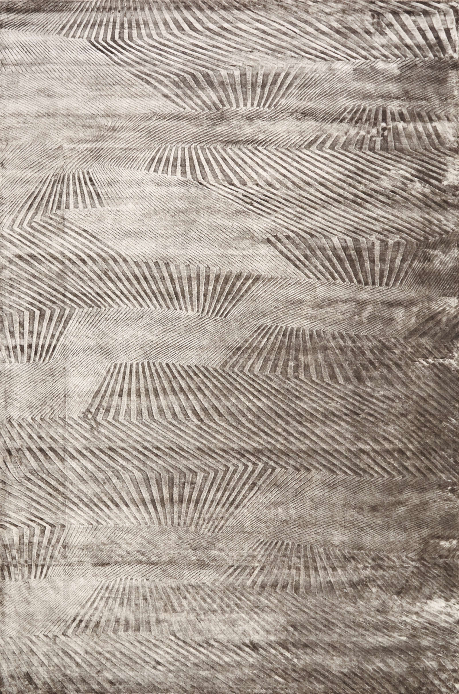 Ковёр с абстрактным рисунком в виде расходящихся линий создаёт ощущение движения и глубины. Его графичный узор напоминает игру света и тени на песке или ткани. Такой акцент добавляет интерьеру ритм, современность и художественную выразительность.