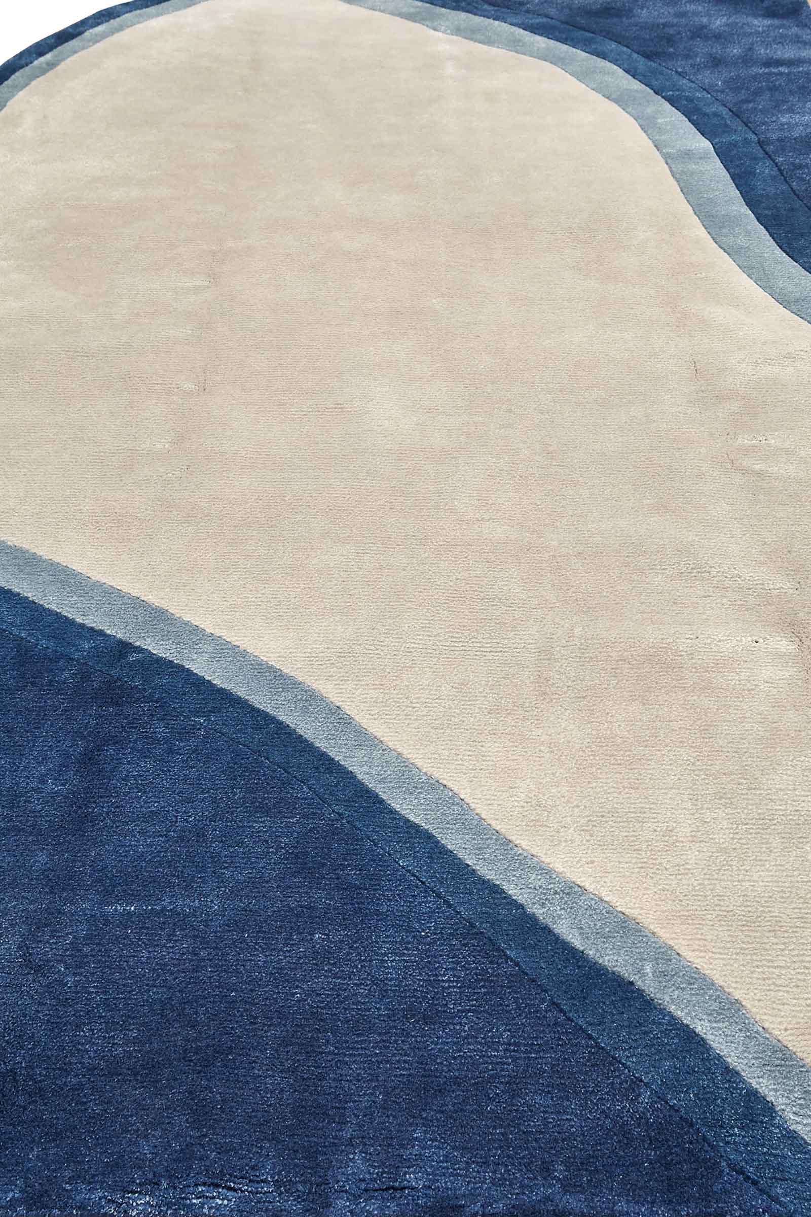 Этот дизайнерский ковёр бренда VISIONER, выполненный вручную в Индии, напоминает пейзаж с высоты — как будто синий океан встречается с тёплым песком. Глубокие оттенки синего окаймляют мягкий центр — светлый, словно полуденный свет, отражённый в воде. Материалы — шерсть и артшёлк — обеспечивают благородную фактуру и тонкий блеск. Нестандартная форма делает ковёр выразительным акцентом в любом интерьере: от минималистичного до арт-деко. Это настоящий арт-объект, он задаёт ритм пространству, подчёркивает индивидуальность владельца и создаёт ощущение покоя. Идеальный выбор для тех, кто хочет купить ковёр, который станет частью концепции, а не просто деталью.