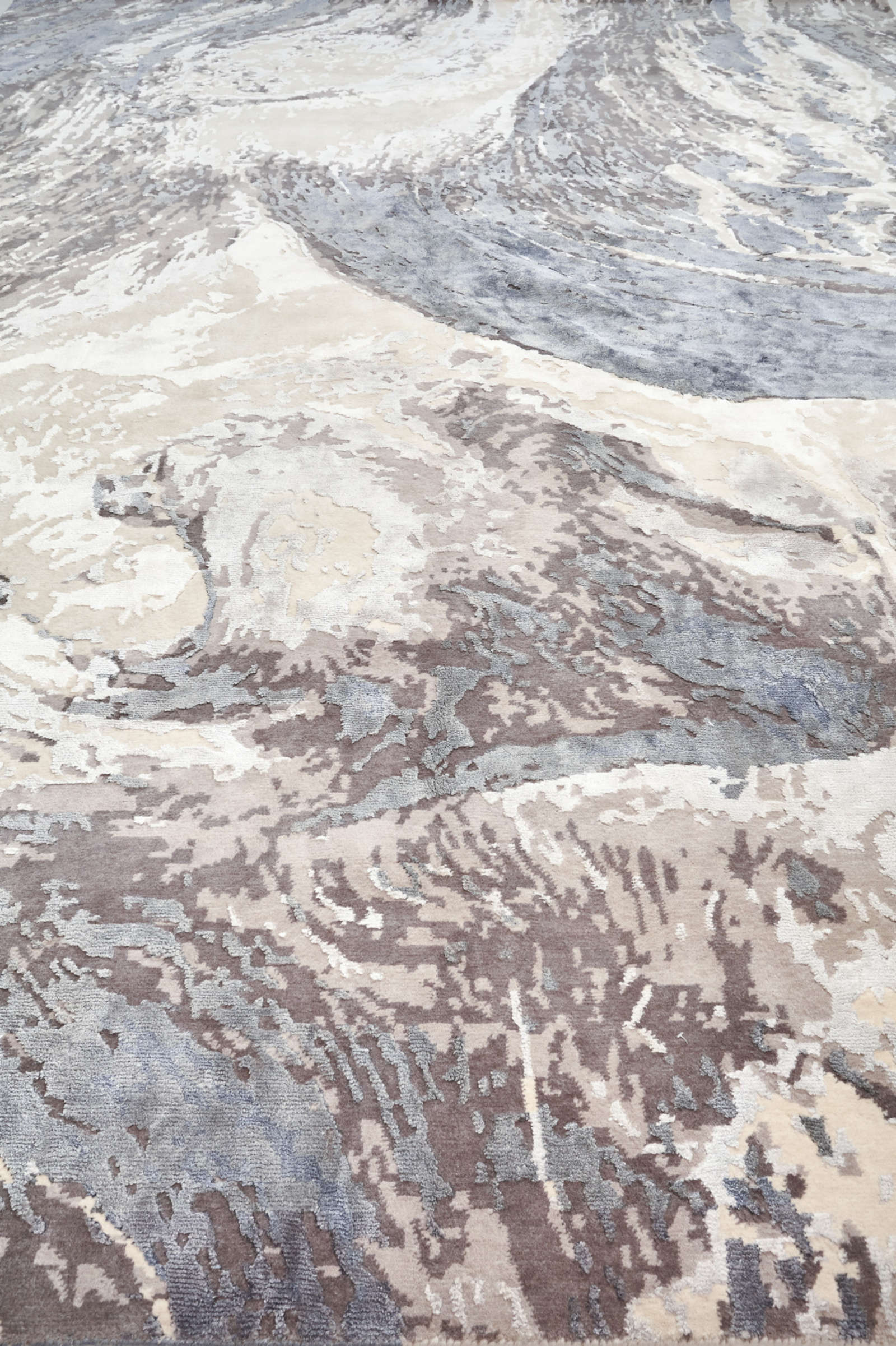 Этот ковёр словно быстрая река: мягкие серо-бежевые оттенки переходят друг в друга, образуя струи и разводы, будто вода стекает по камню. В рисунке читается движение, но оно не агрессивное, а естественное, успокаивающее, как течение в русле. Благодаря этому ковёр становится частью интерьера, создающей атмосферу природного равновесия. В гостиной он оживляет пространство, в спальне помогает расслабиться, а в кабинете настраивает на поток мыслей и идей. Линии рисунка задают плавный ритм, который гармонирует с любыми формами мебели и мягко объединяет разные элементы в единую композицию. Такой ковёр словно открывает в доме окно к природе.