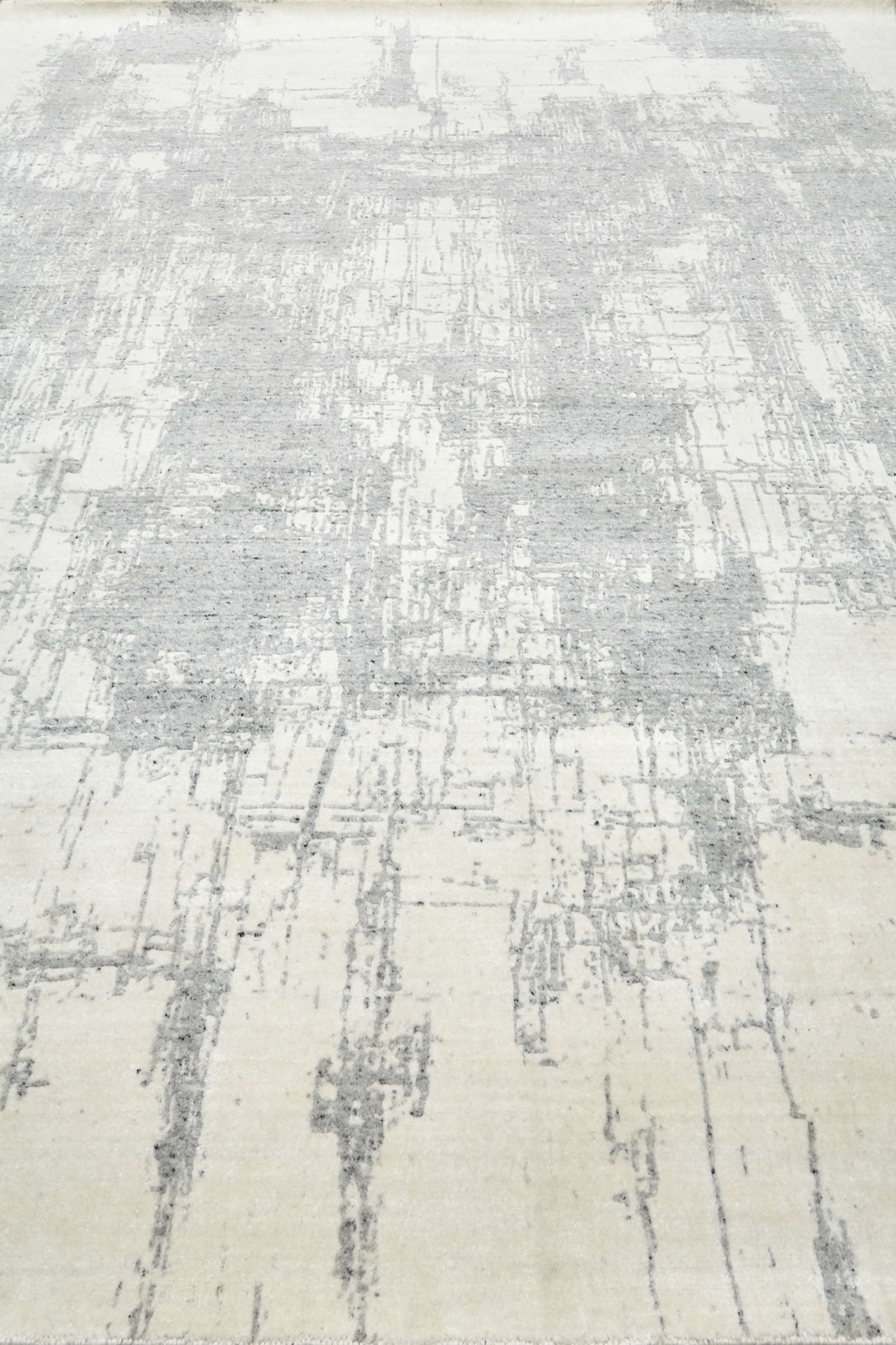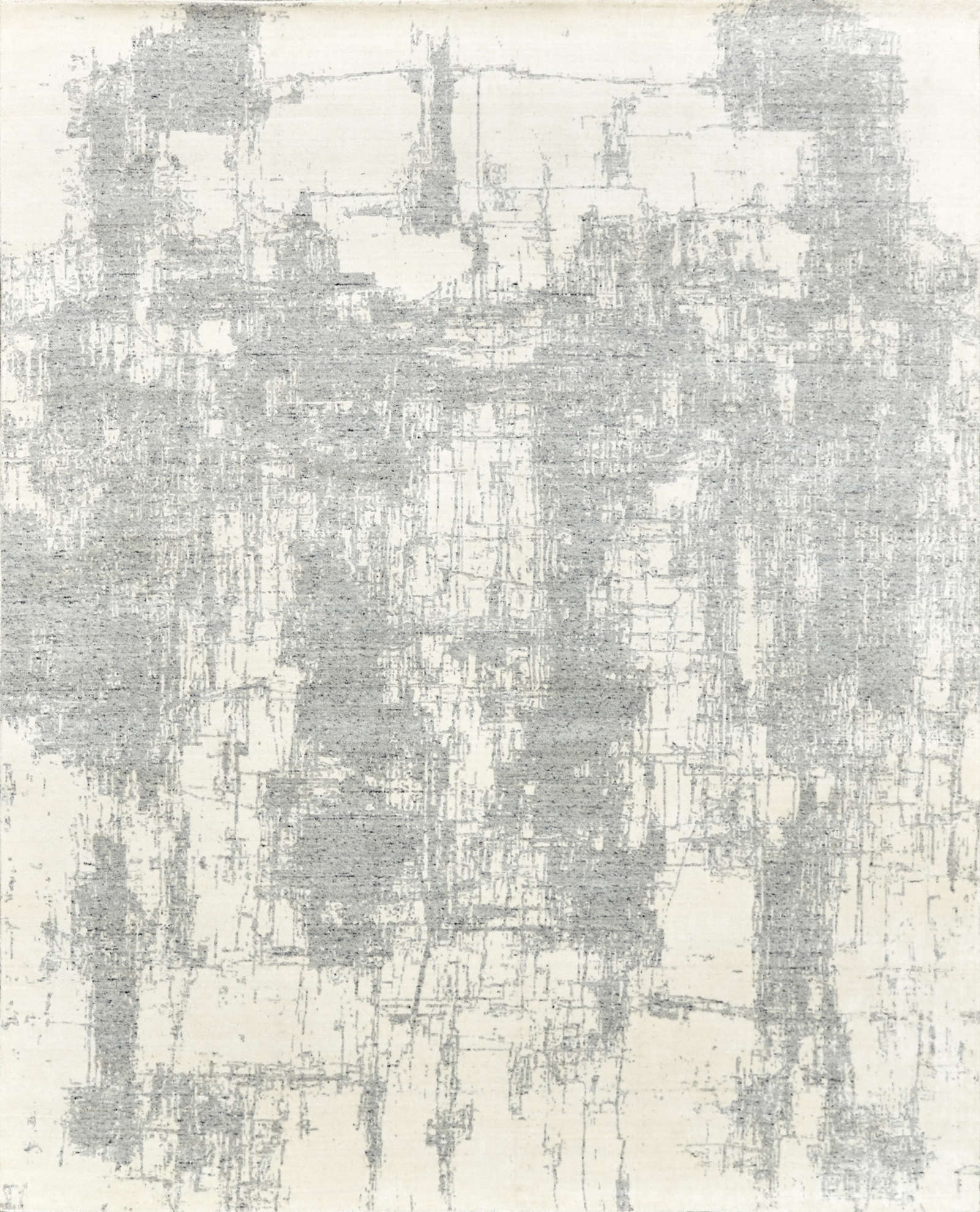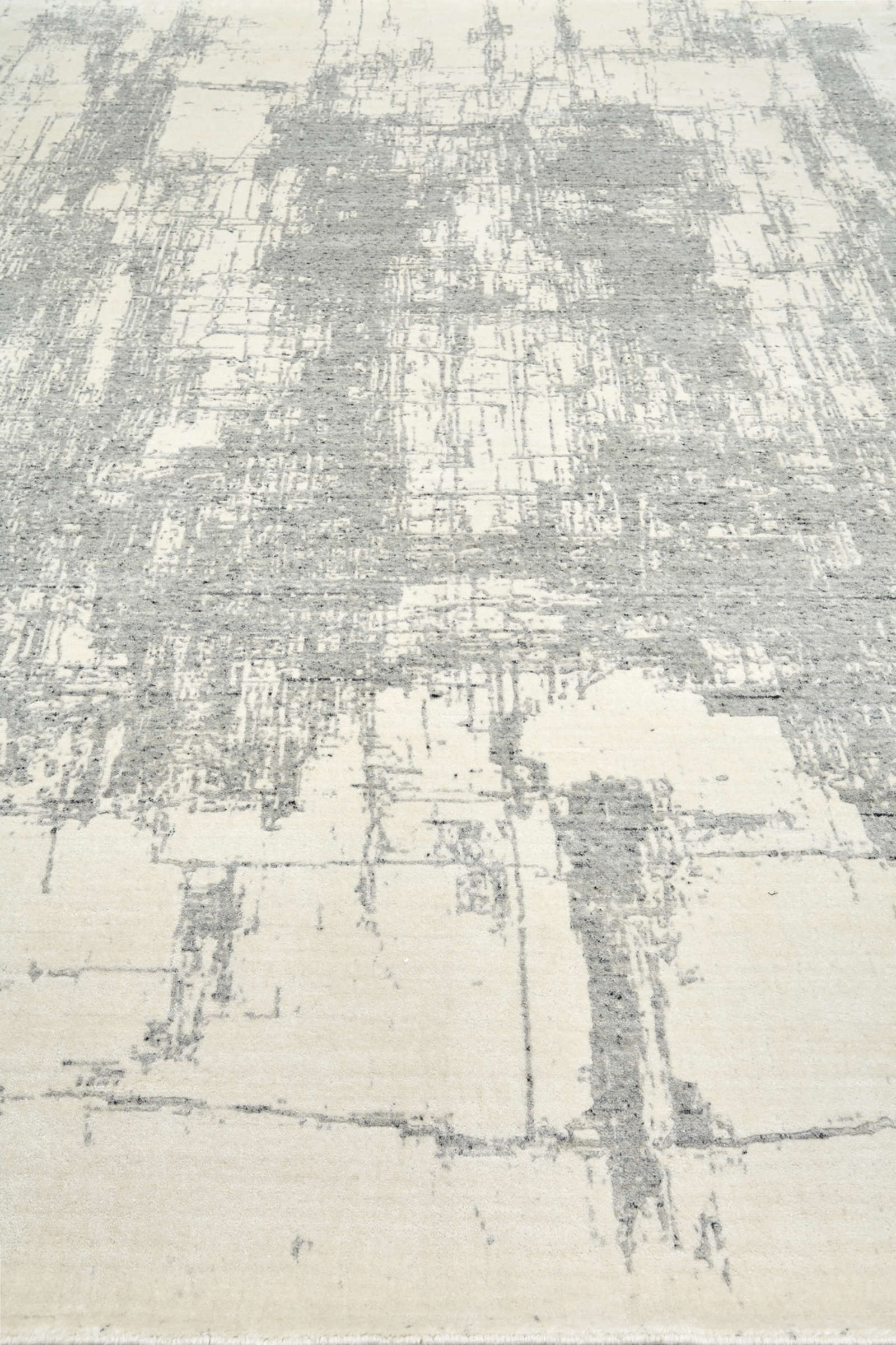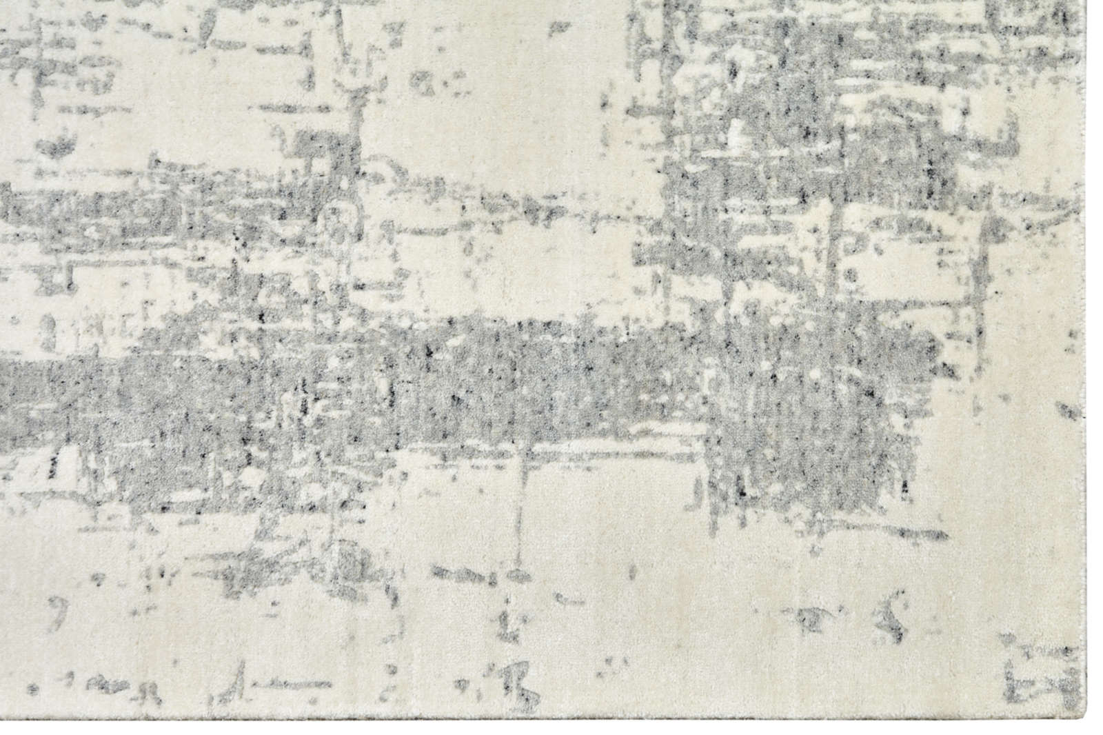 Ковёр с серым рисунком на светлом фоне напоминает игру теней на каменной поверхности. Он создаёт ощущение глубины и фактуры, добавляя интерьеру характер, спокойствие и атмосферу естественной гармонии.
