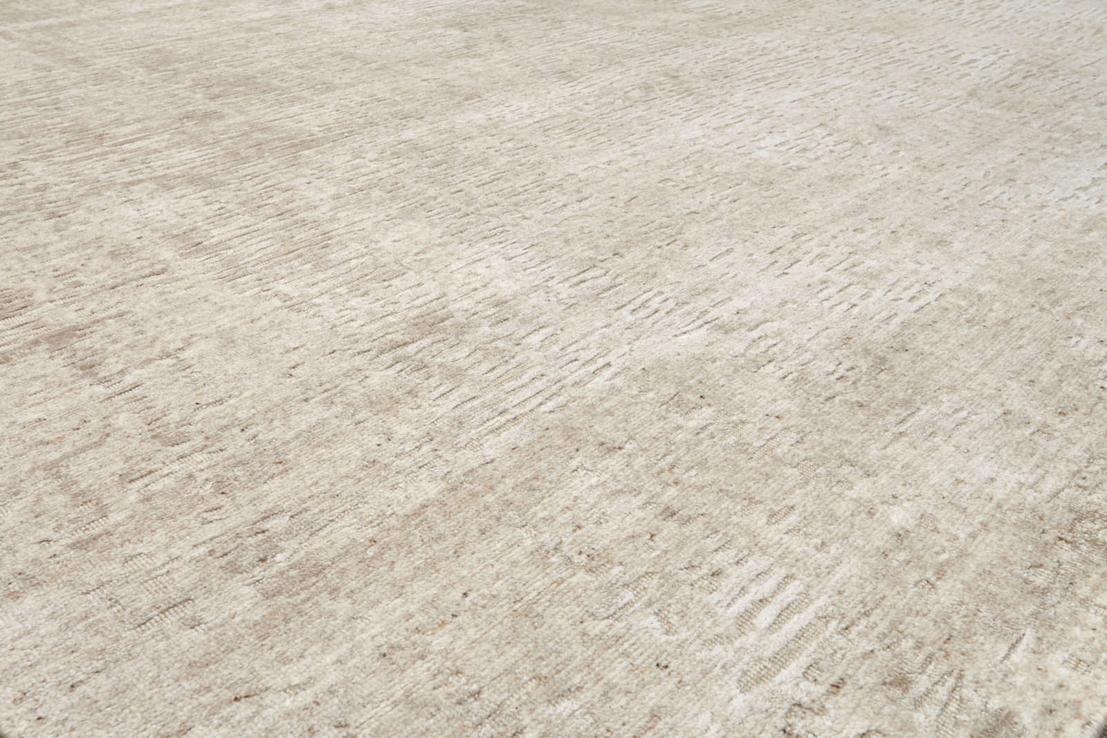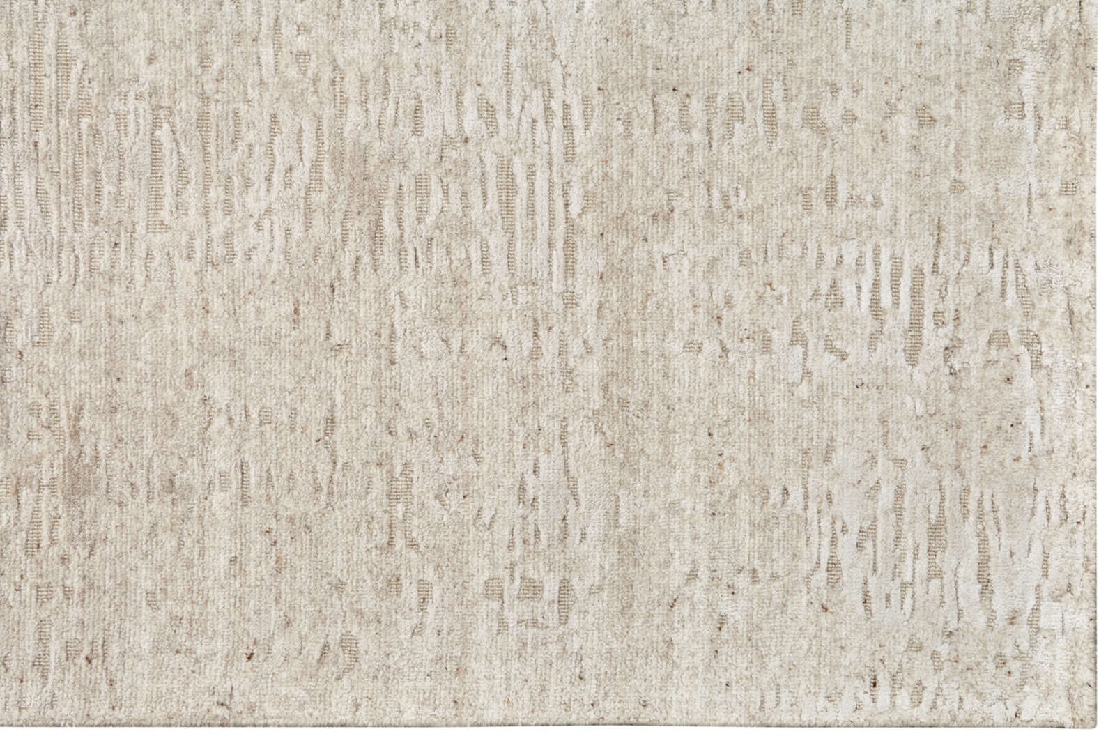 Светлый ковёр с едва заметным рельефом напоминает песчаную поверхность после ветра. Его простота и тонкость делают интерьер чище и спокойнее, добавляя ощущение свежести и простора.