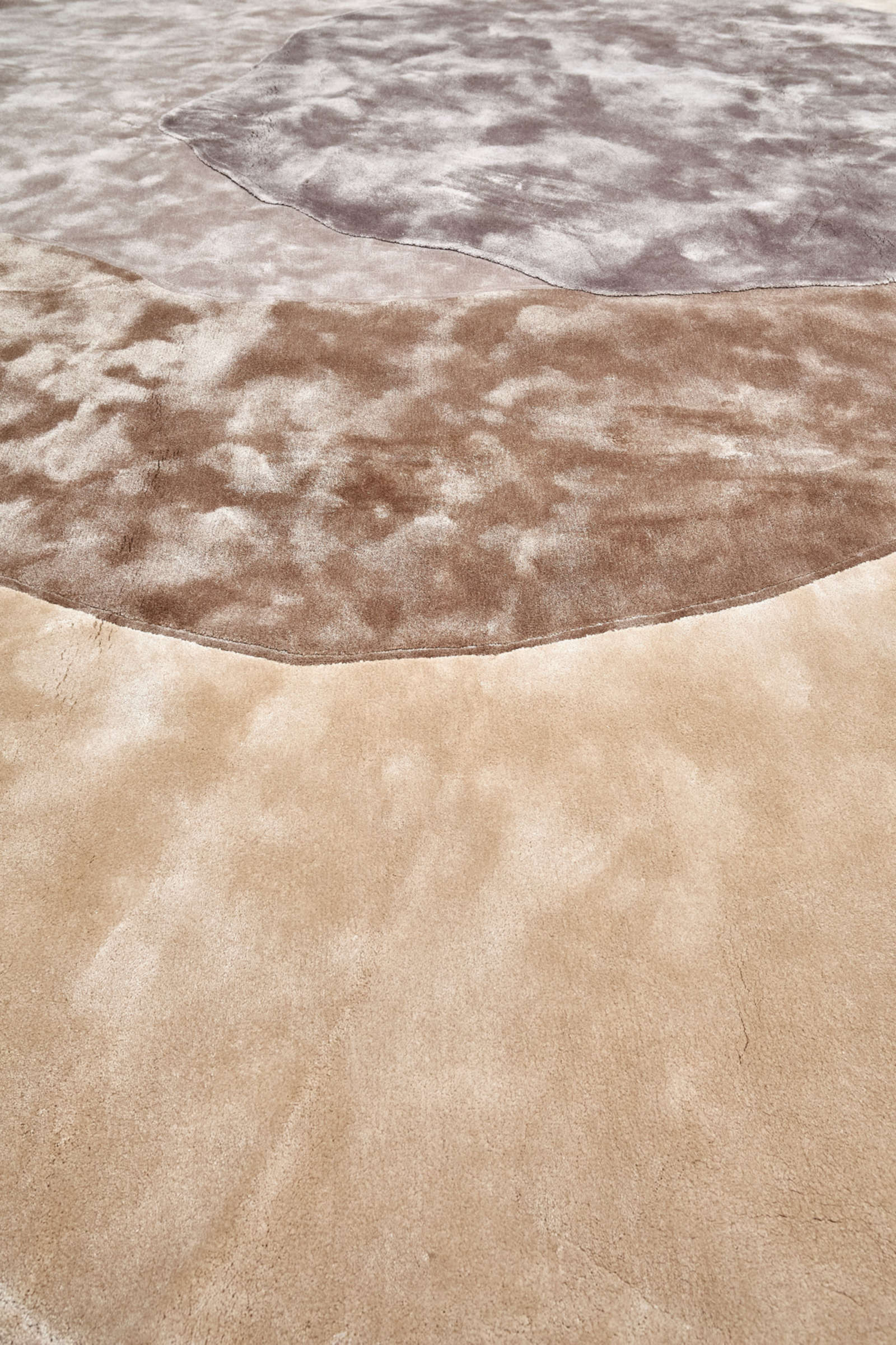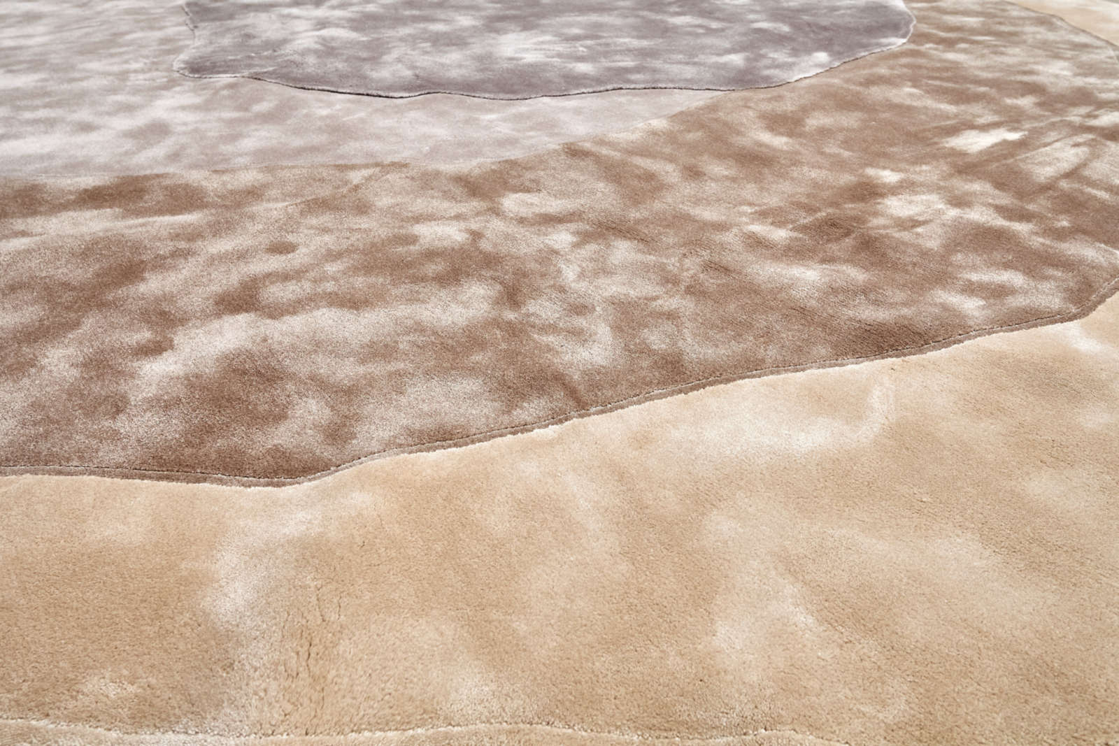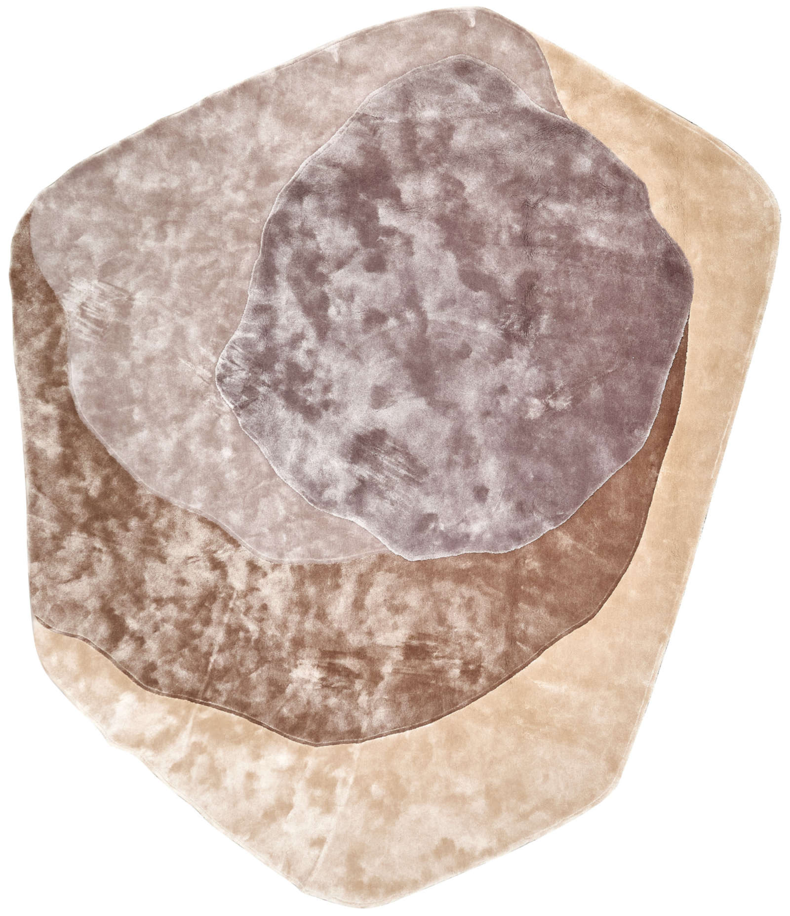 Этот ковёр можно воспринимать не просто как предмет интерьера, а как произведение современного искусства. Его формы напоминают абстрактную скульптуру или живописную композицию, где каждый слой и оттенок создают ритм и движение. Он словно переносит эстетику арт-галереи в домашнее пространство.
